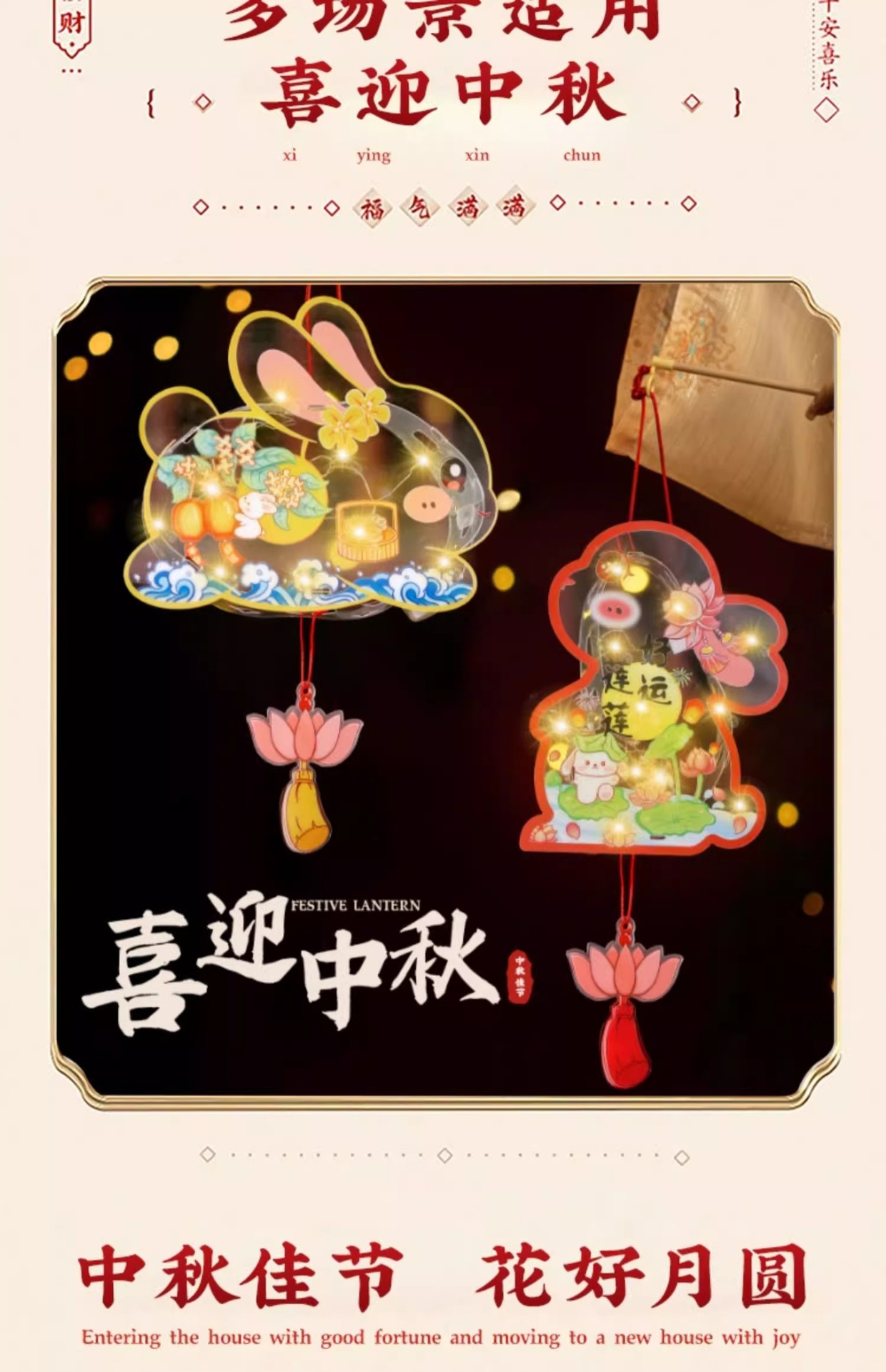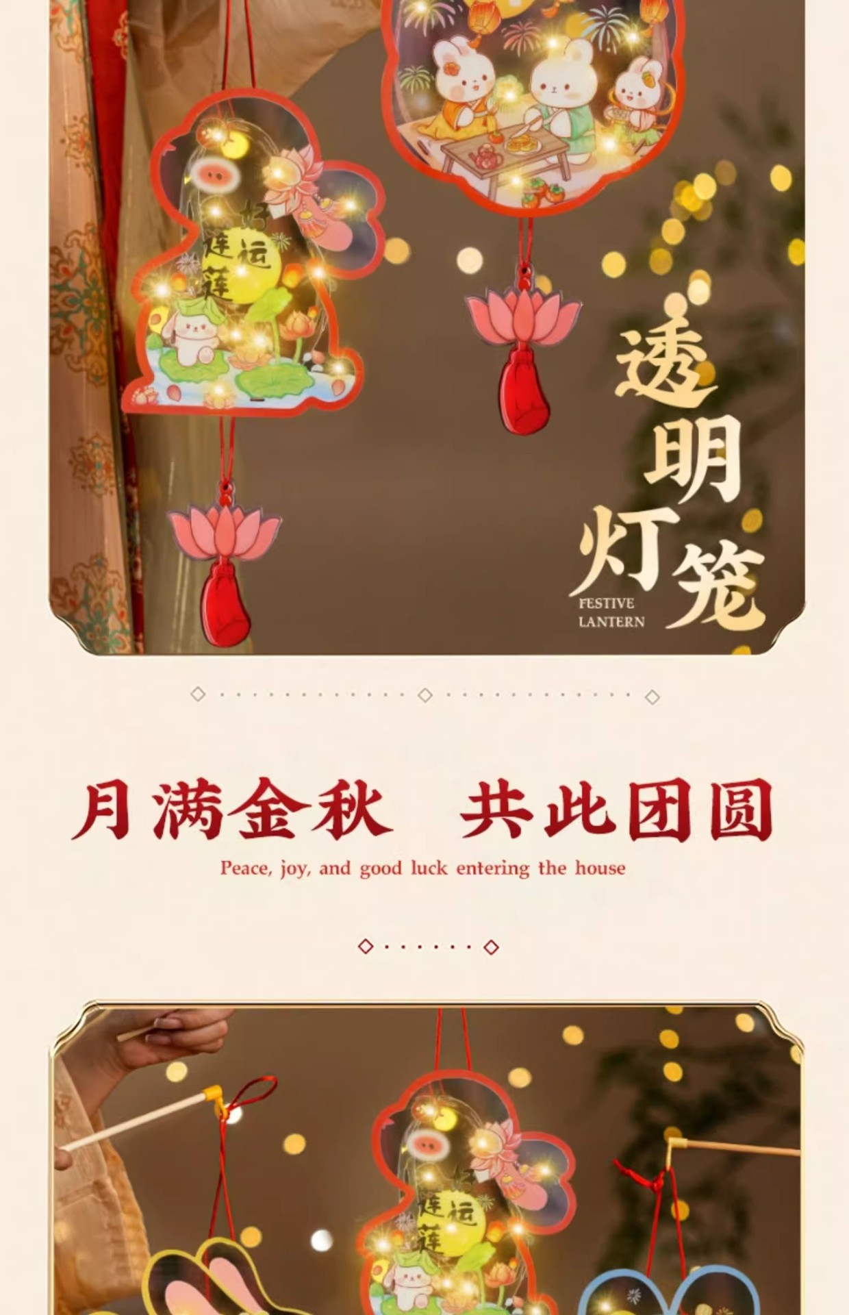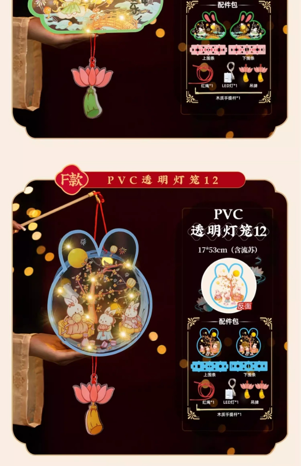 2025中秋手提花灯发光灯笼儿童卡通diy透明pvc兔子花灯古风灯笼