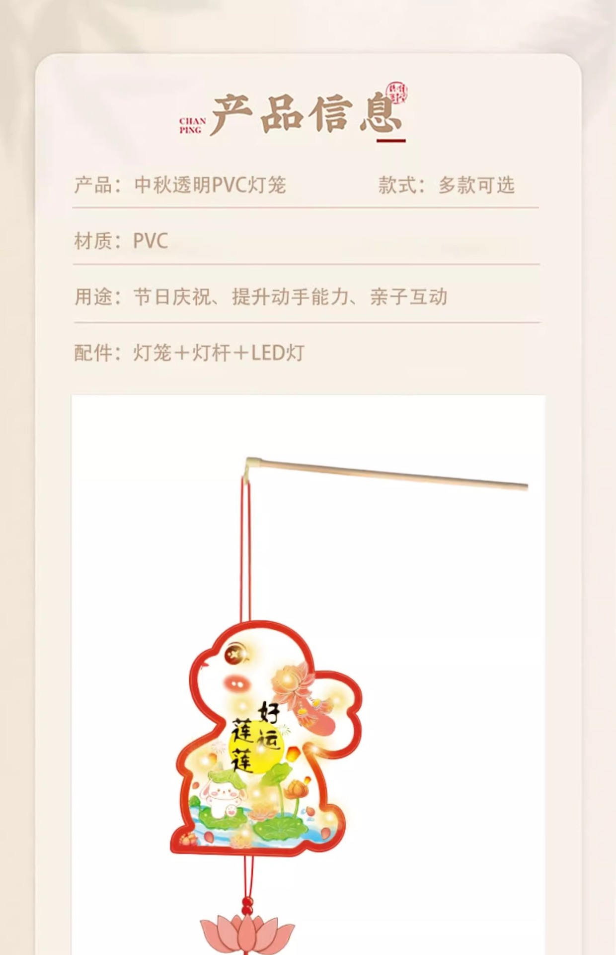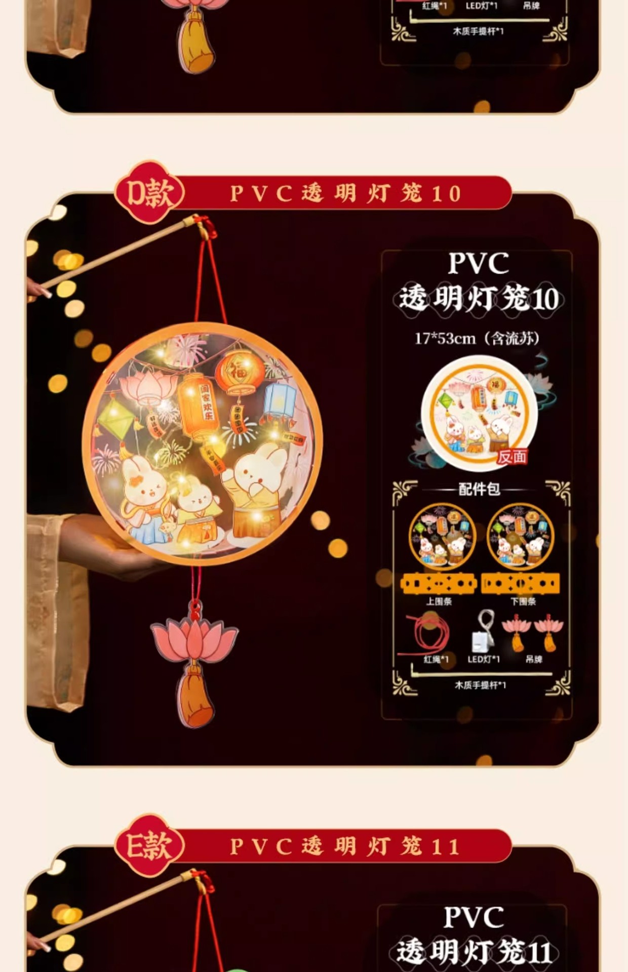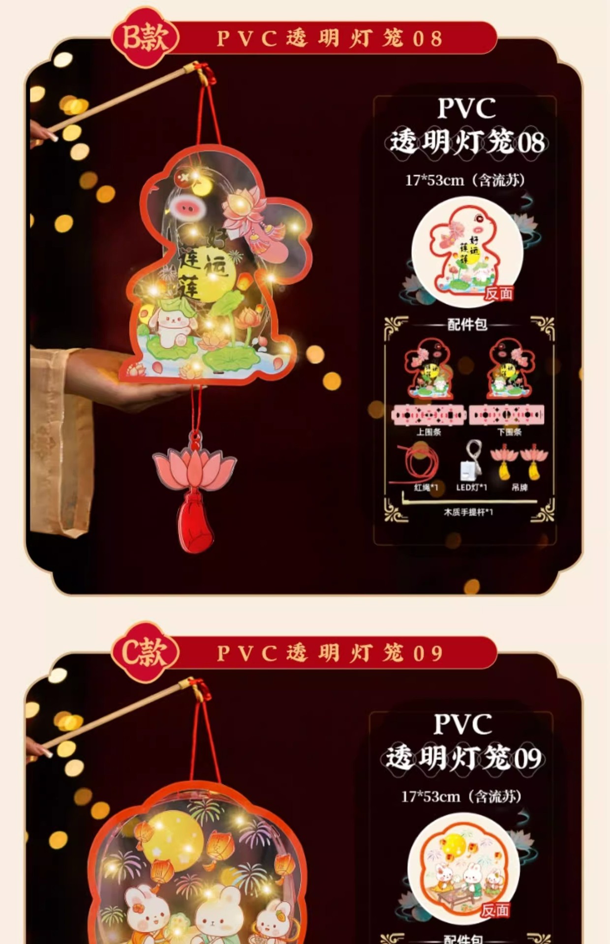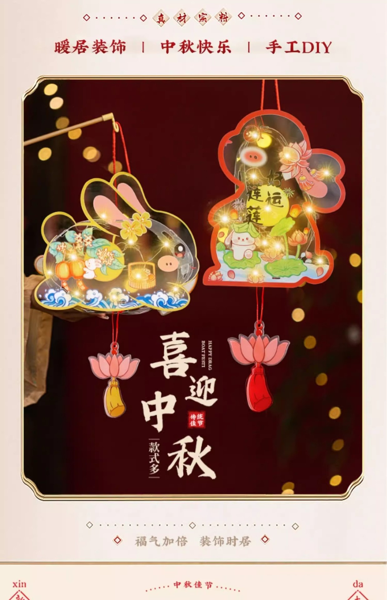 2025中秋手提花灯发光灯笼儿童卡通diy透明pvc兔子花灯古风灯笼