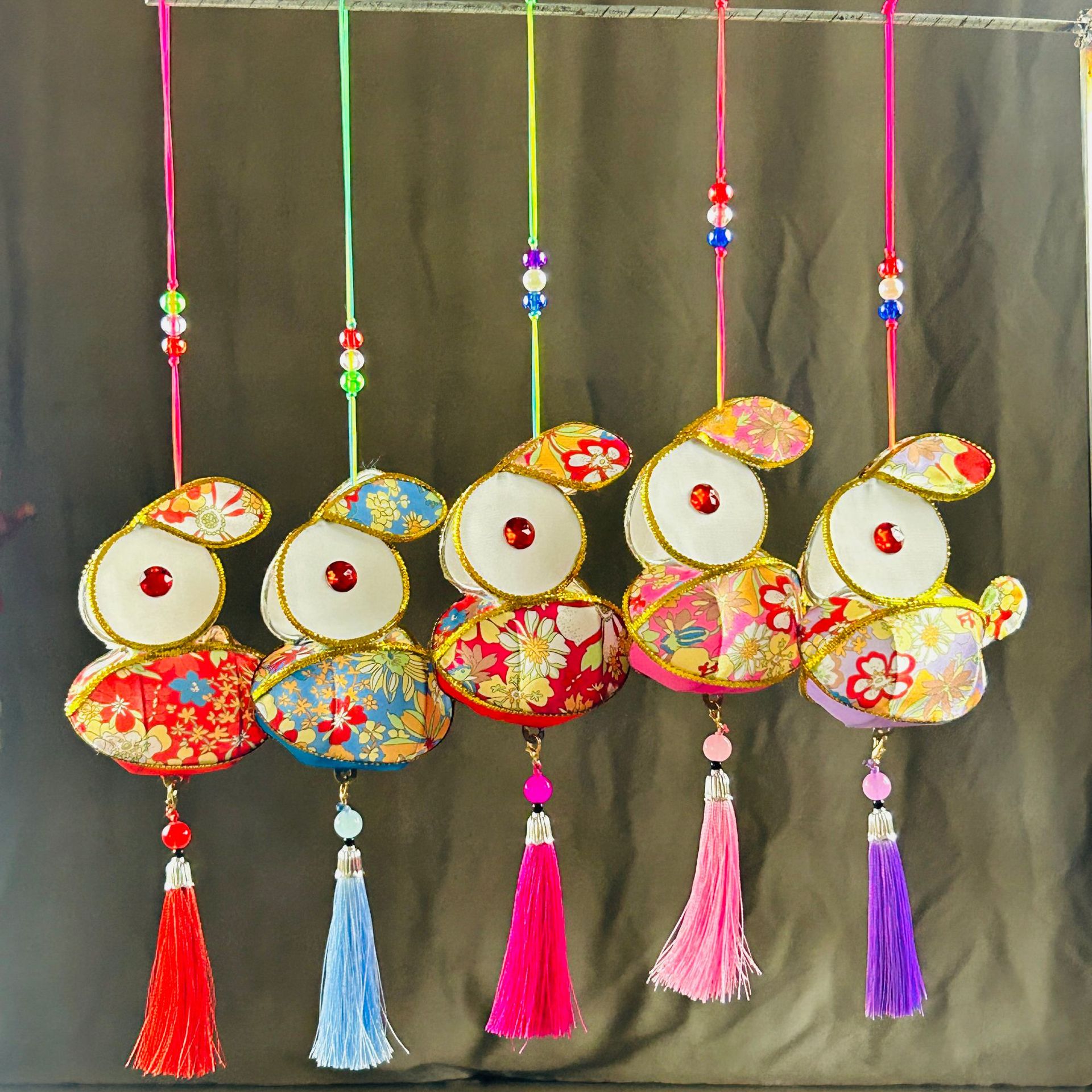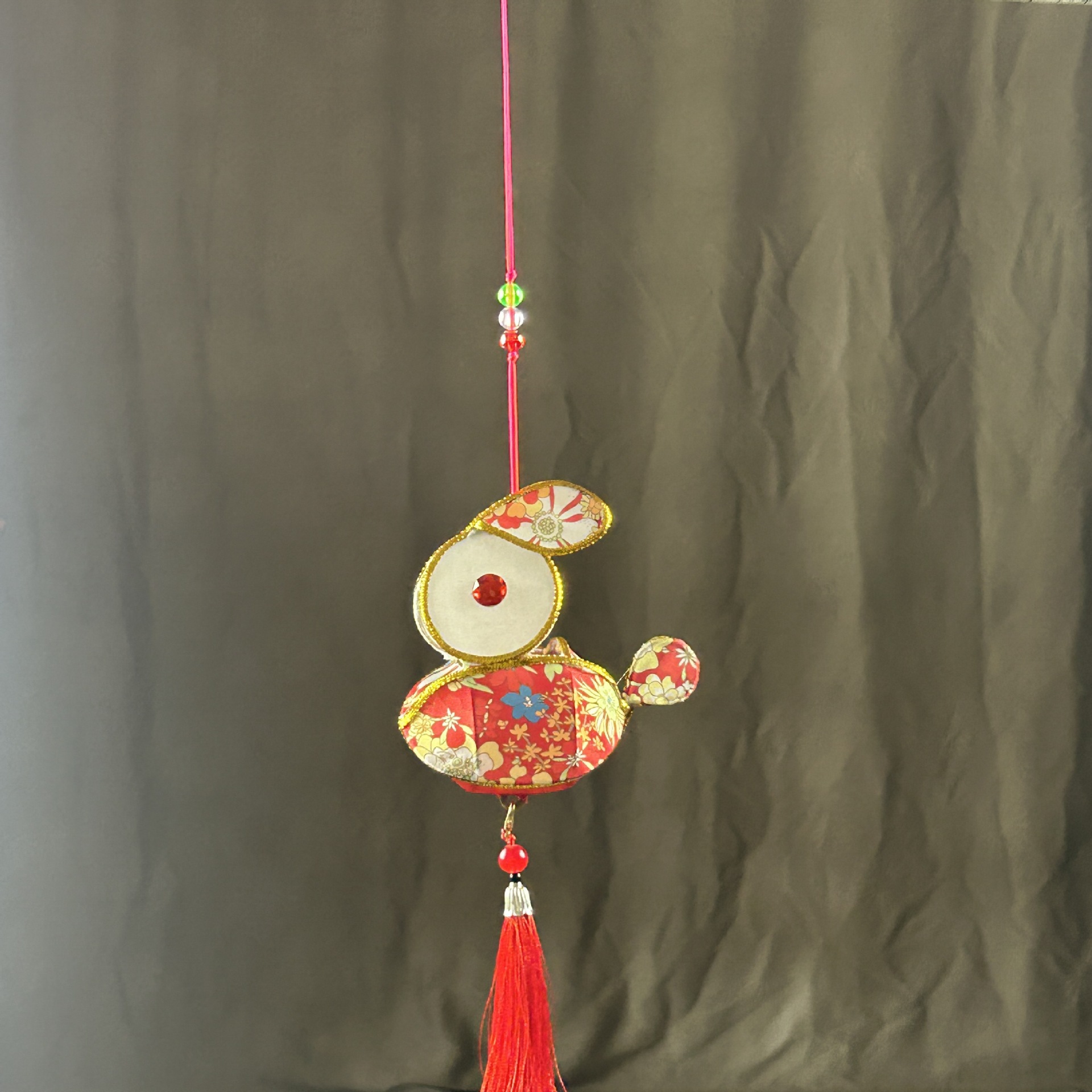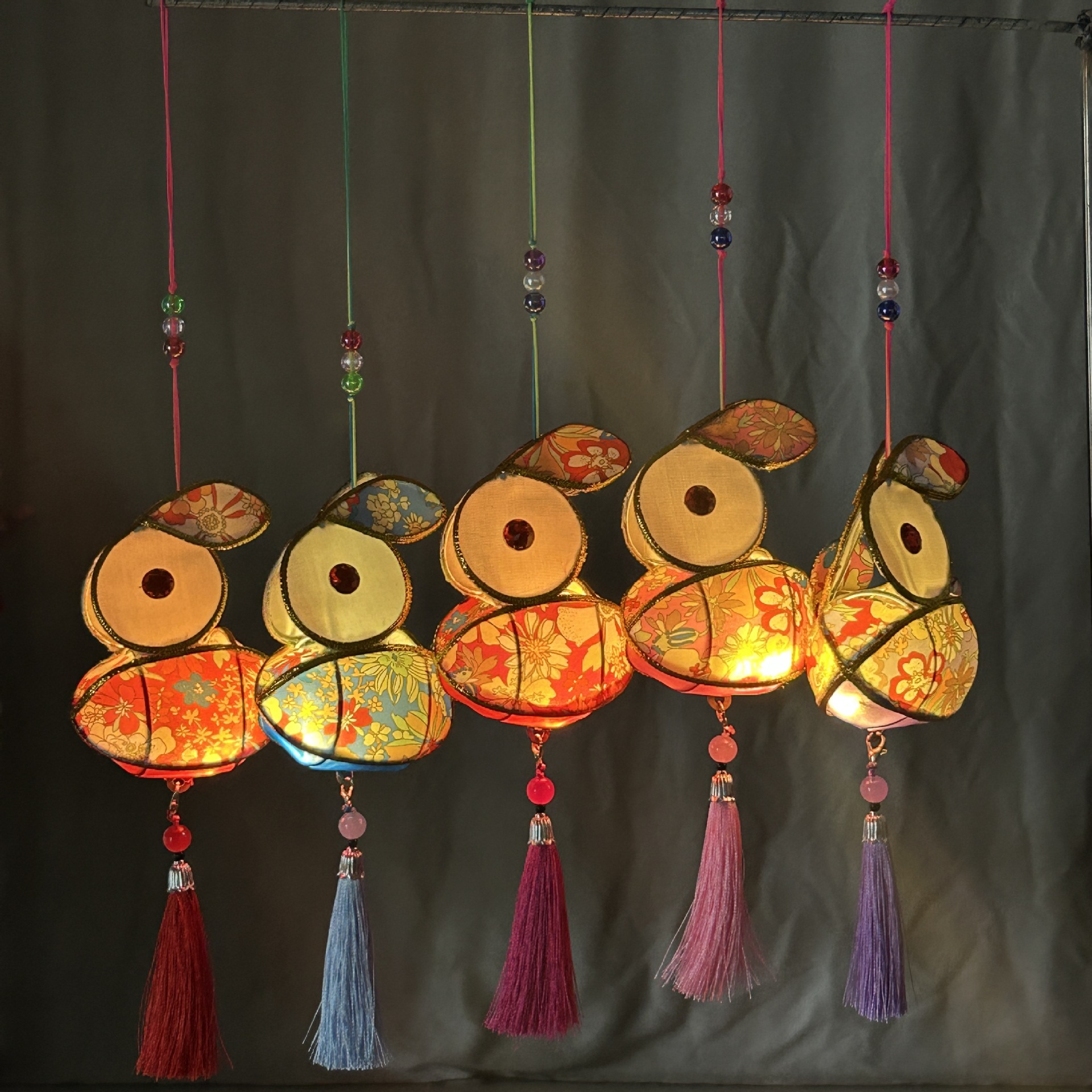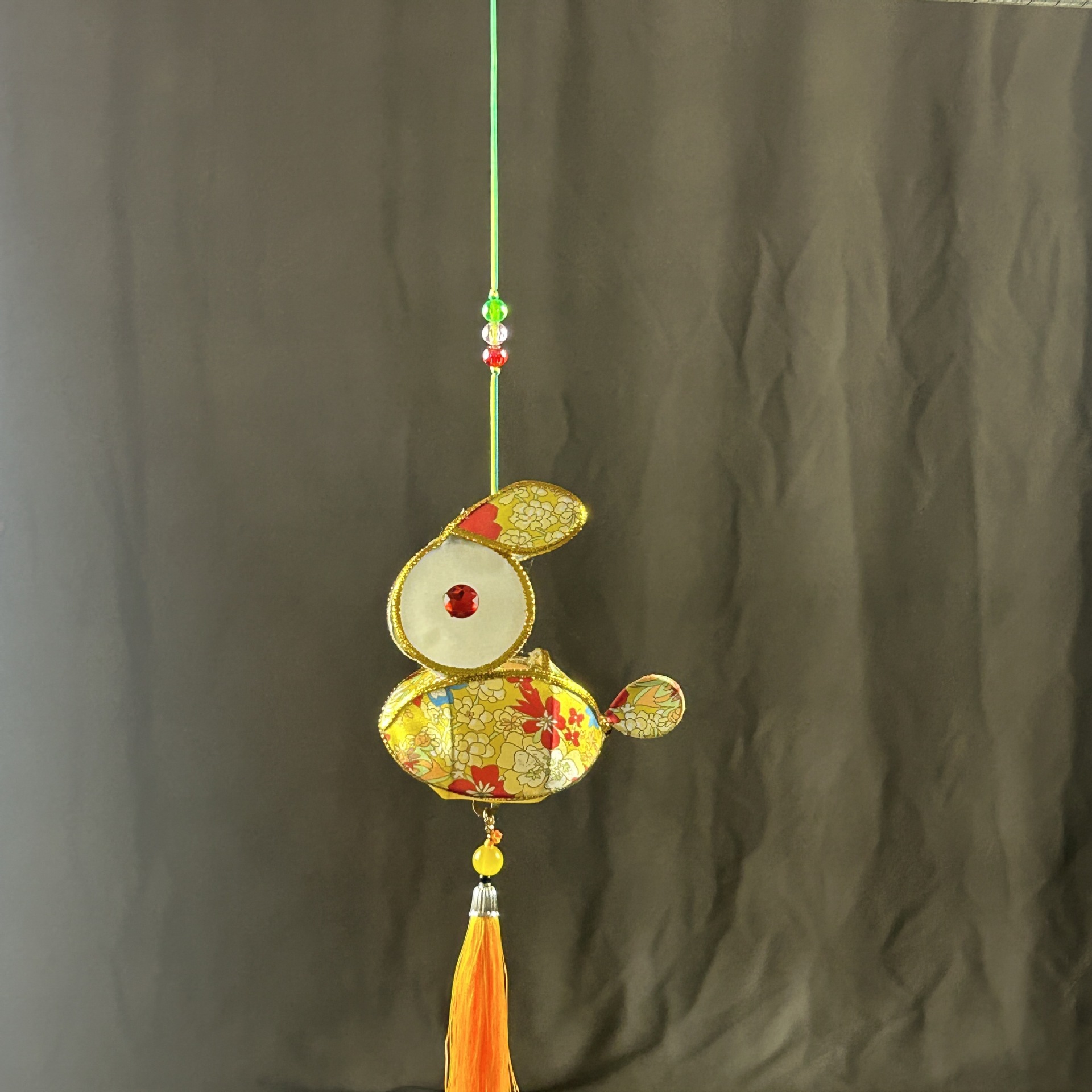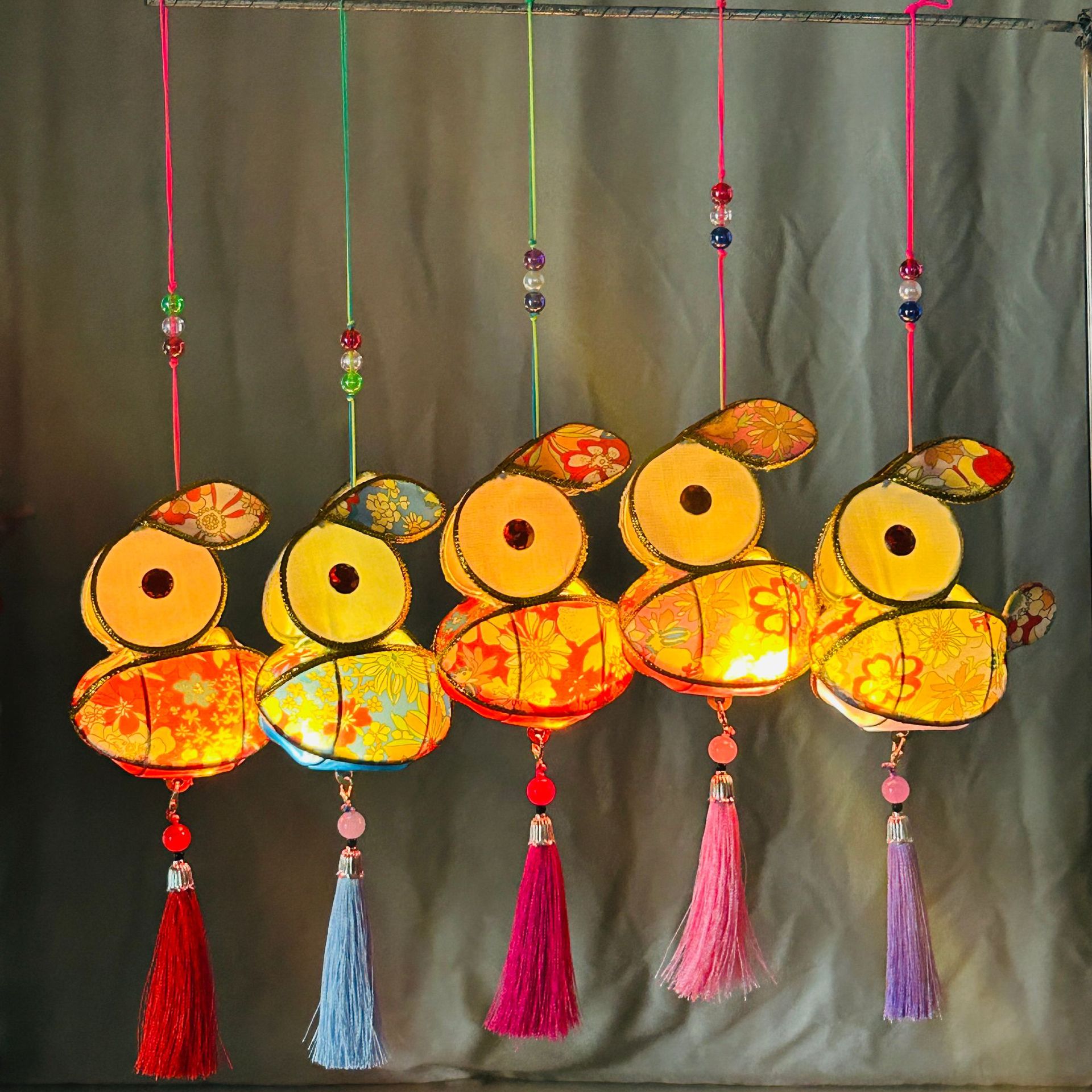 传统手工花灯春节元宵手提铁艺绸布发光迷你款兔子灯