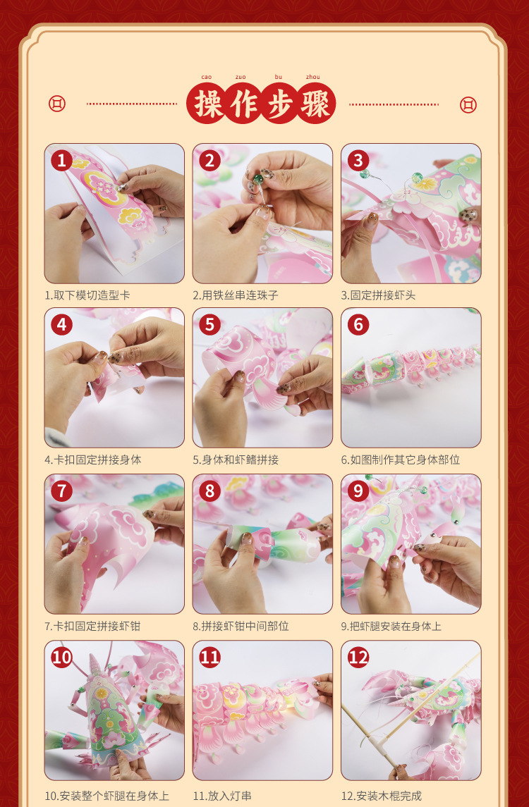 新年春节元旦马年国潮虾灯手工diy螃蟹灯笼儿童花灯材料包拍照