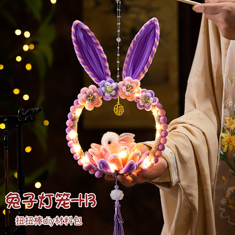 重阳节灯笼diy材料包扭扭棒手提发光兔子花灯儿童手持荷花灯莲花