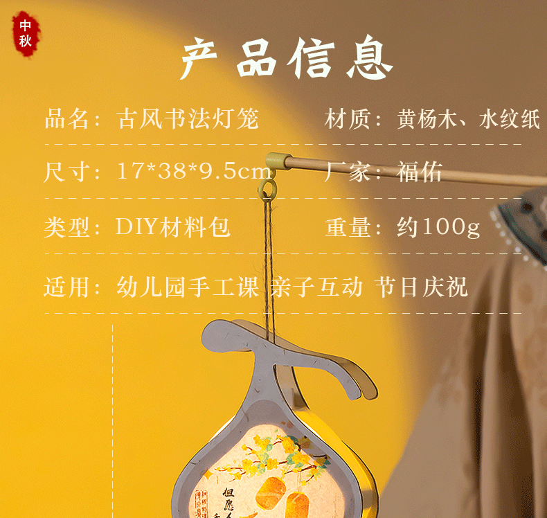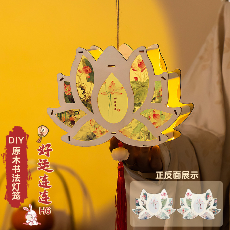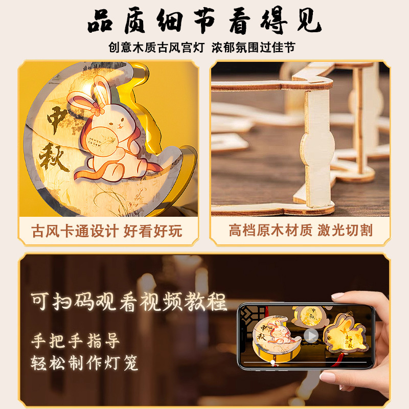 中秋节兔子灯笼发光手提木质花灯儿童手工diy材料葫芦古风小宫灯