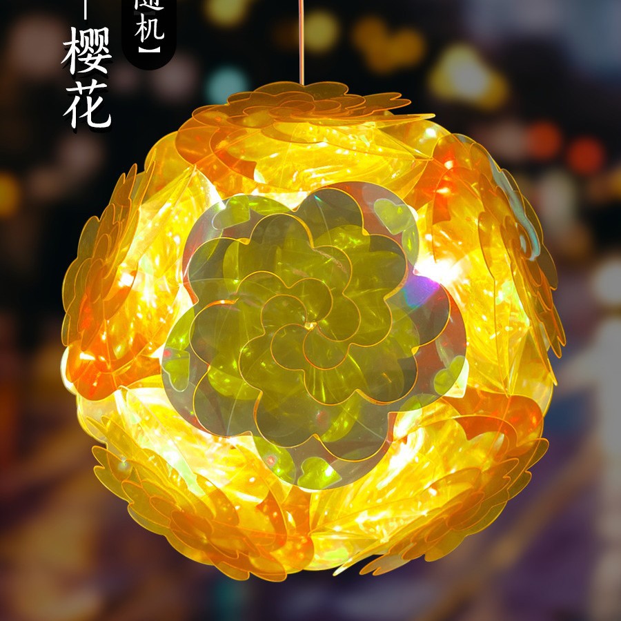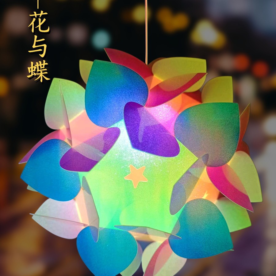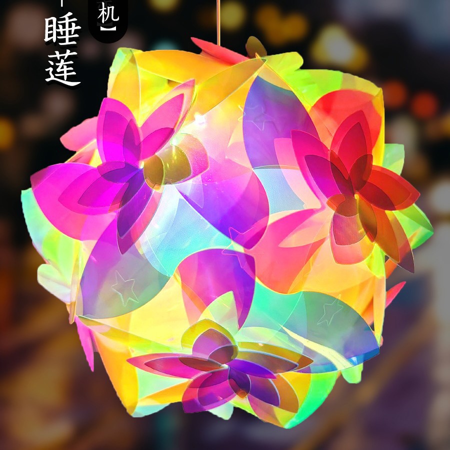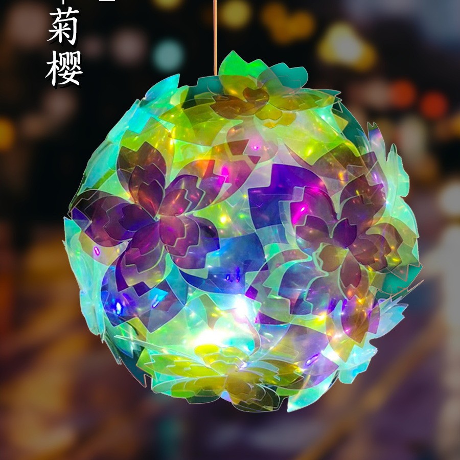 元旦节镭射灯笼网红炫彩花灯手提发光小夜灯儿童diy材料包批发