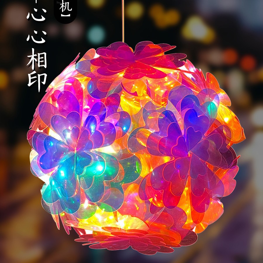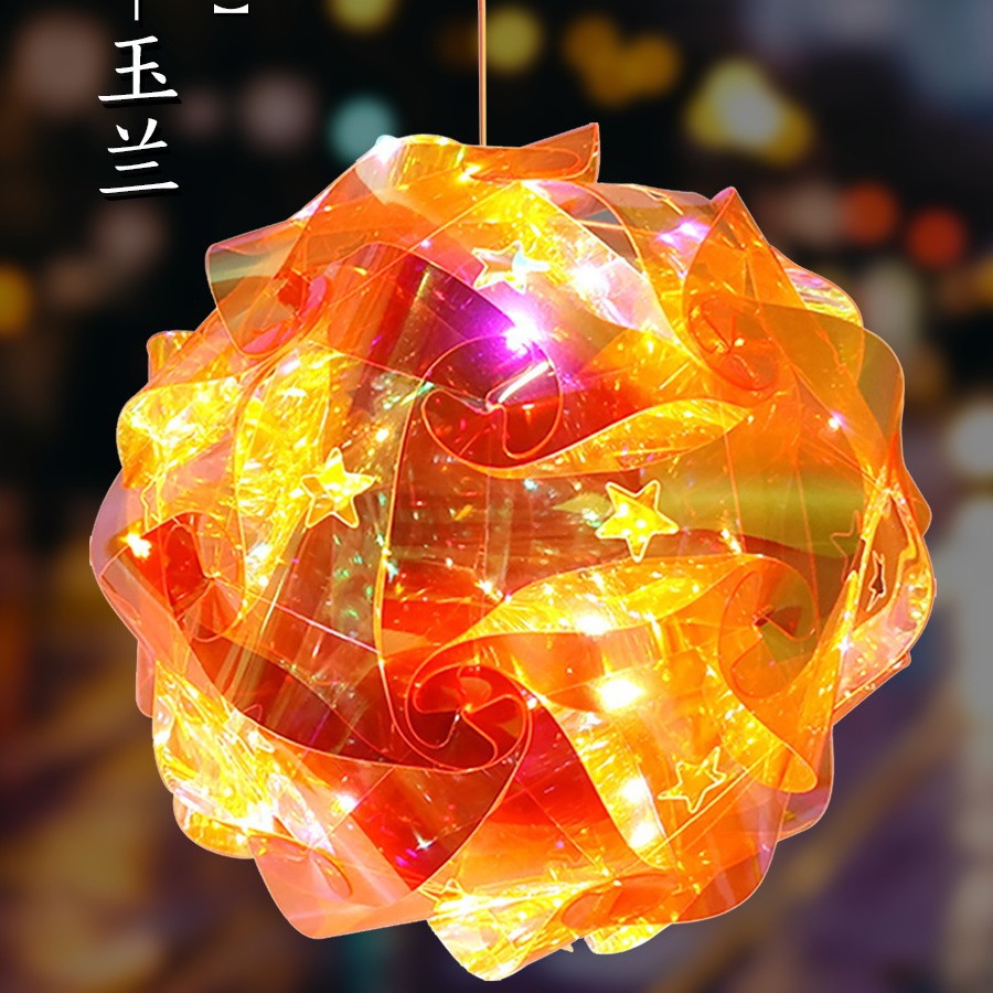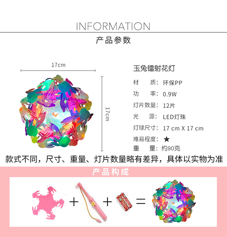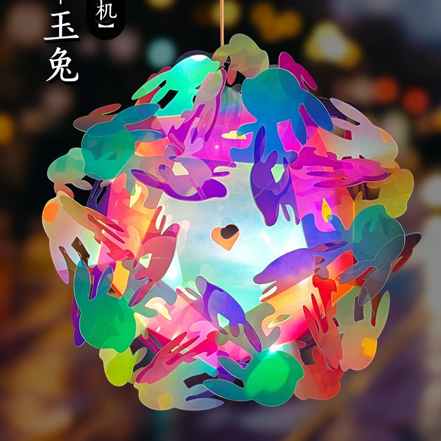 元旦节镭射灯笼网红炫彩花灯手提发光小夜灯儿童diy材料包批发