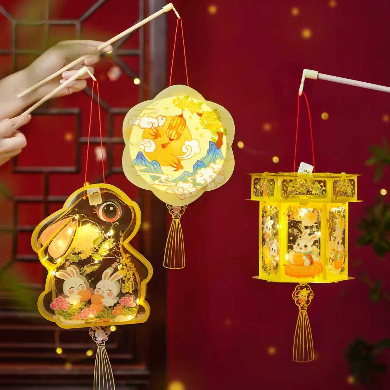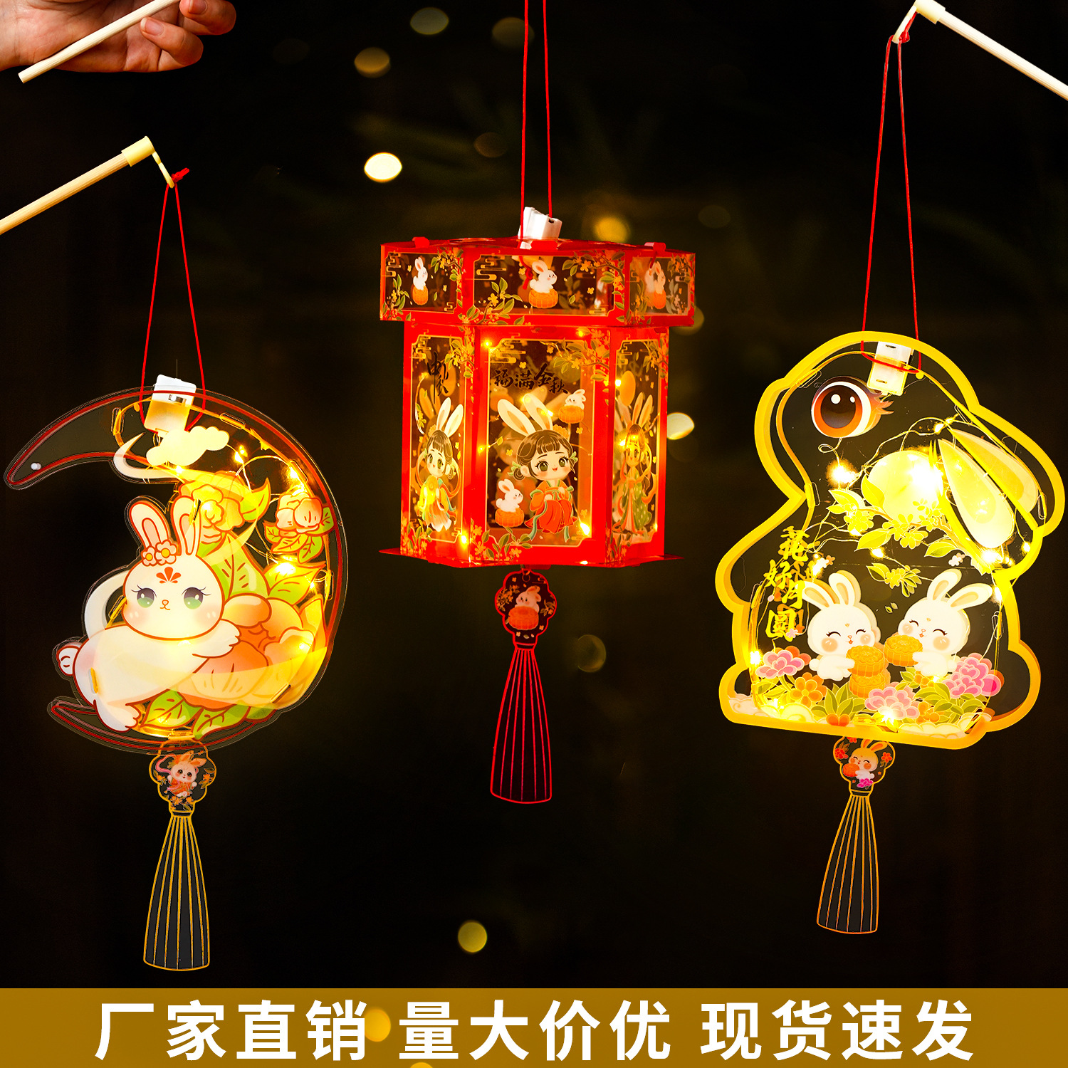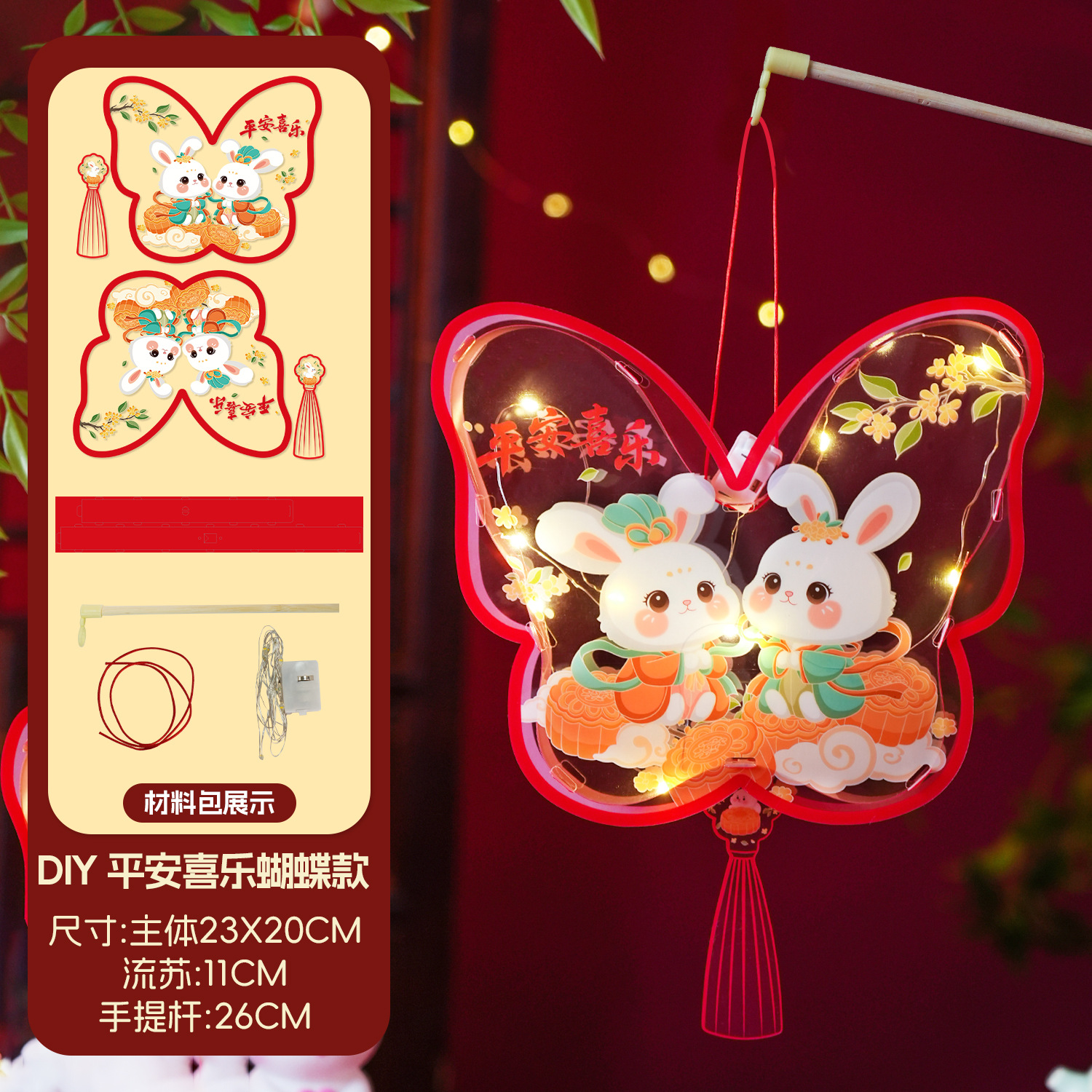 马年元宵节灯笼手工diy材料包儿童新年元旦发光花灯卡通兔子宫灯