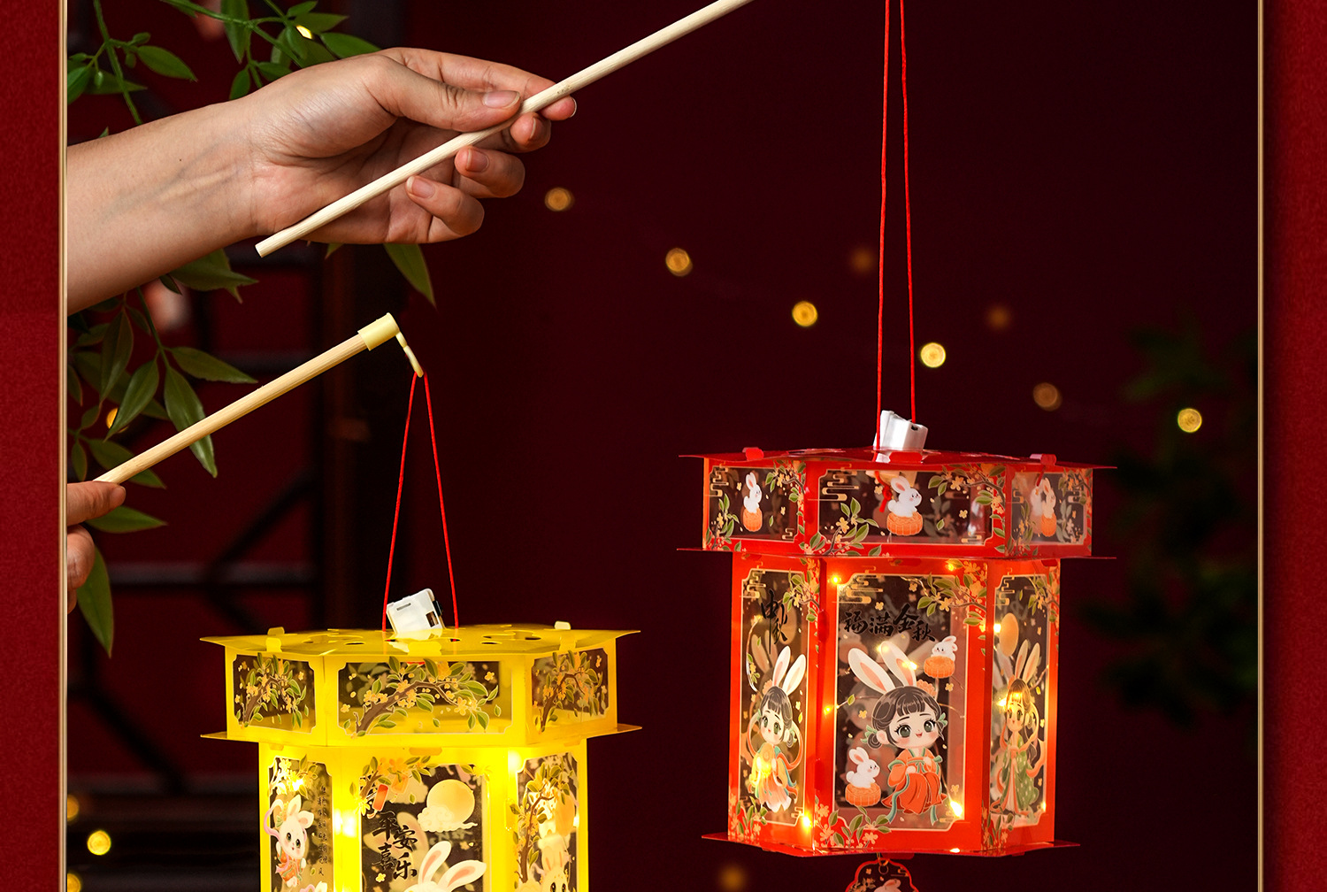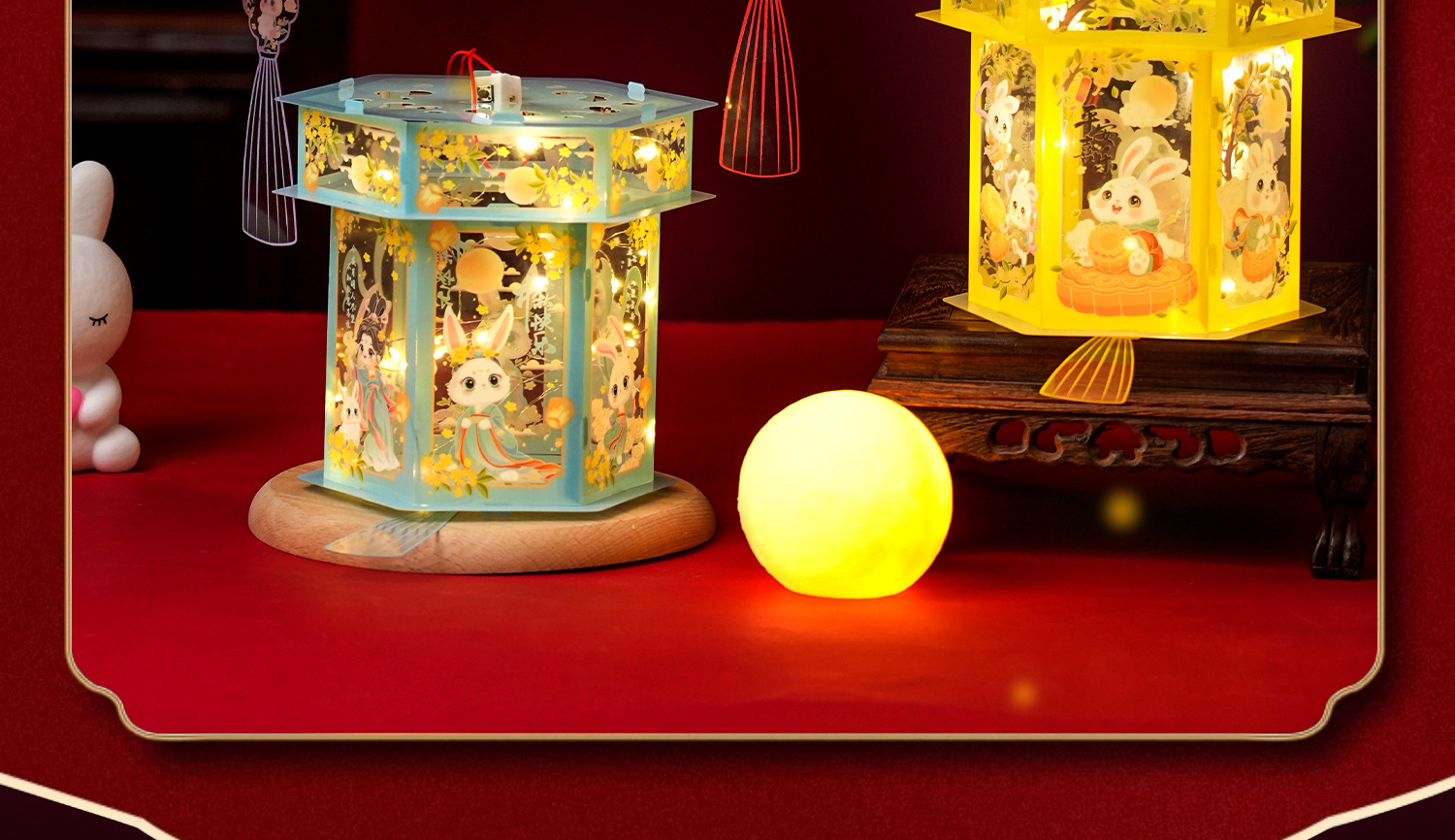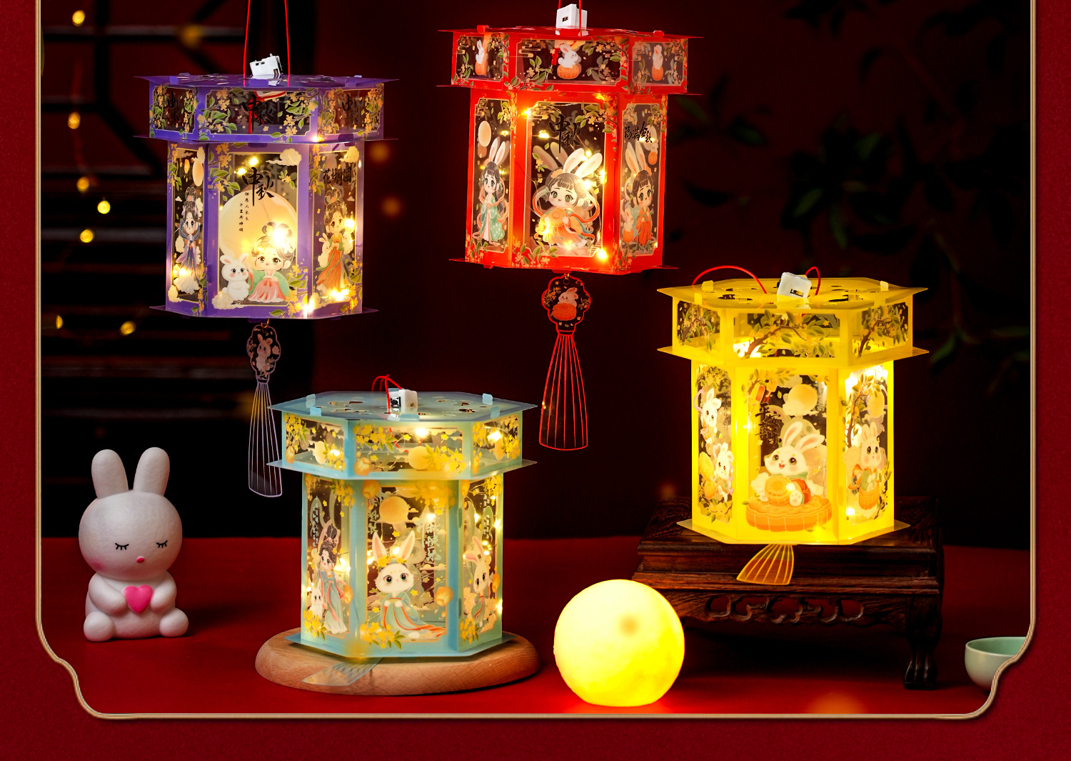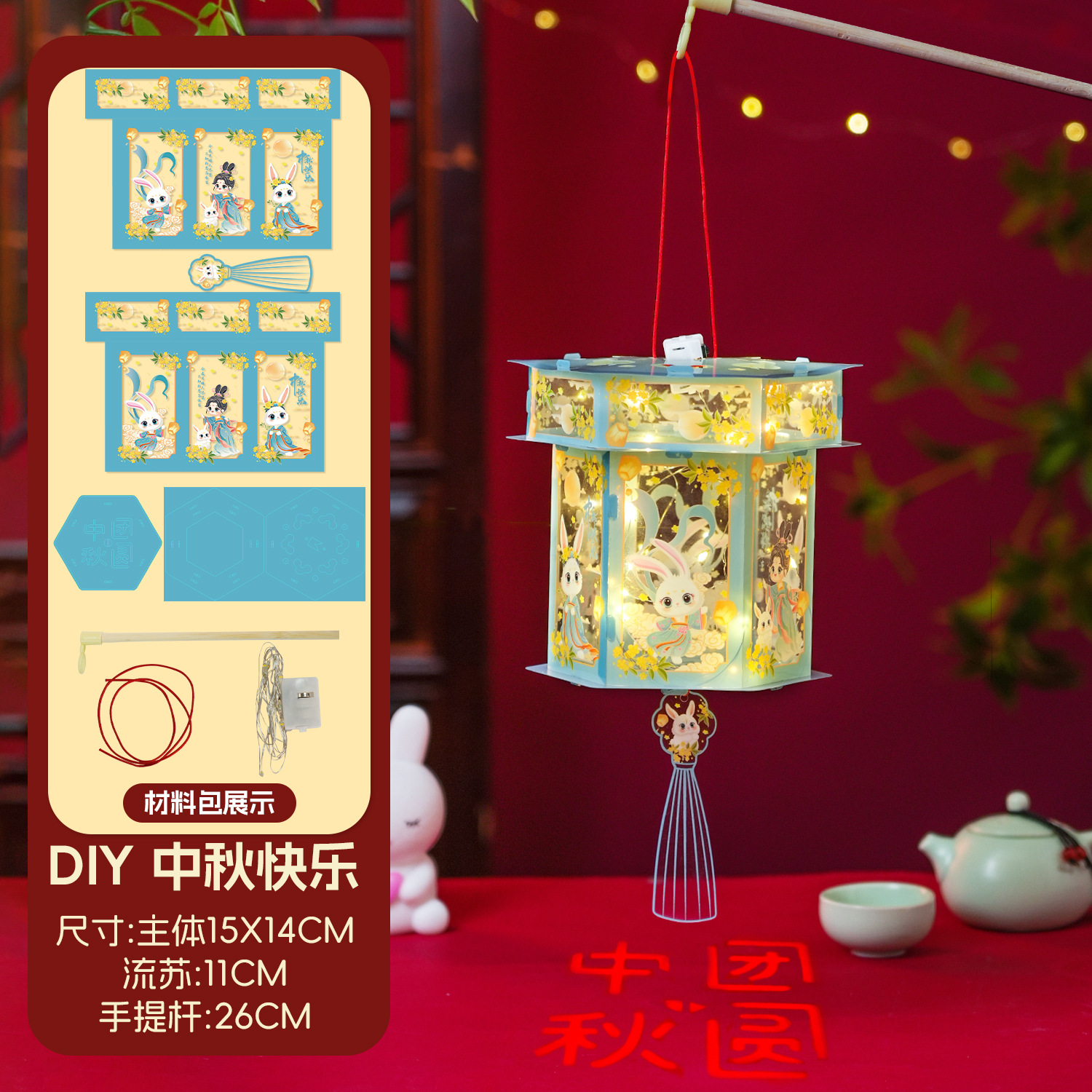 马年元宵节灯笼手工diy材料包儿童新年元旦发光花灯卡通兔子宫灯