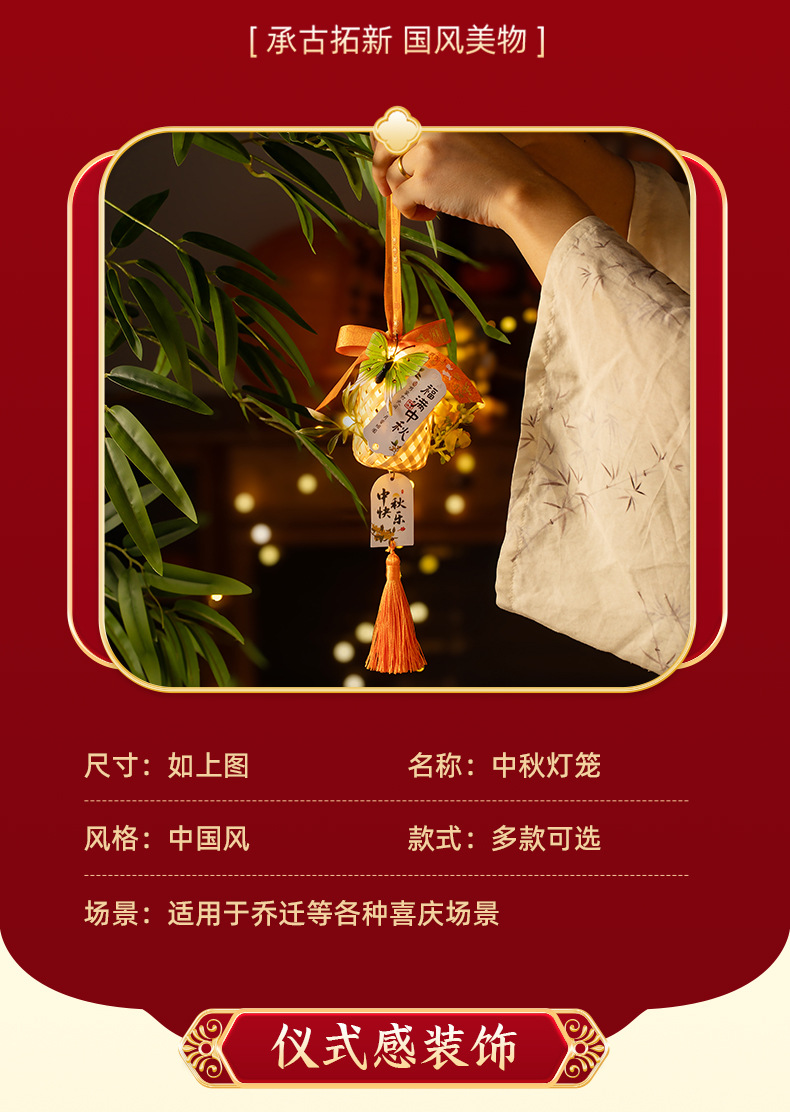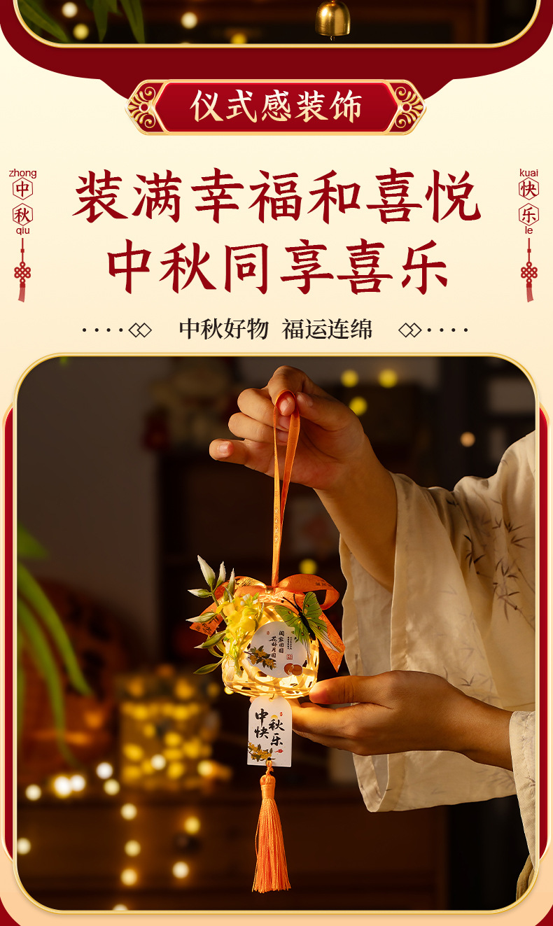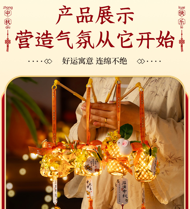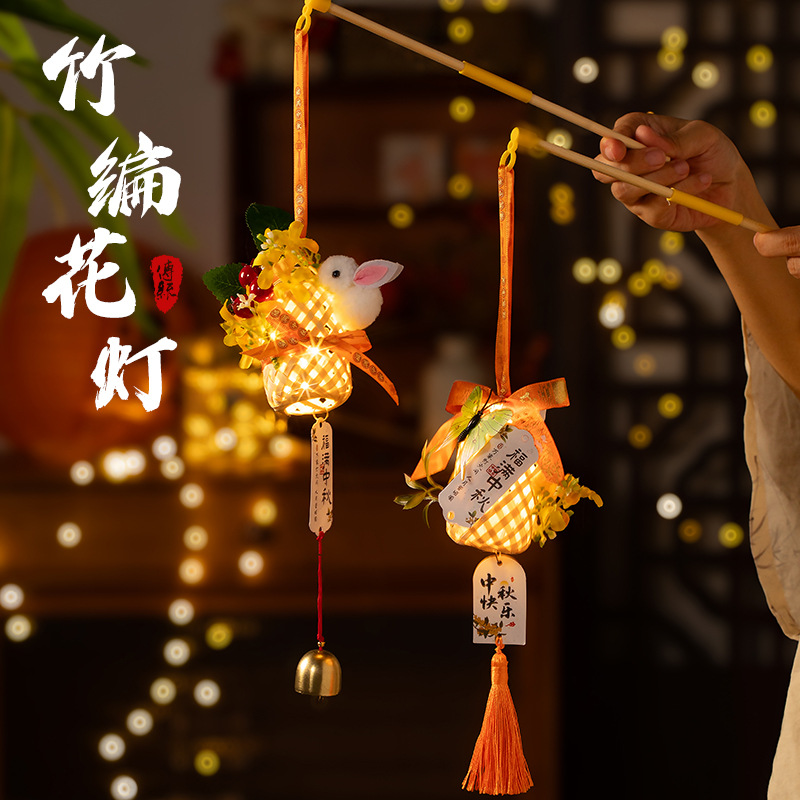 中秋竹编灯笼手提玉兔小灯笼古风中秋节门把手挂饰夜市摆摊批发