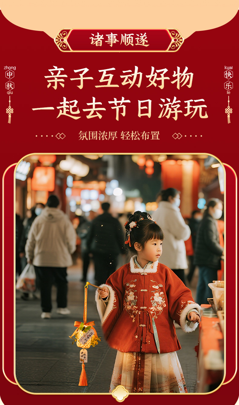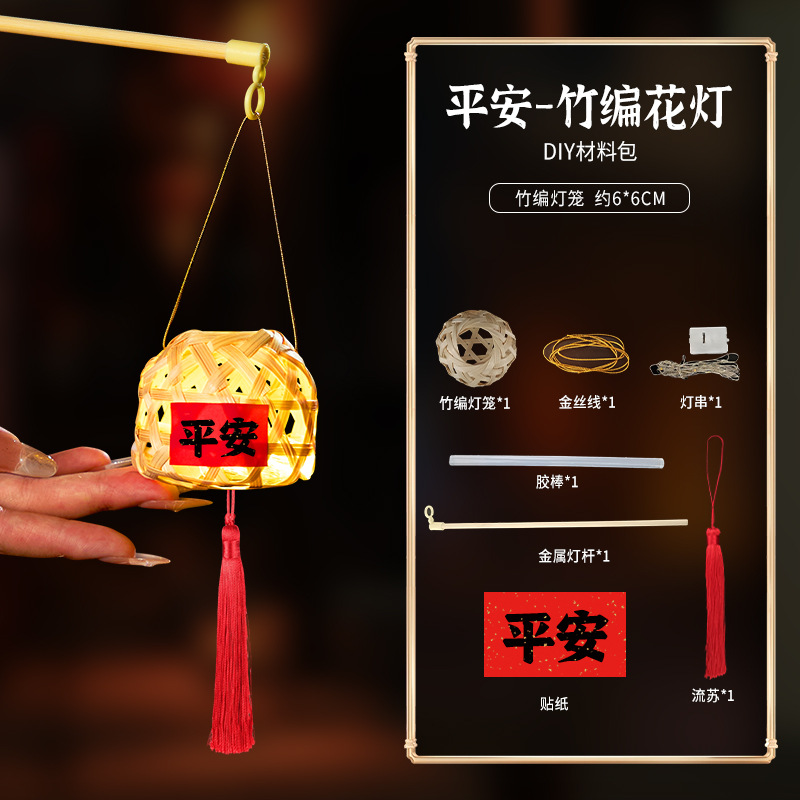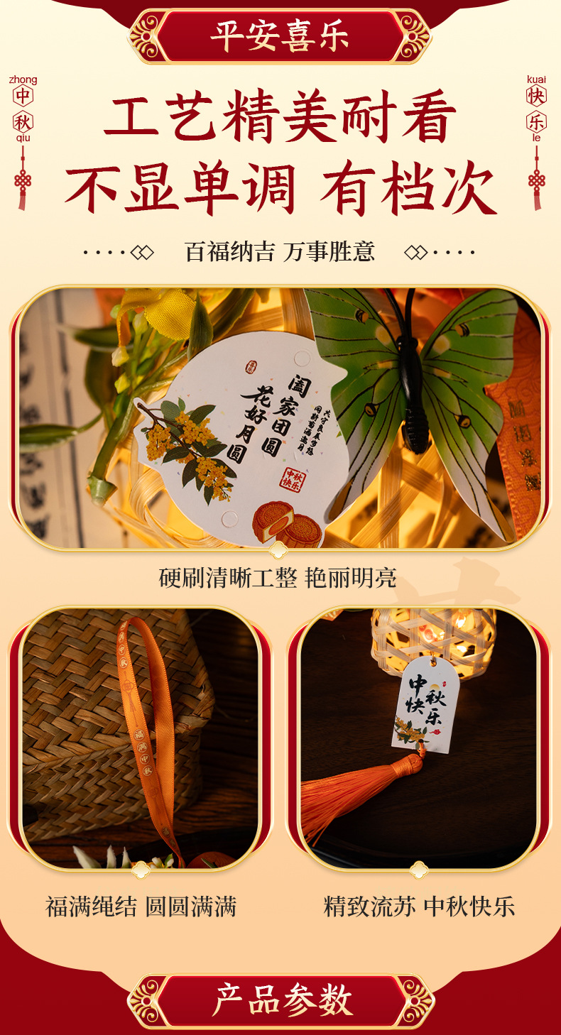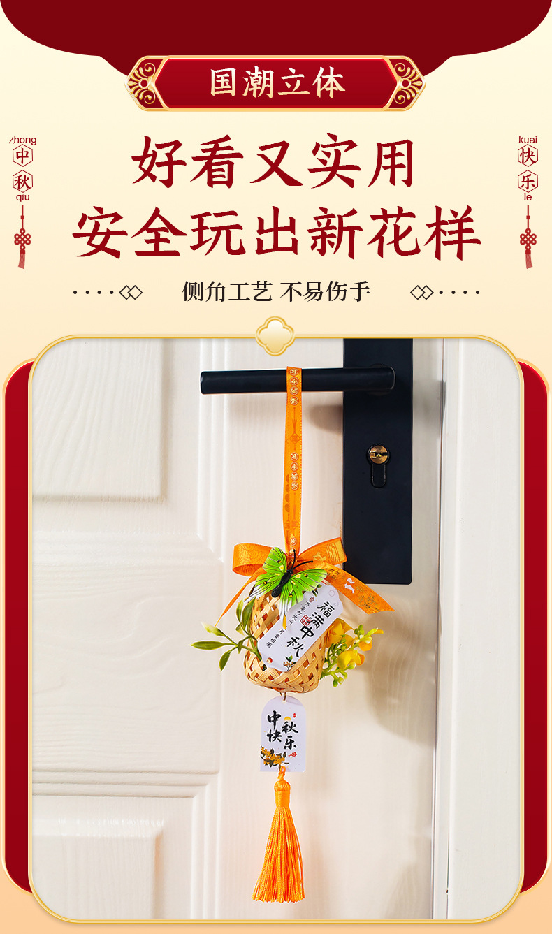 中秋竹编灯笼手提玉兔小灯笼古风中秋节门把手挂饰夜市摆摊批发