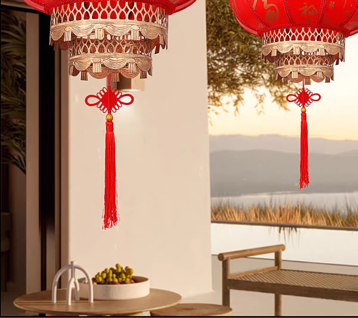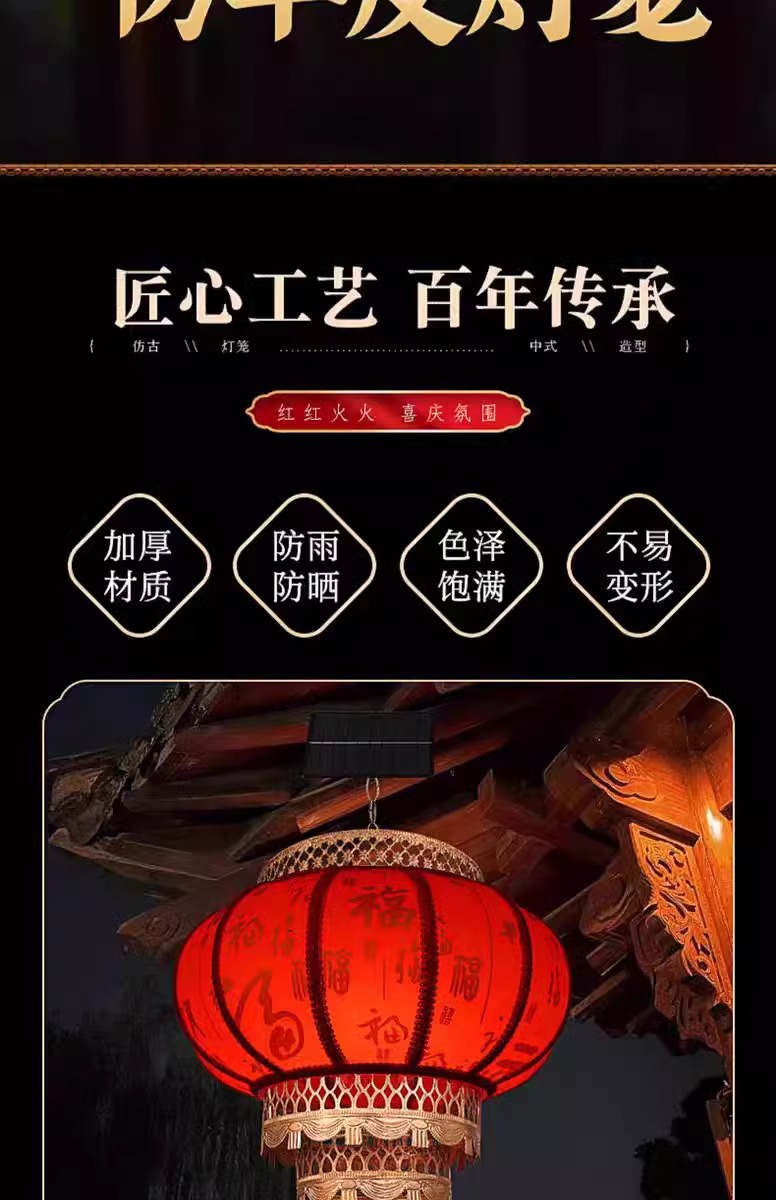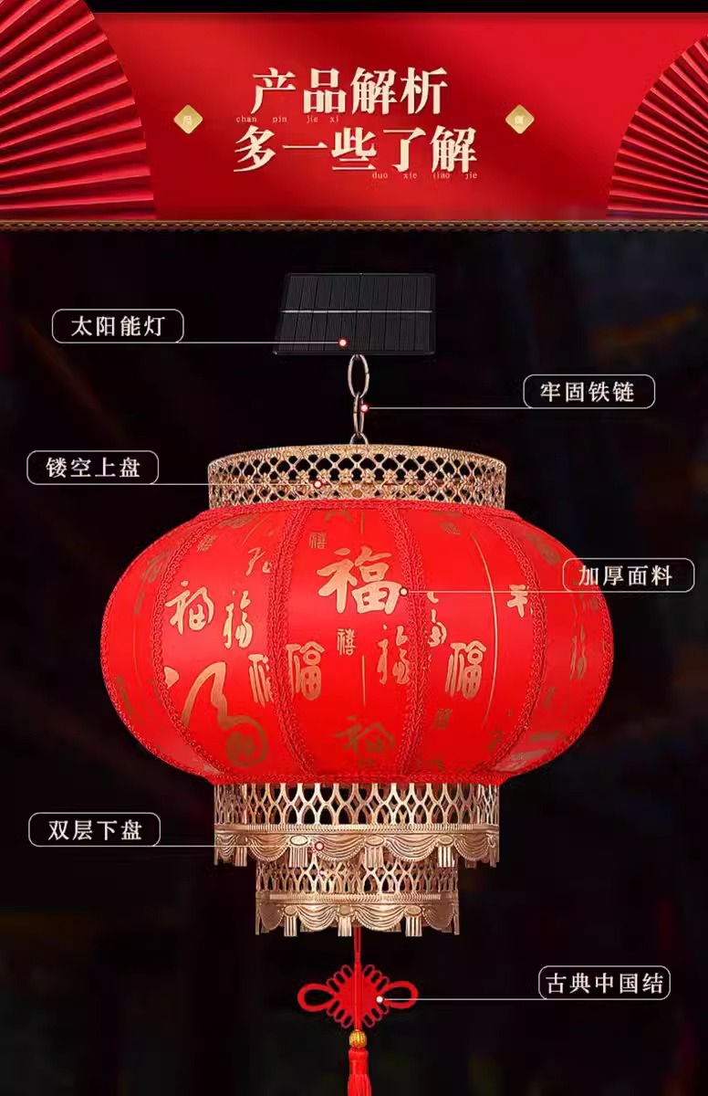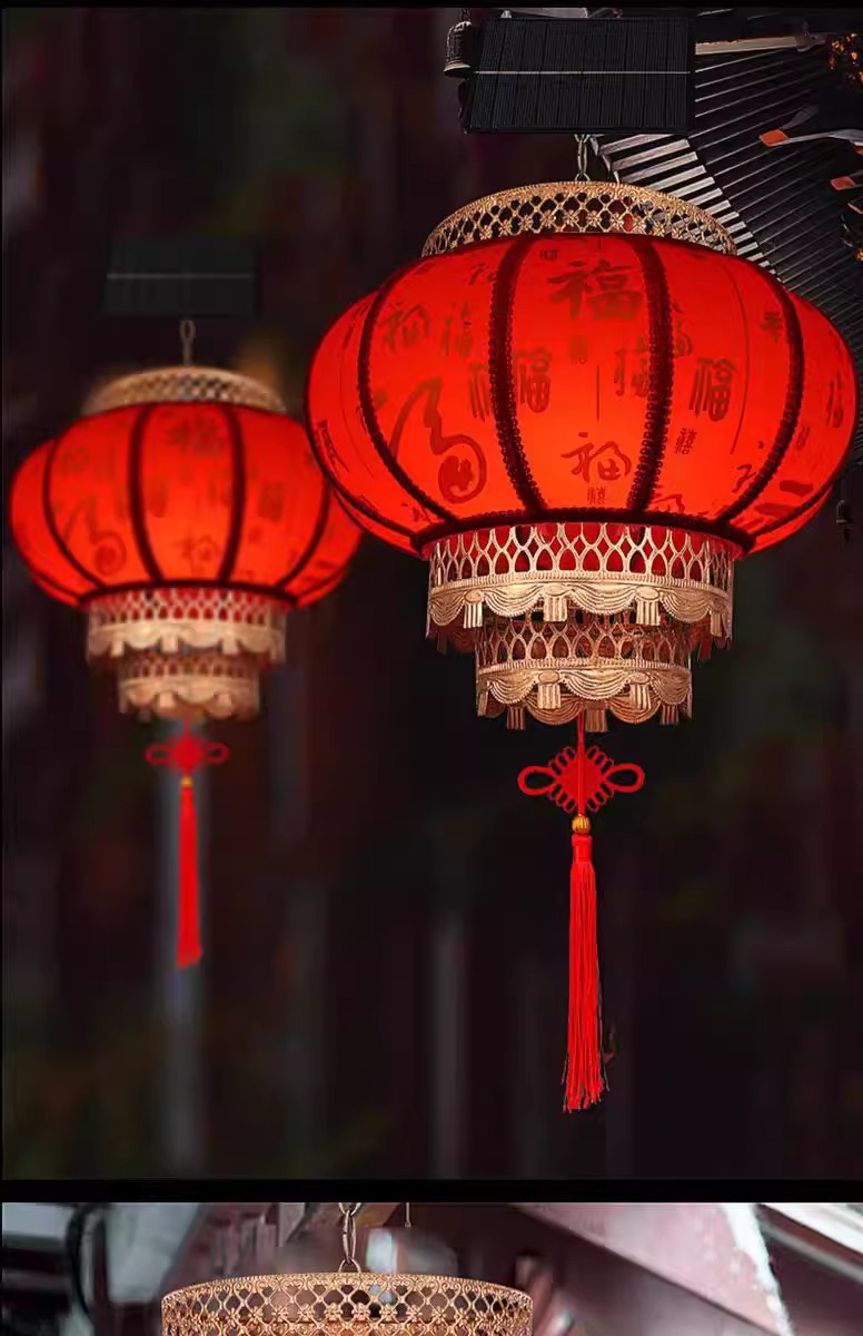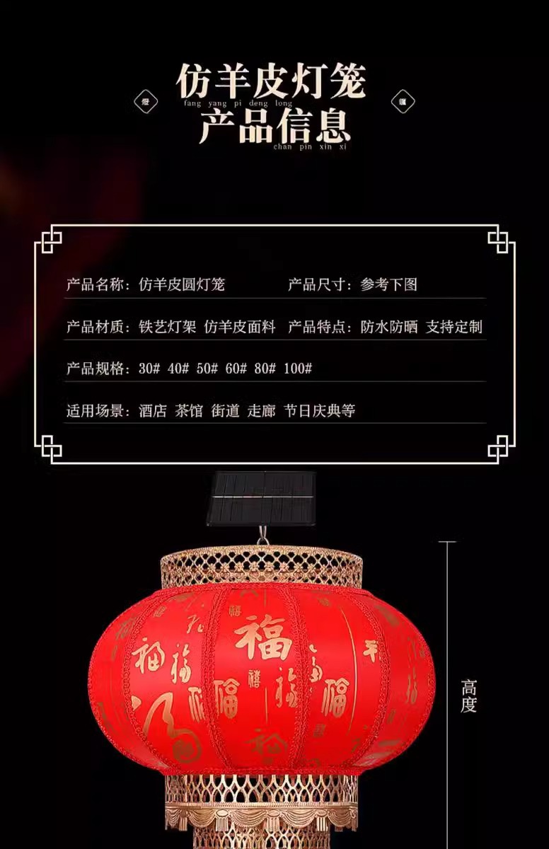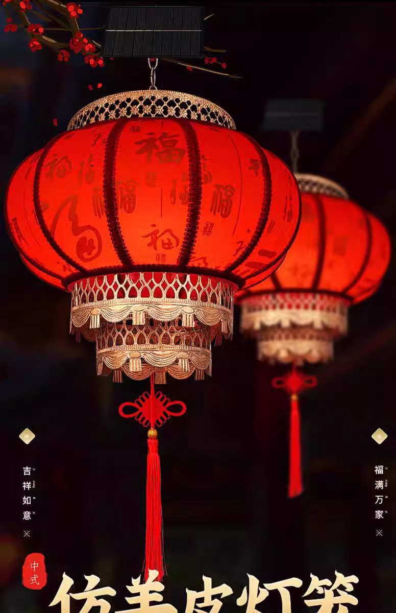 2025新款太阳能羊皮灯笼别墅大门阳台庭院乔迁挂饰吊灯大红灯笼
