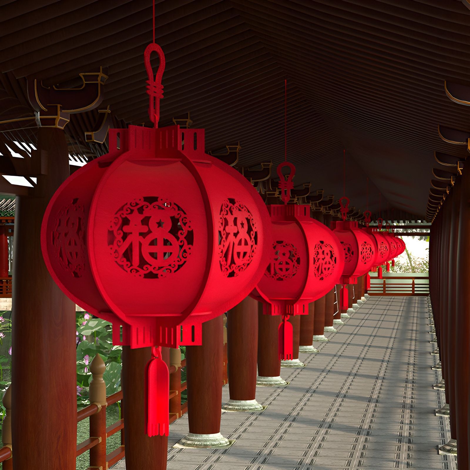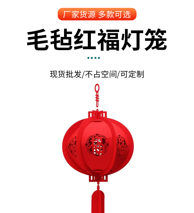 新年毛毡灯笼中式春节圆形福字挂件创意宫灯乔迁进宅装饰商场布置