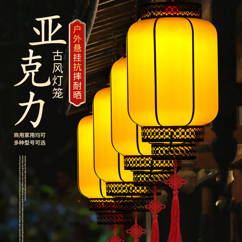 灯笼户外大红亚克力防水仿羊皮灯笼中式仿古风吊灯中国风景区装饰