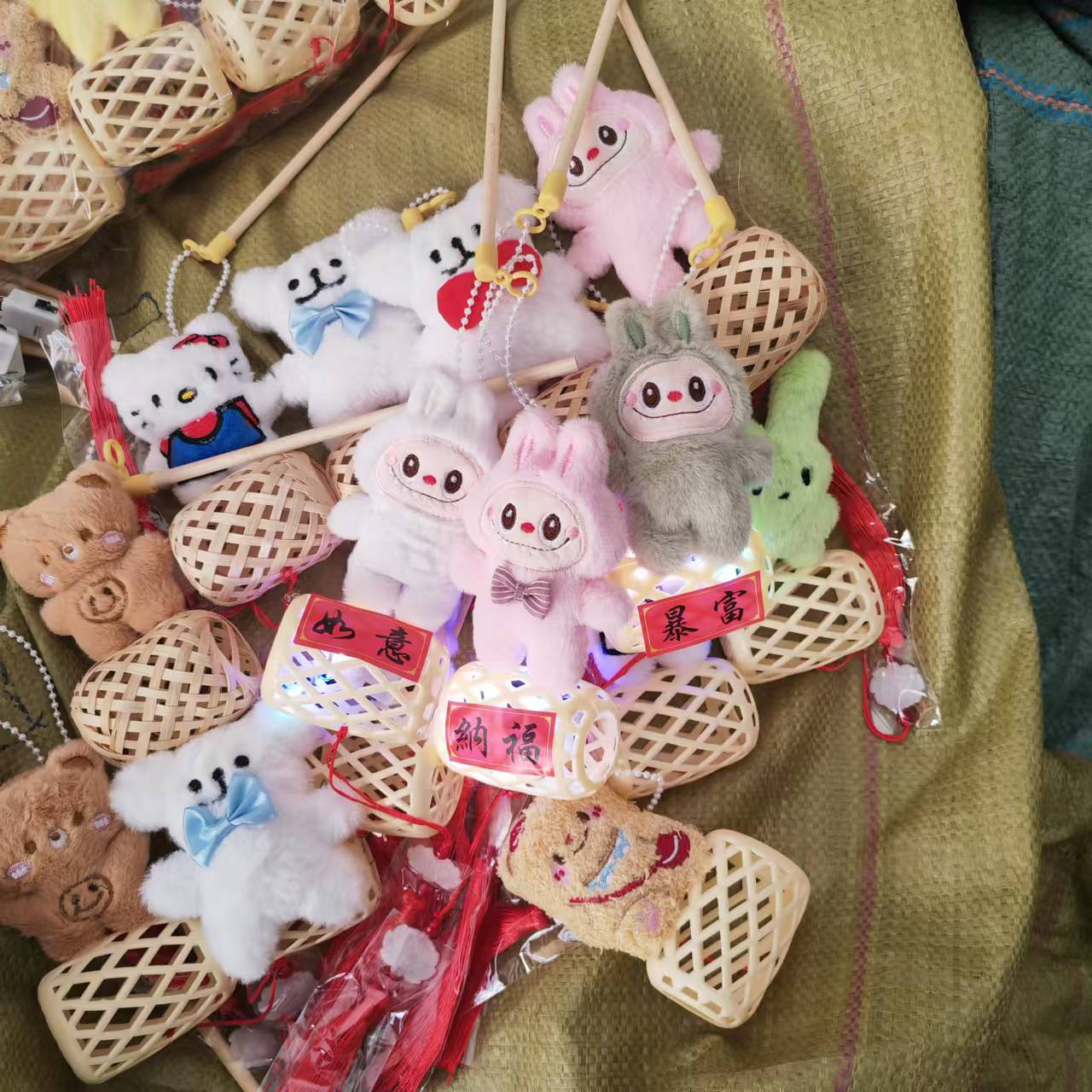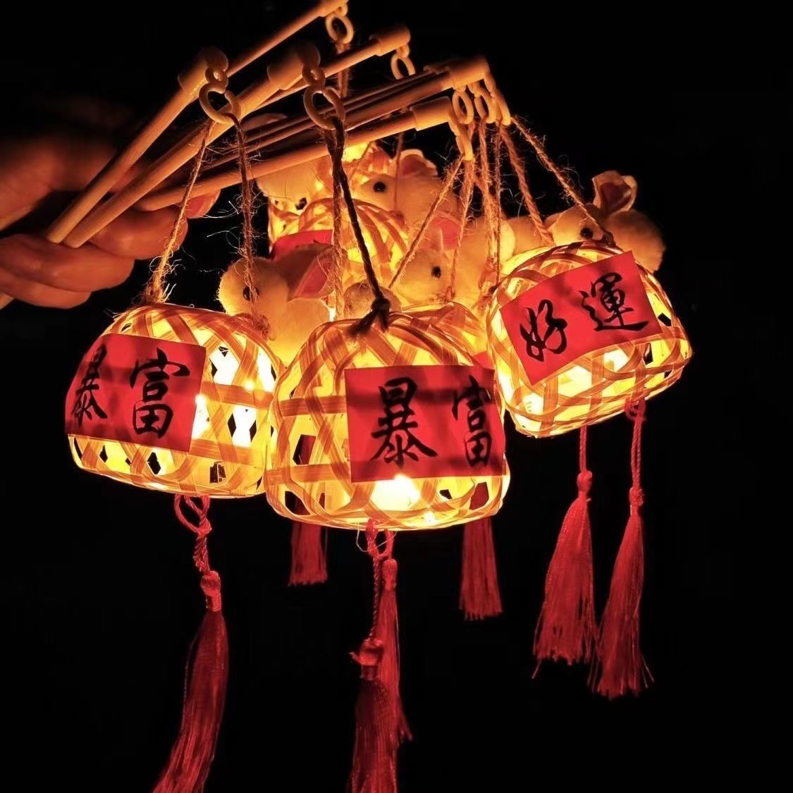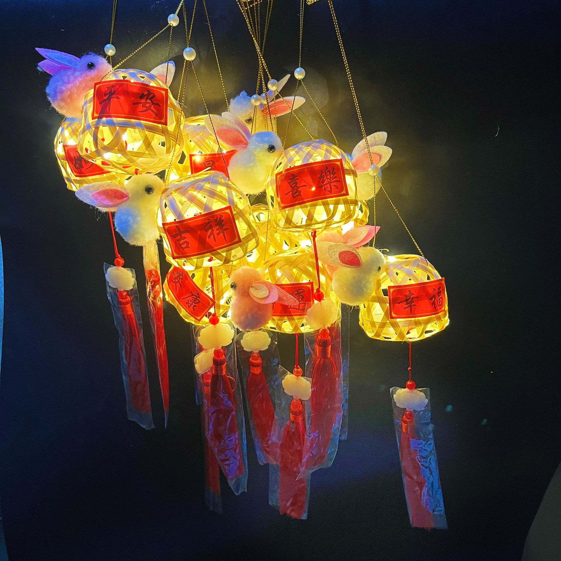 2025新款蛇年小灯笼春节儿童发光玩具夜市卡通手提迷你古风防竹编