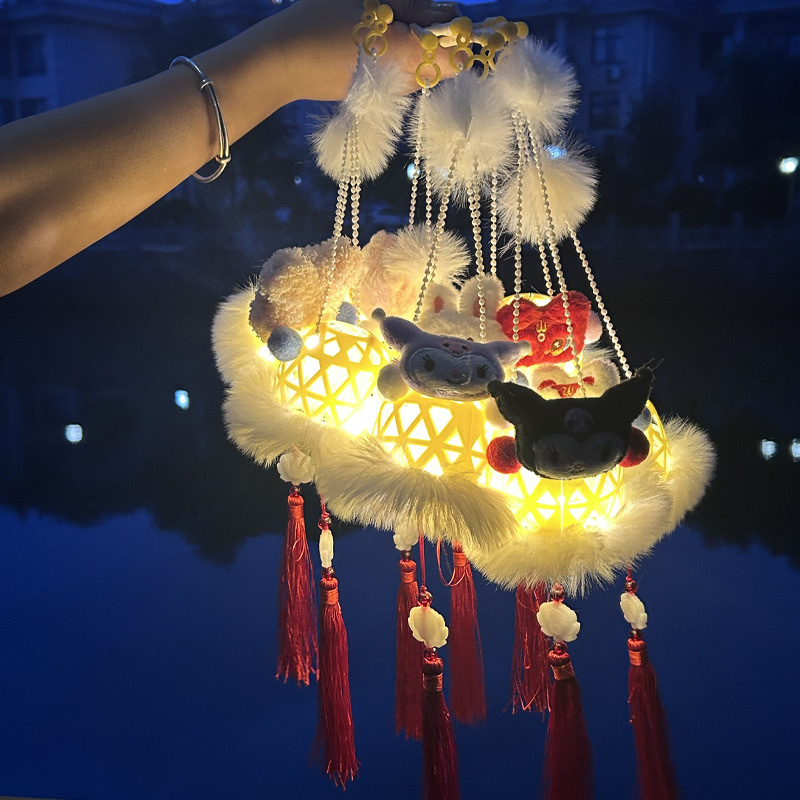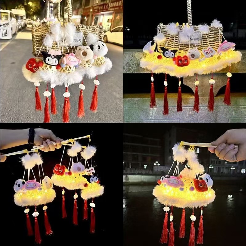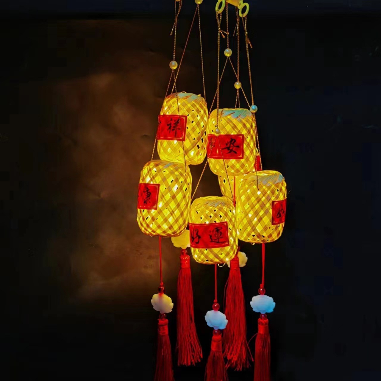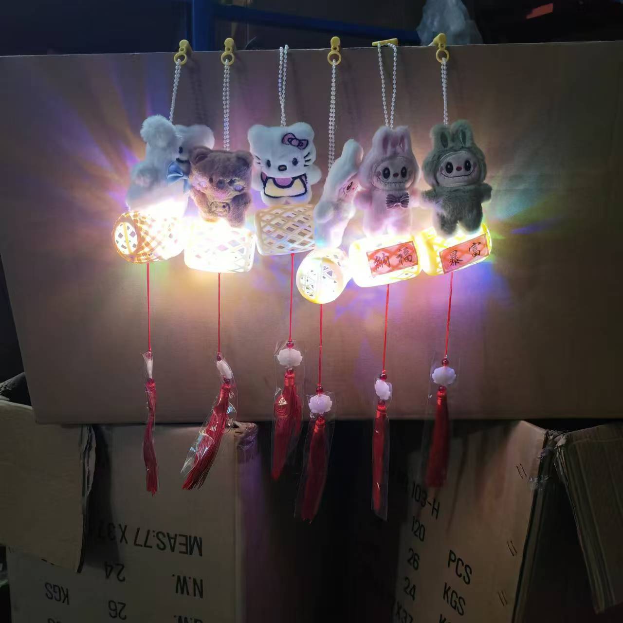 2025新款蛇年小灯笼春节儿童发光玩具夜市卡通手提迷你古风防竹编