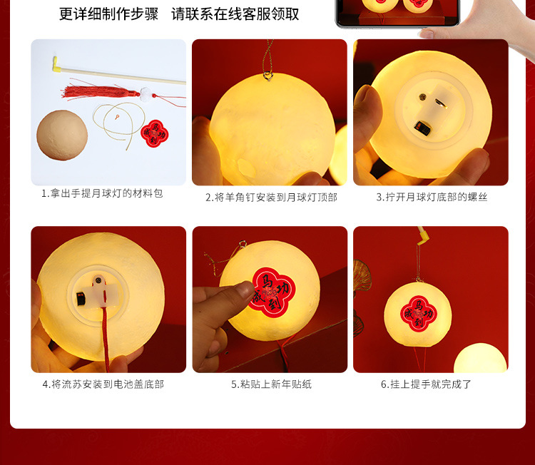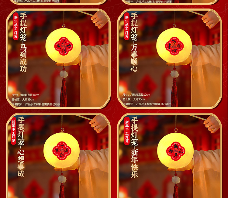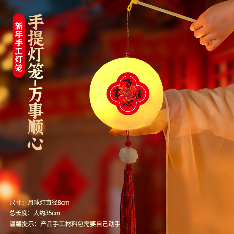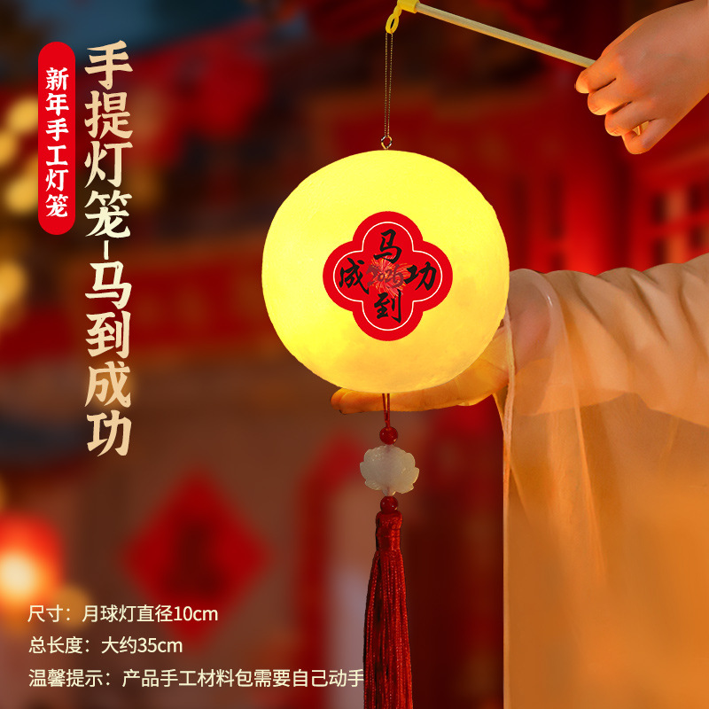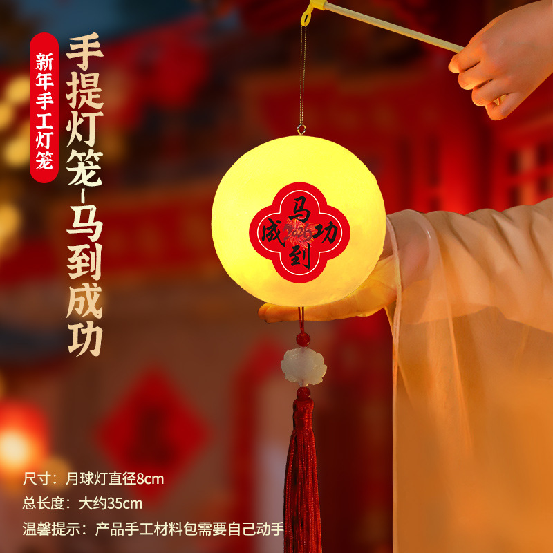 元旦节手工diy手提古风发光灯笼2026新款儿童马年月亮花灯挂饰