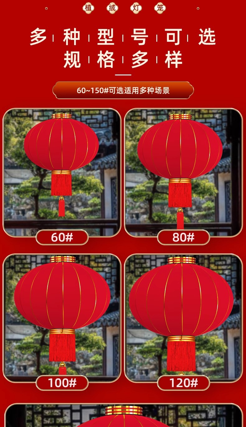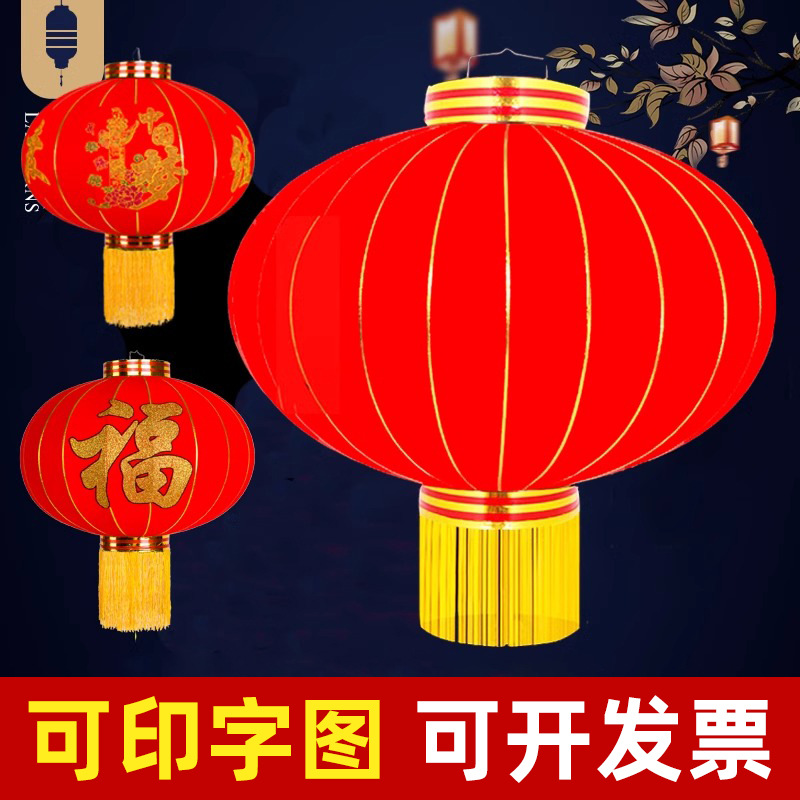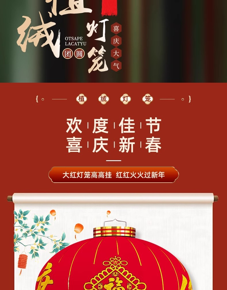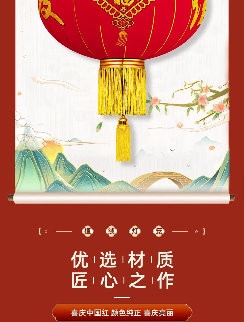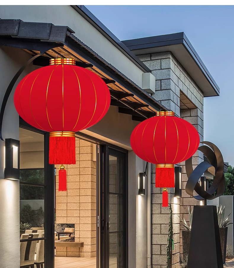 新年灯笼过年春节红灯笼阳台大门口挂饰灯笼 户外防水植绒灯笼