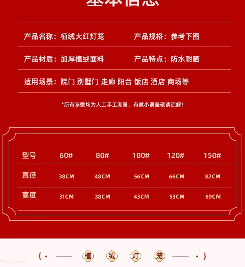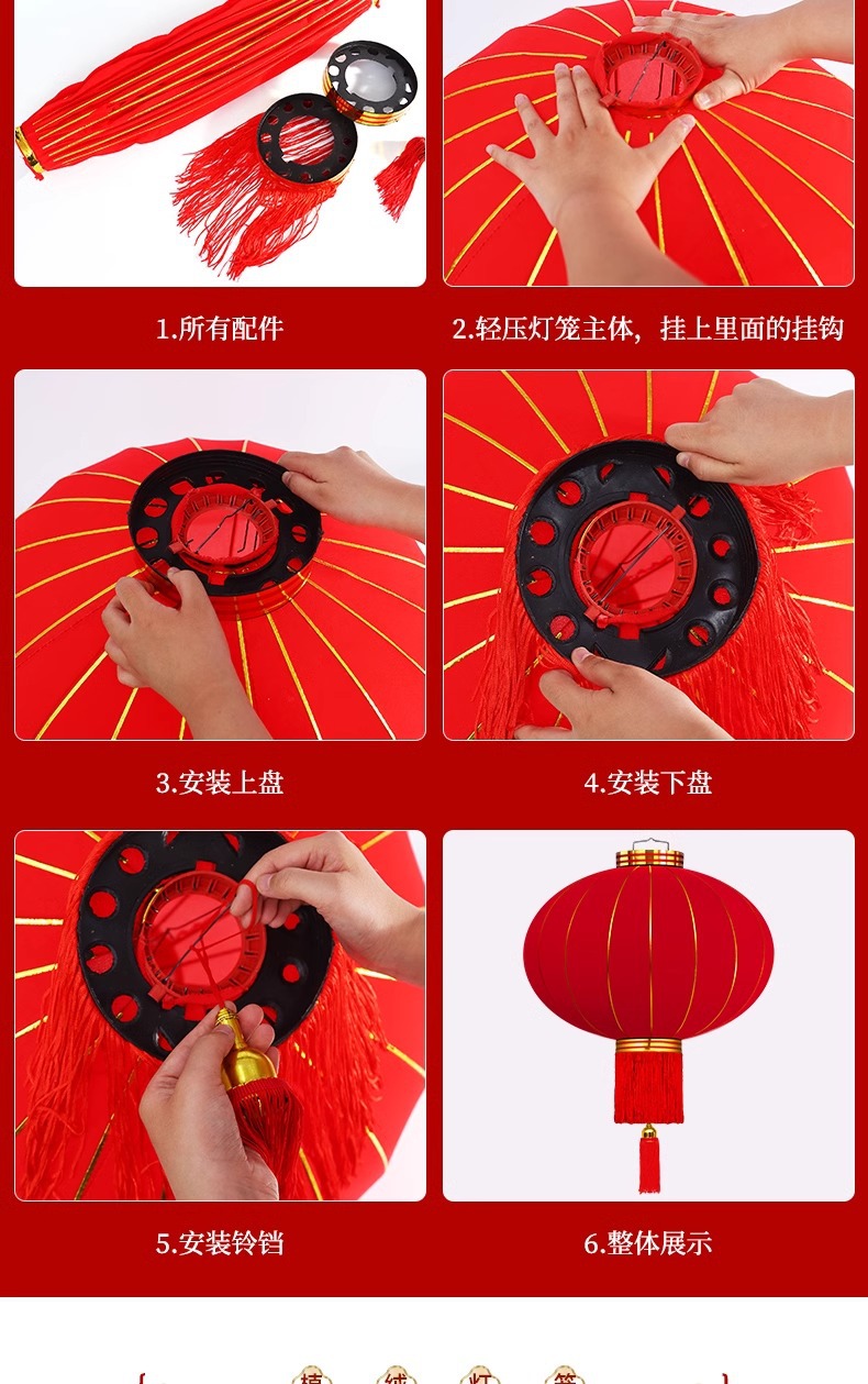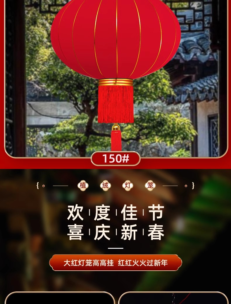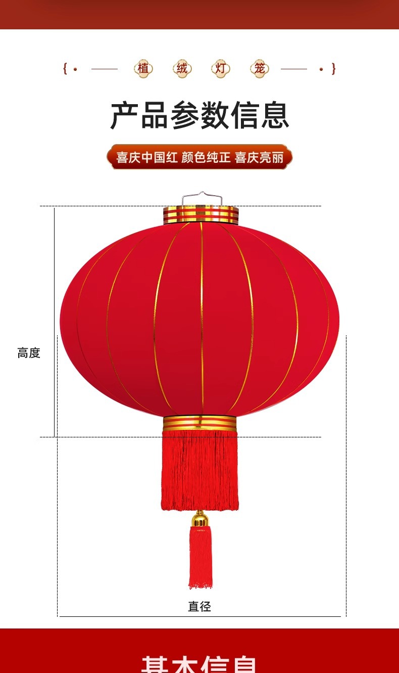 新年灯笼过年春节红灯笼阳台大门口挂饰灯笼 户外防水植绒灯笼