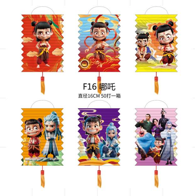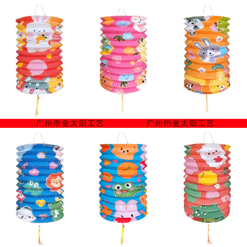 2025热销新款中秋节纸灯笼风琴折叠卡通动漫led小灯儿童手提灯笼