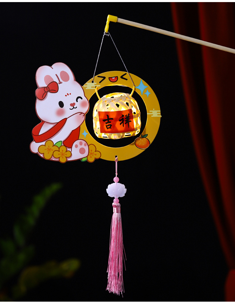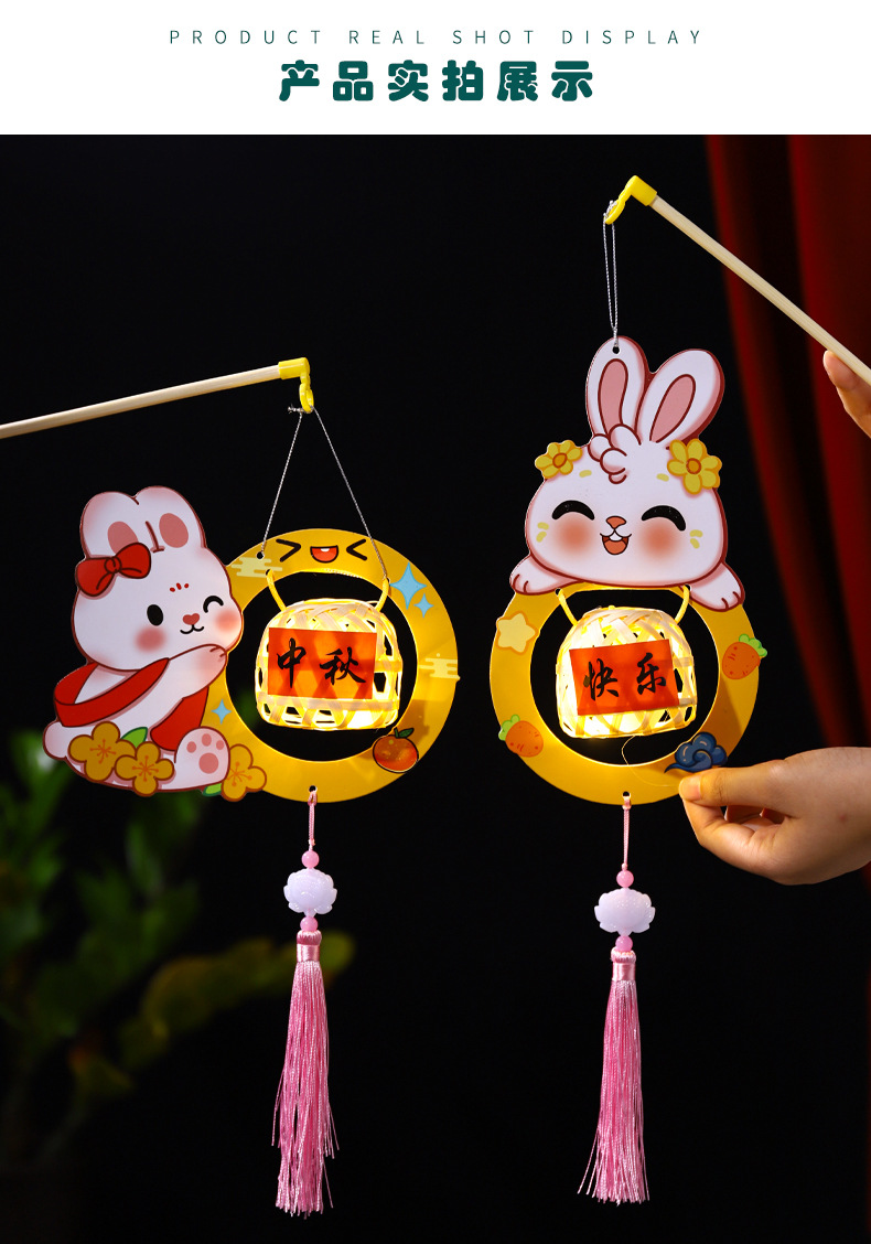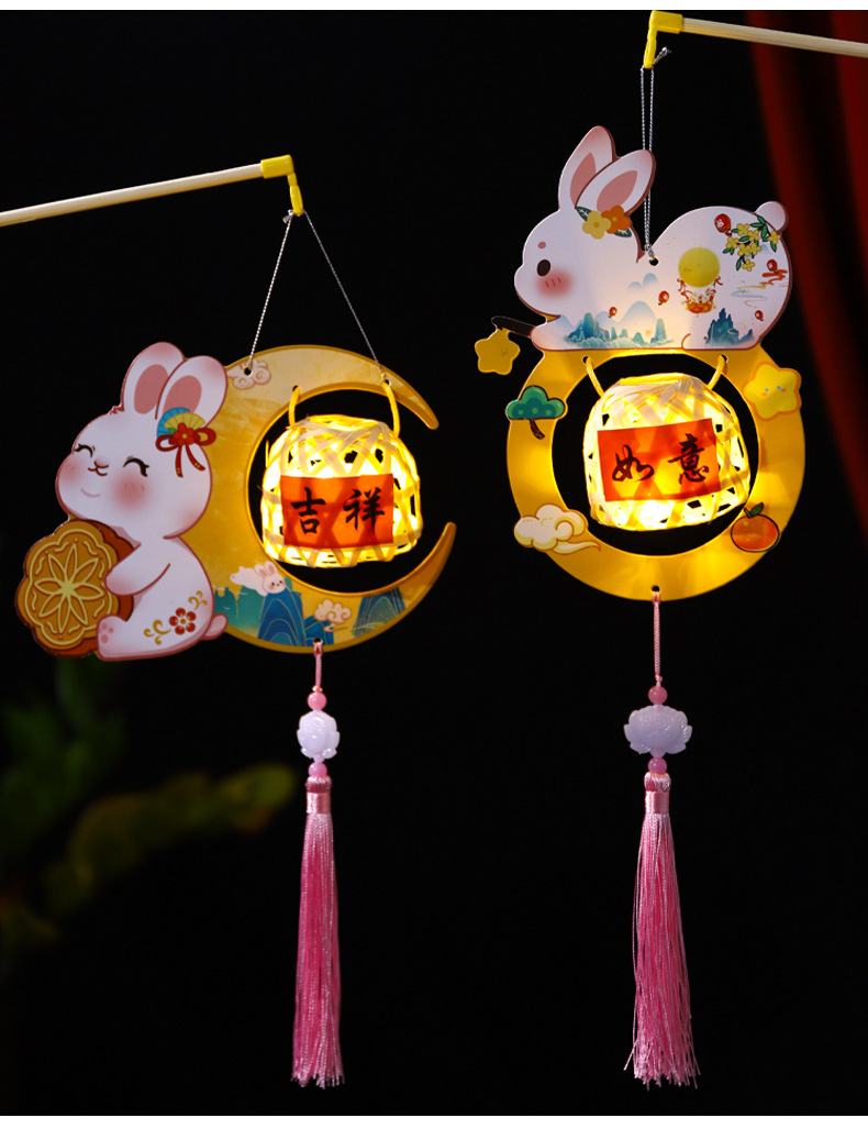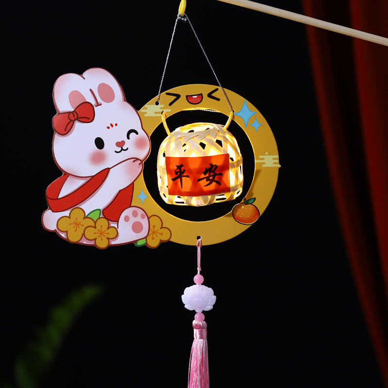 2026新款中秋节灯笼diy手工儿童手提国风兔子花灯宫灯竹编小灯笼