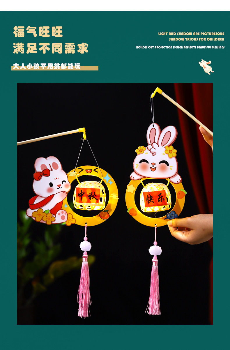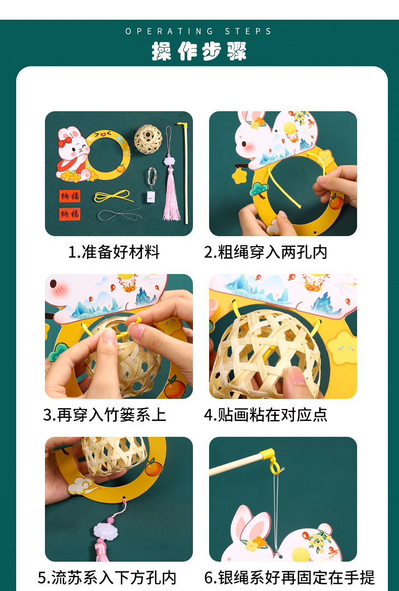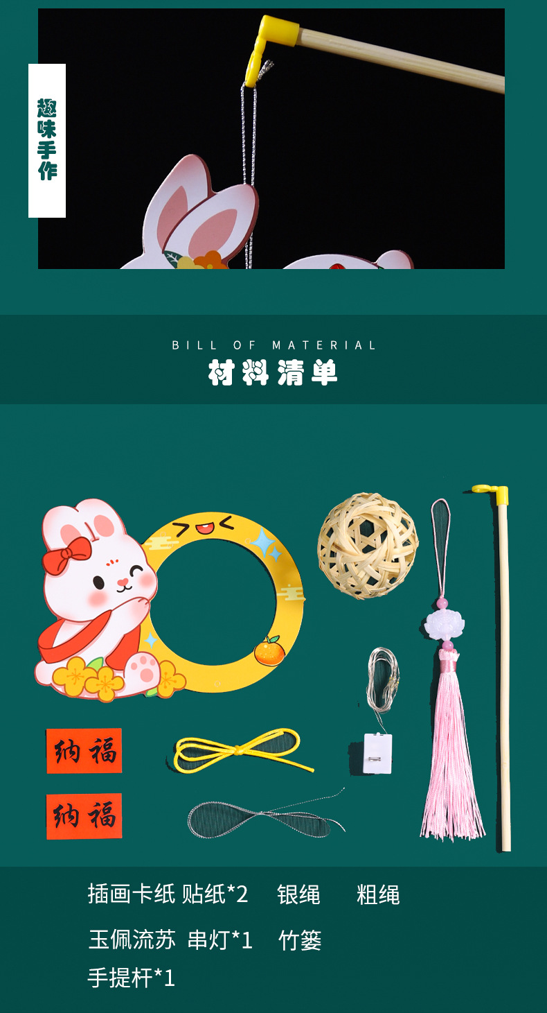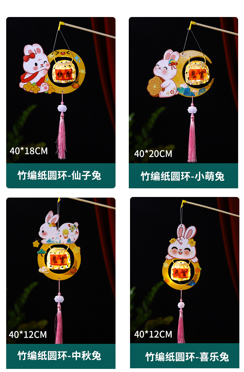 2026新款中秋节灯笼diy手工儿童手提国风兔子花灯宫灯竹编小灯笼