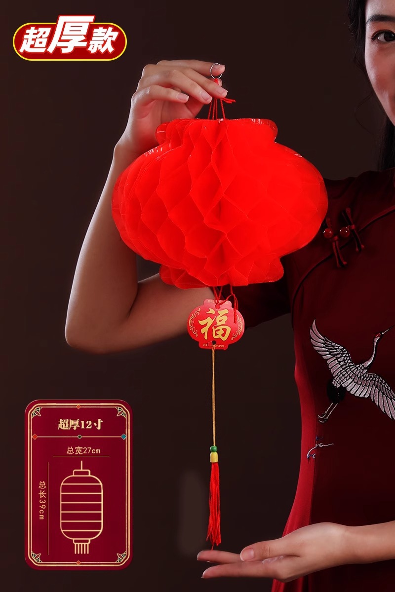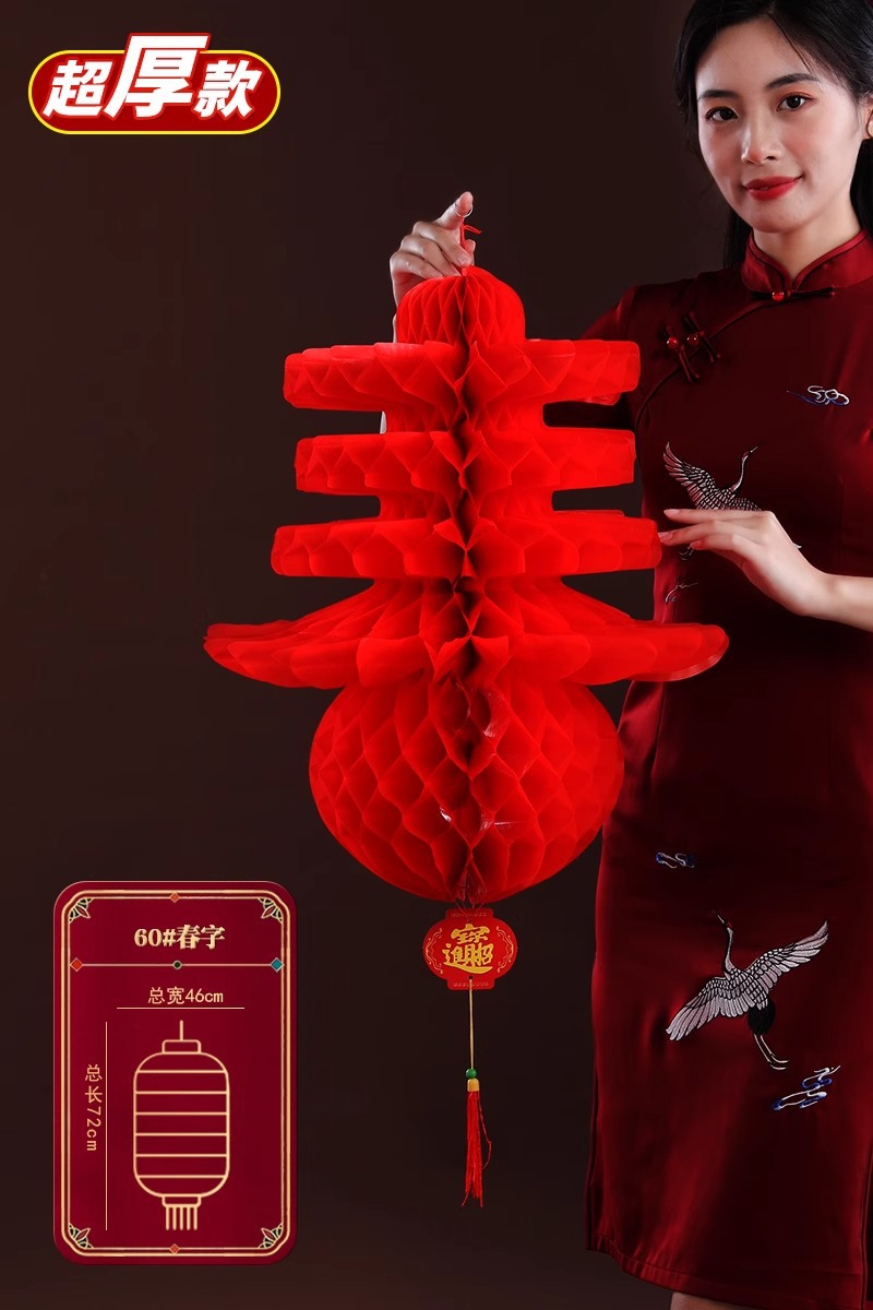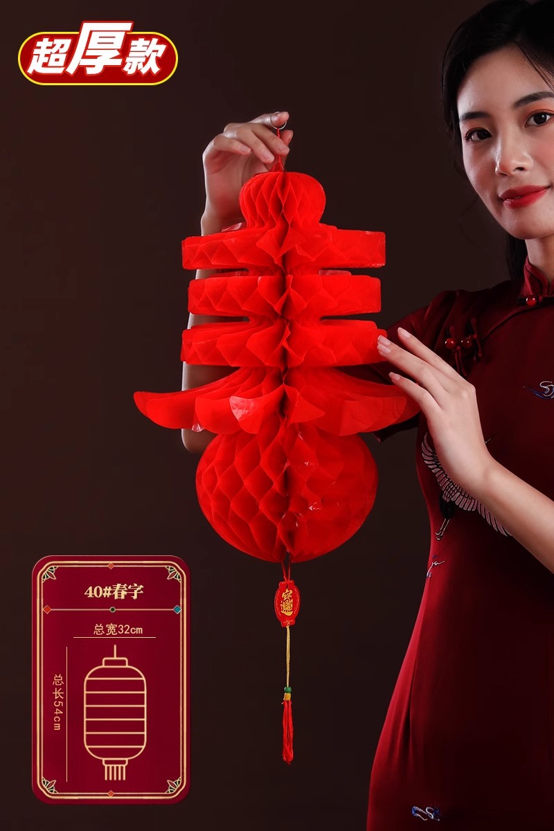 纸灯笼2026新年喜庆装饰春节过年户外大院子树上蜂窝挂饰马年福字