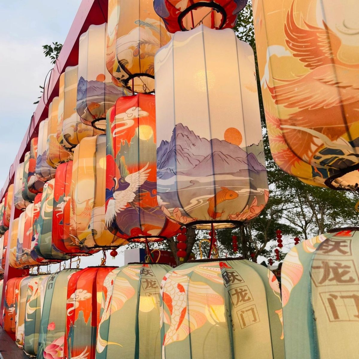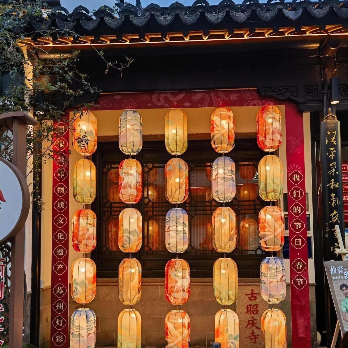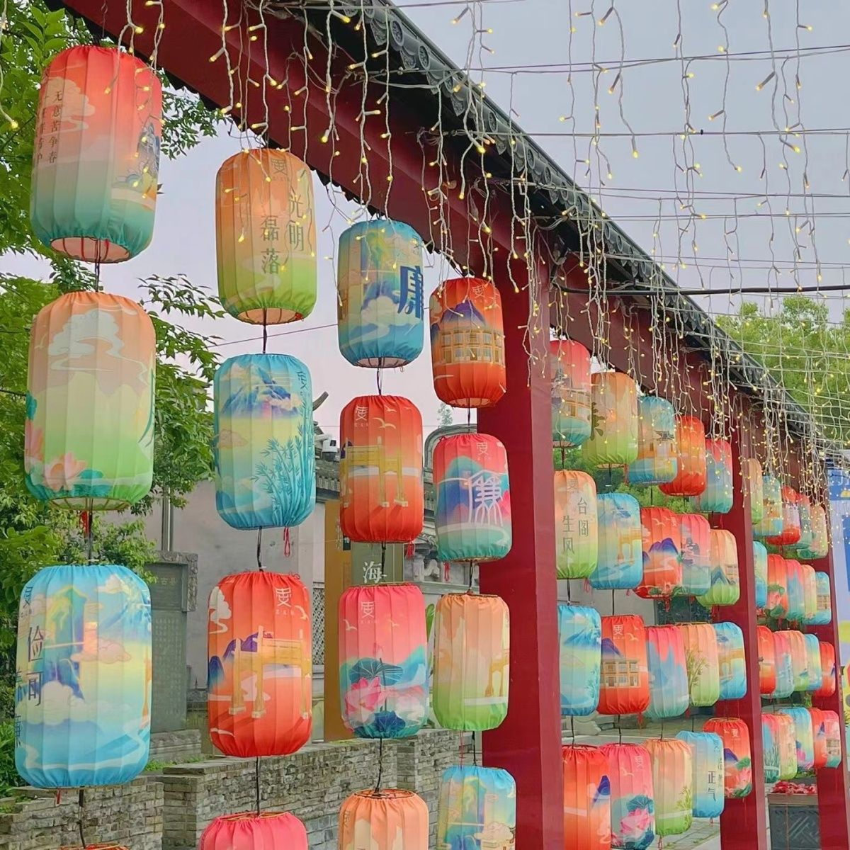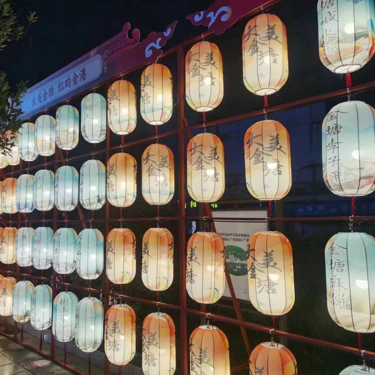 新中式国潮古风灯笼冬瓜布艺吊灯户外景区布置婚礼装饰创意灯笼墙