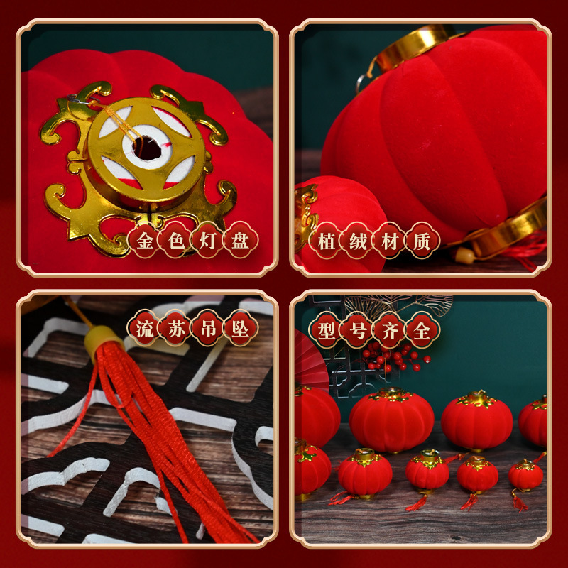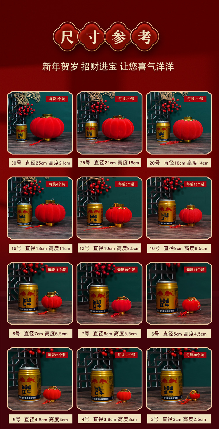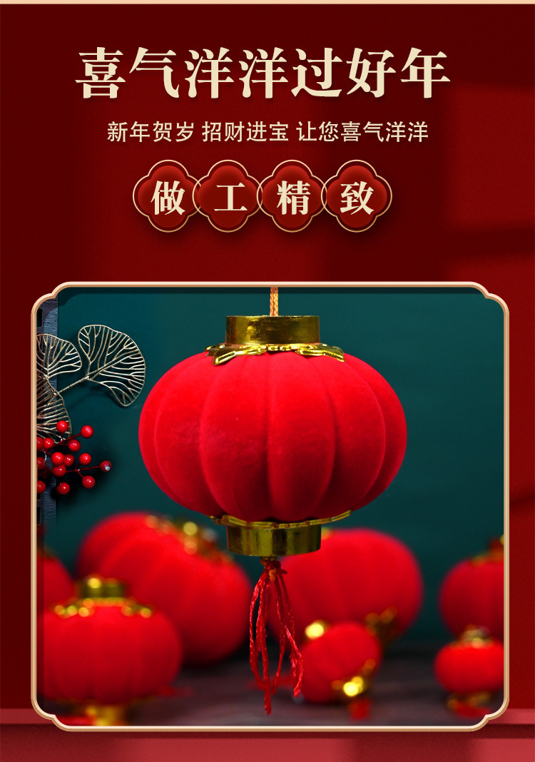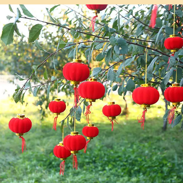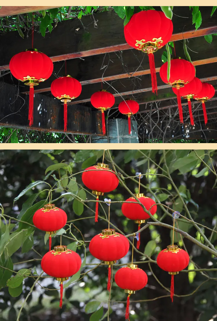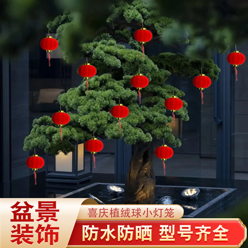 大红植绒球小灯笼节日庆典布置阳台盆景绿植挂件新年户外喜庆装饰