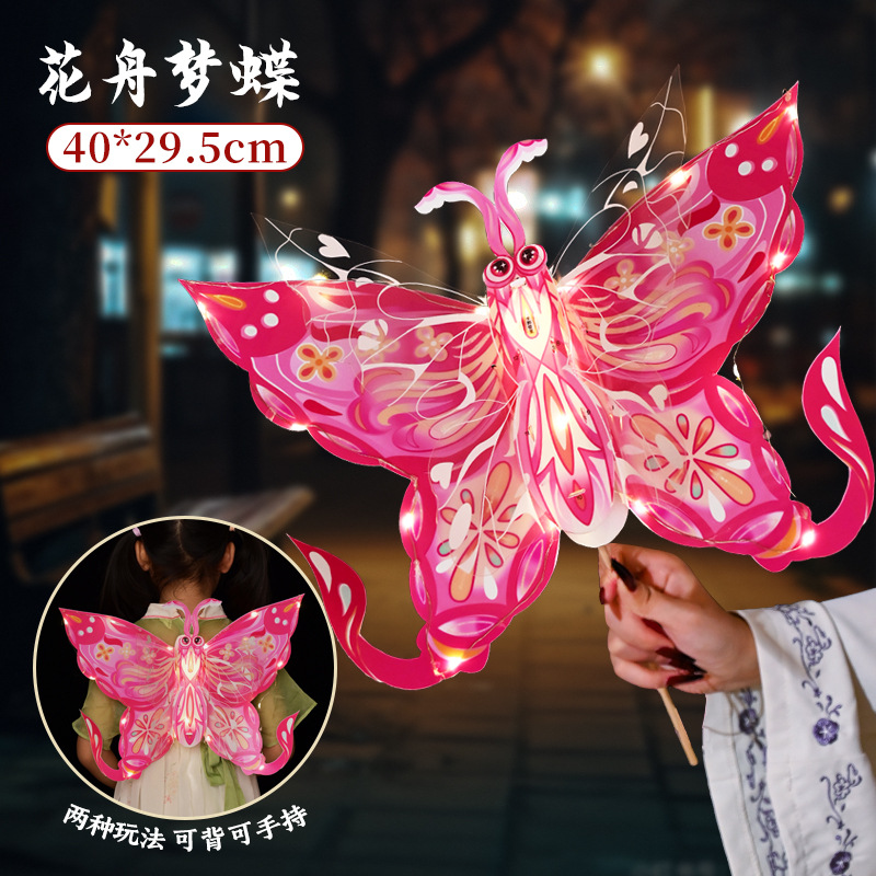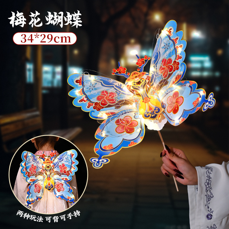 新年灯笼卡通蝴蝶灯笼手工diy材料包儿童手提发光花灯摆摊批发