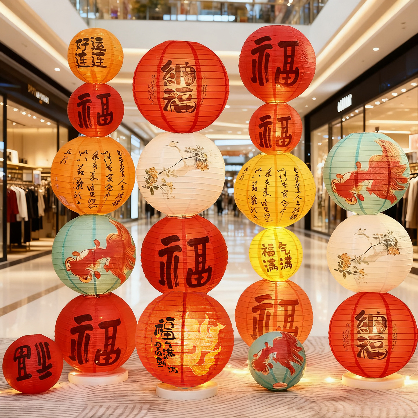 2026马年新款折叠灯笼地摆春节过年装饰品家居户外氛围场景布置