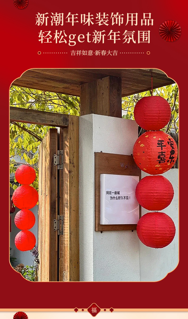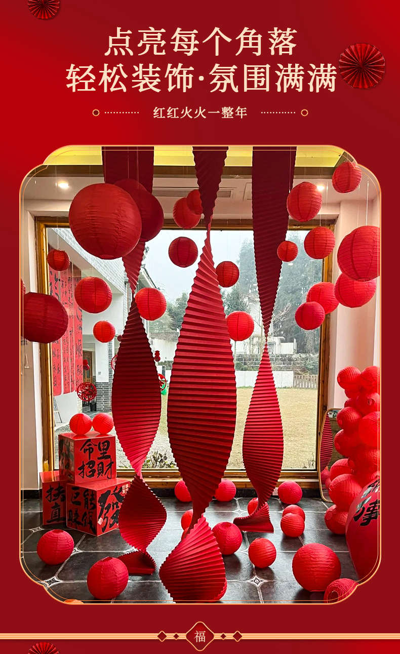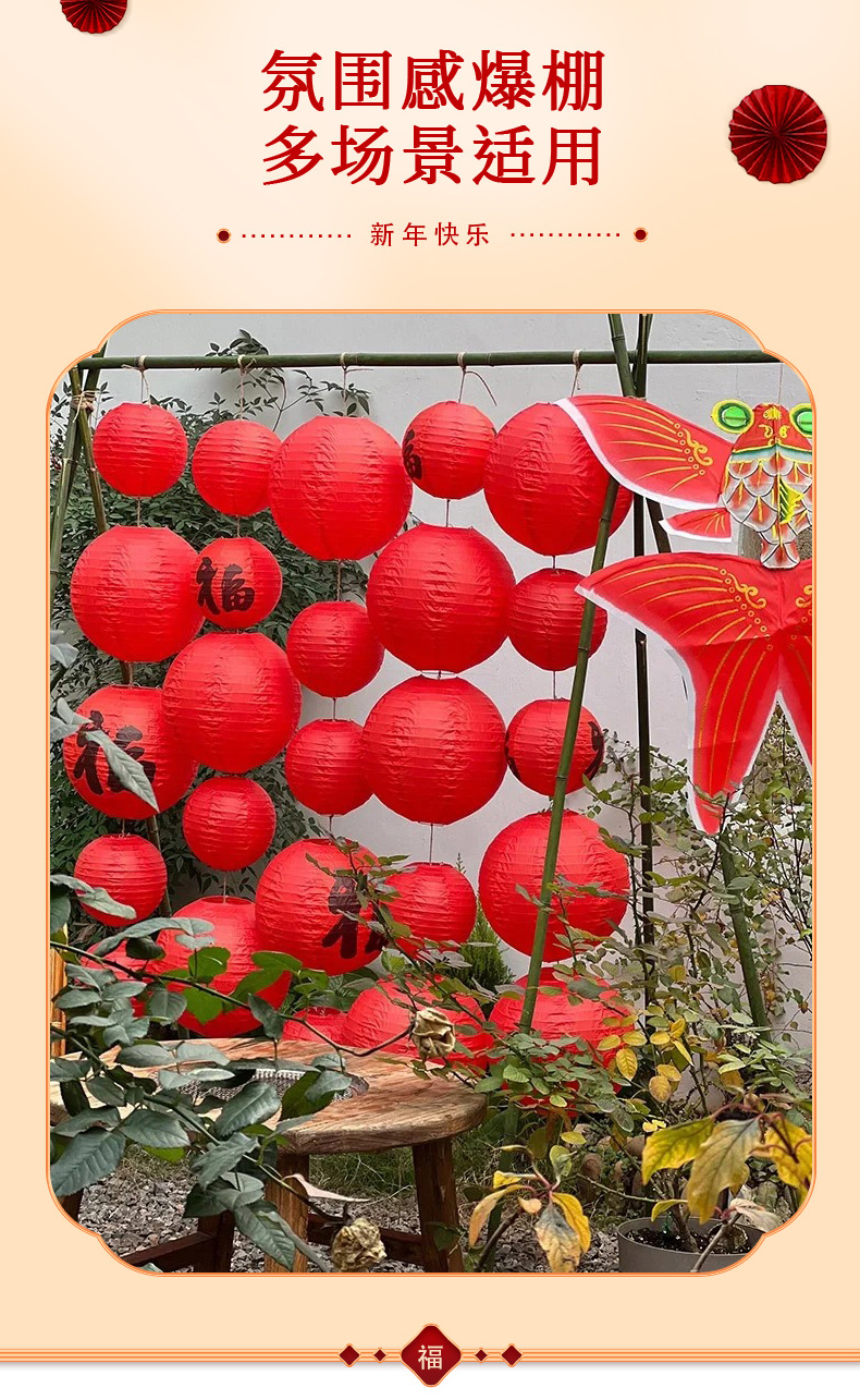 纸灯笼元旦春节新年装饰小灯笼挂饰红色吊灯罩中式传统节日福字灯