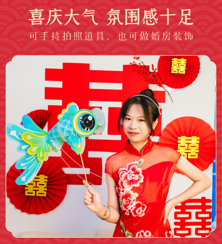 马年锦鲤金鱼灯笼手工diy材料包结婚拍照道具新娘晨拍中式礼品