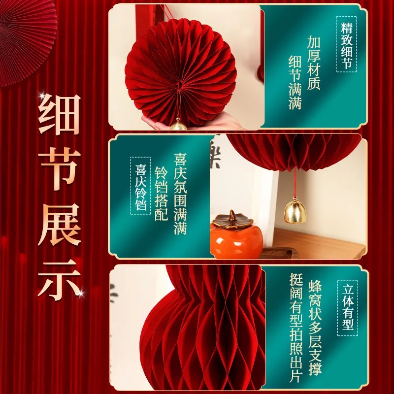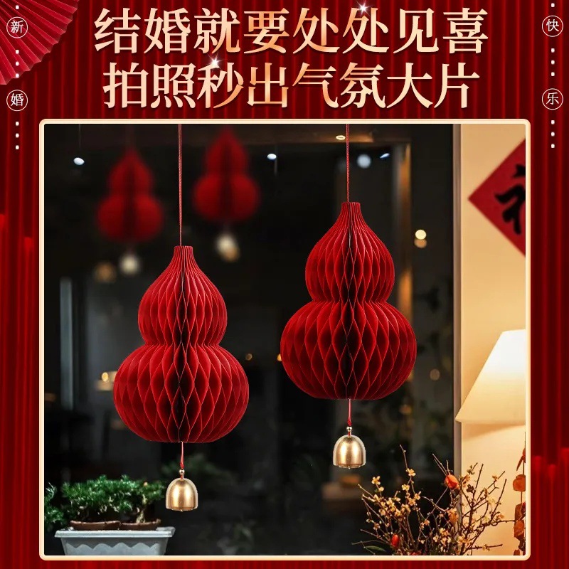 批发抖音代发新年春字五月节端午葫芦纸葫芦挂件室内商场装饰灯笼