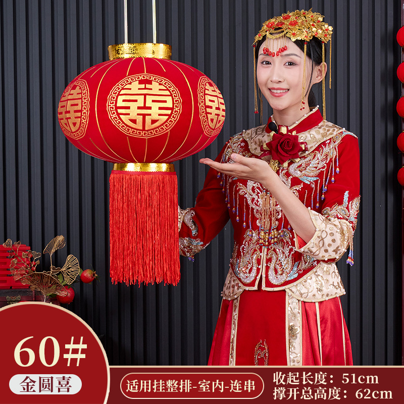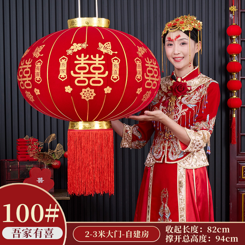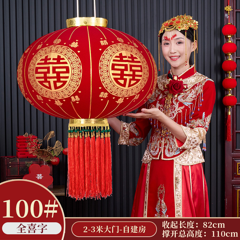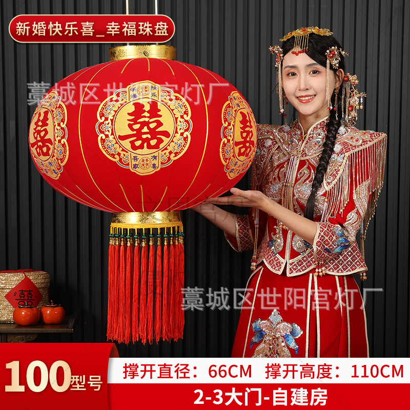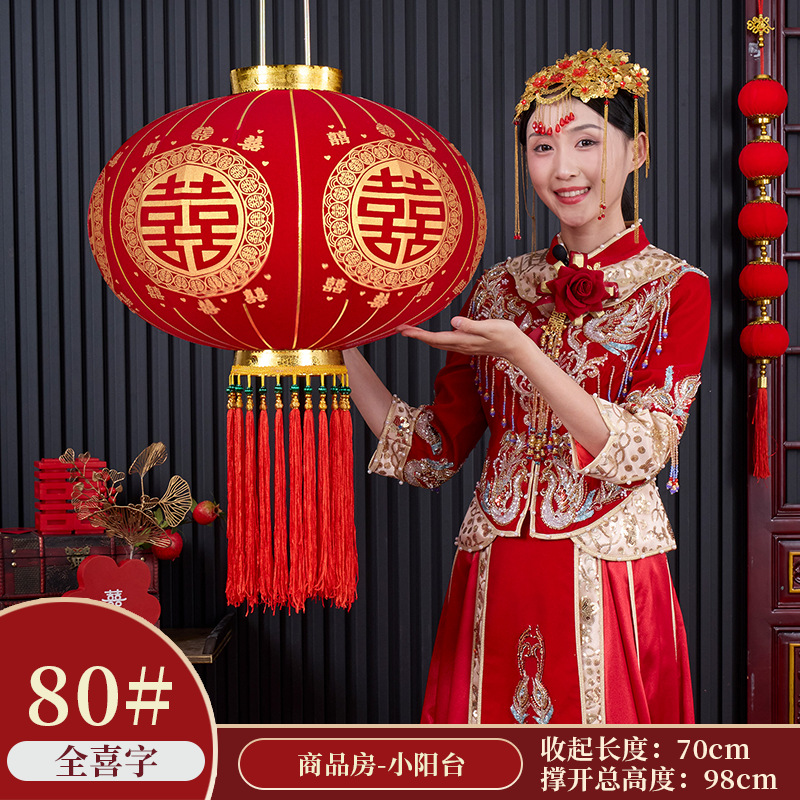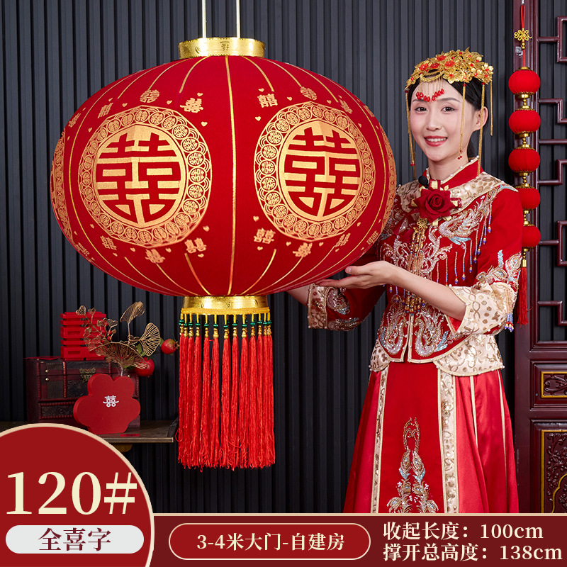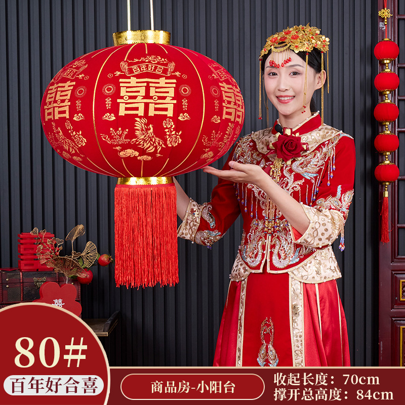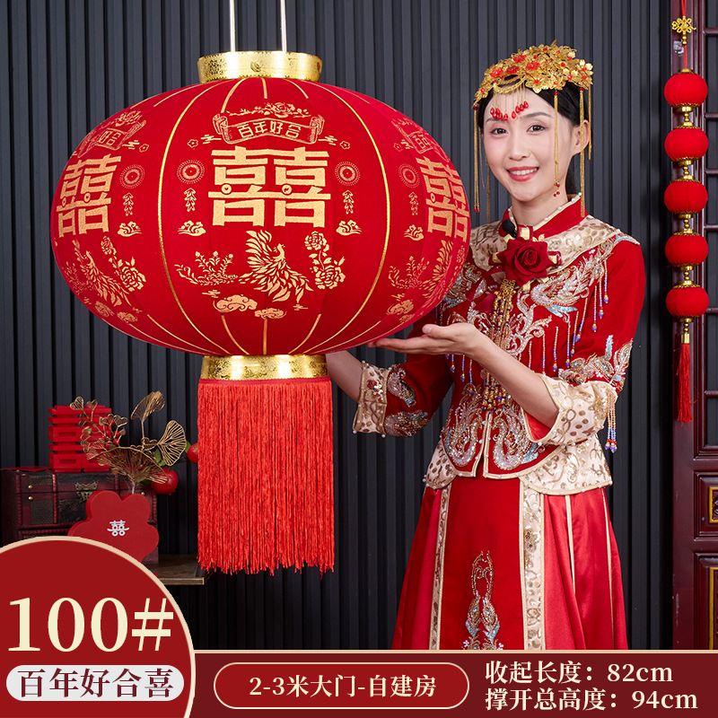 2024新款大红植绒喜字灯笼结婚春节过新年大门口阳台院子长杆灯笼