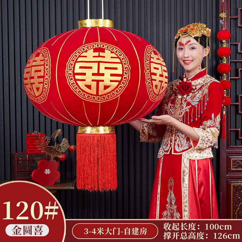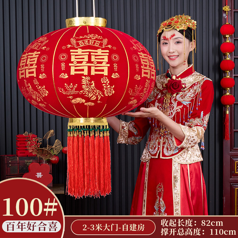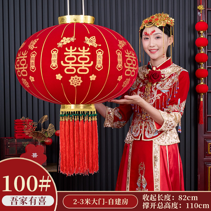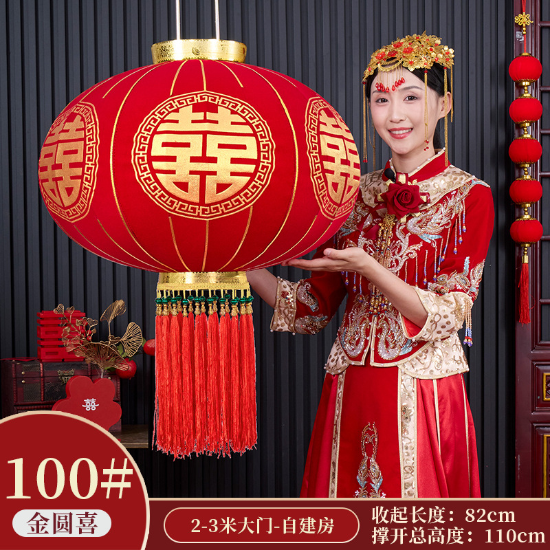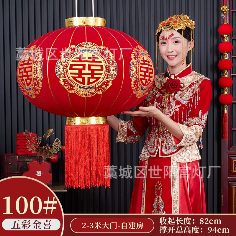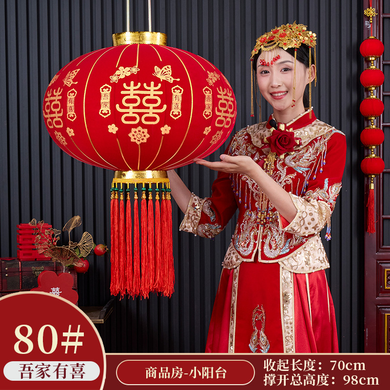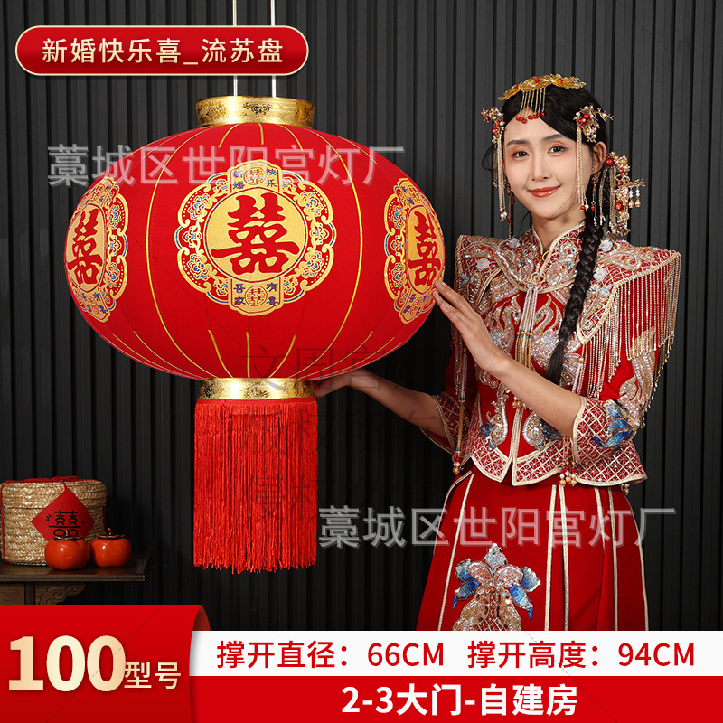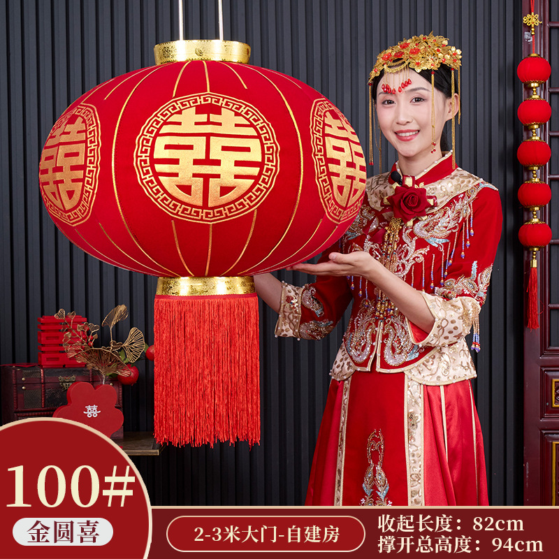 2024新款大红植绒喜字灯笼结婚春节过新年大门口阳台院子长杆灯笼