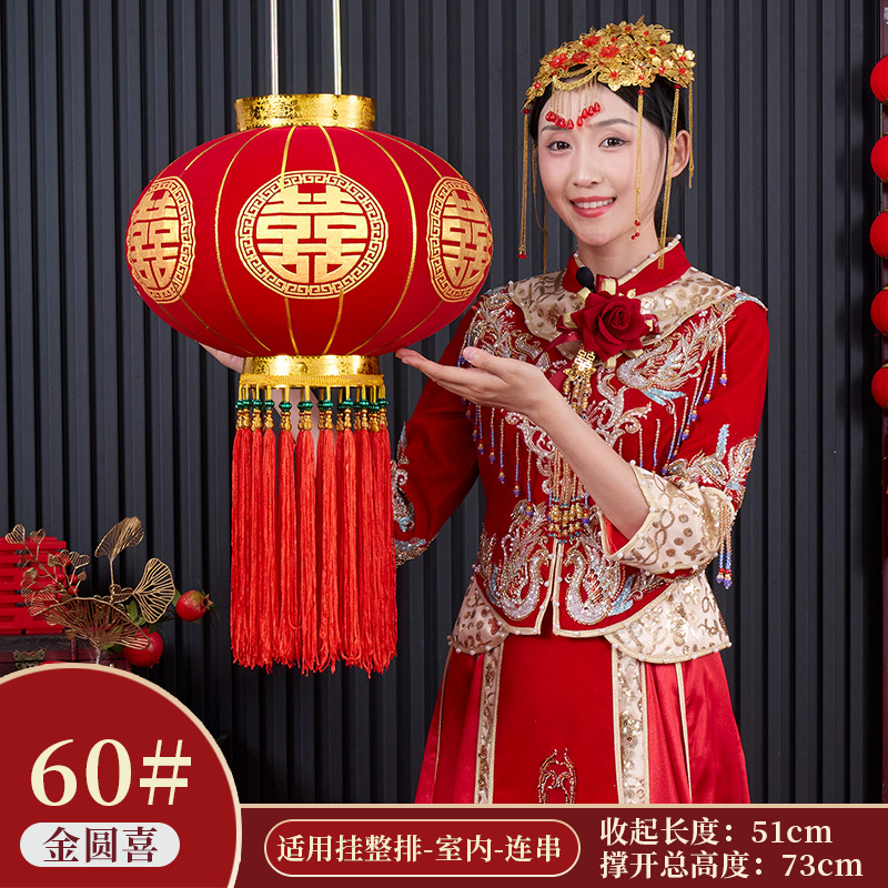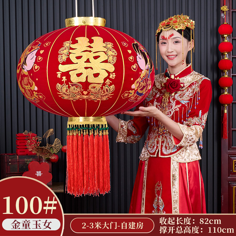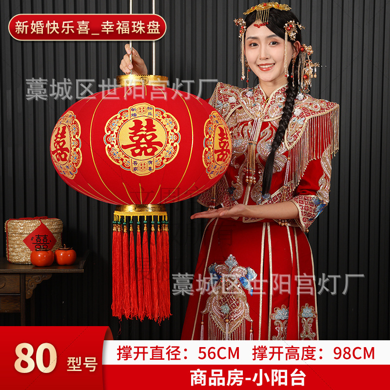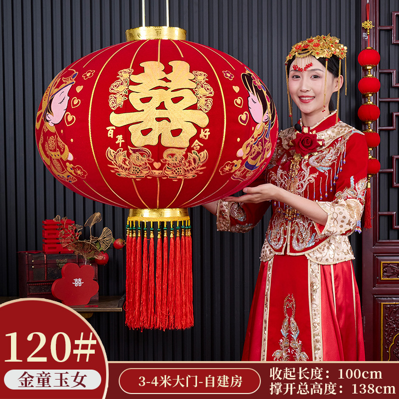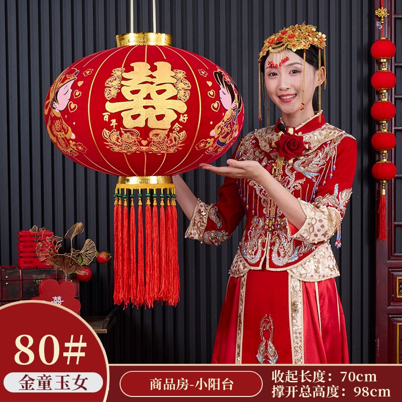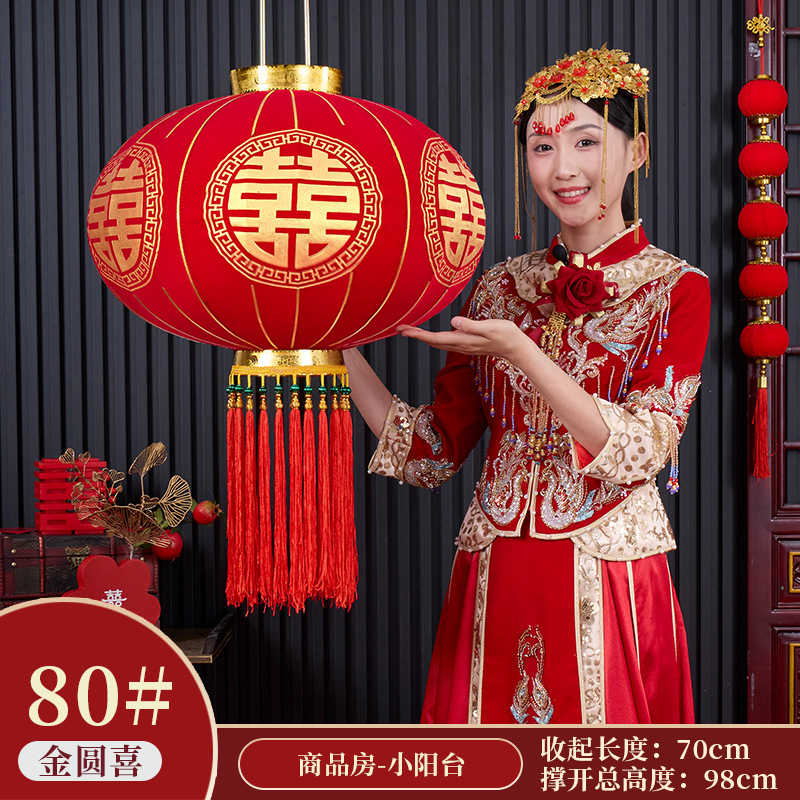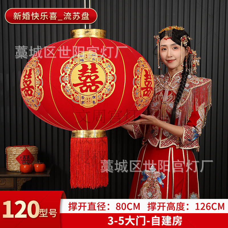 2024新款大红植绒喜字灯笼结婚春节过新年大门口阳台院子长杆灯笼