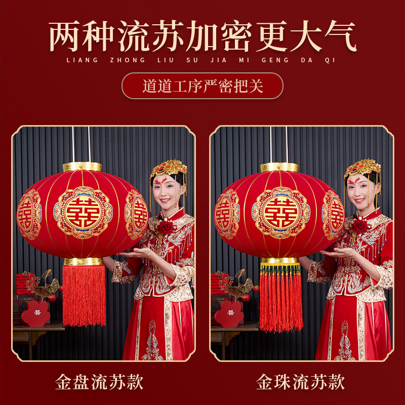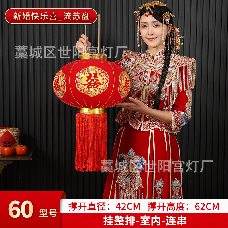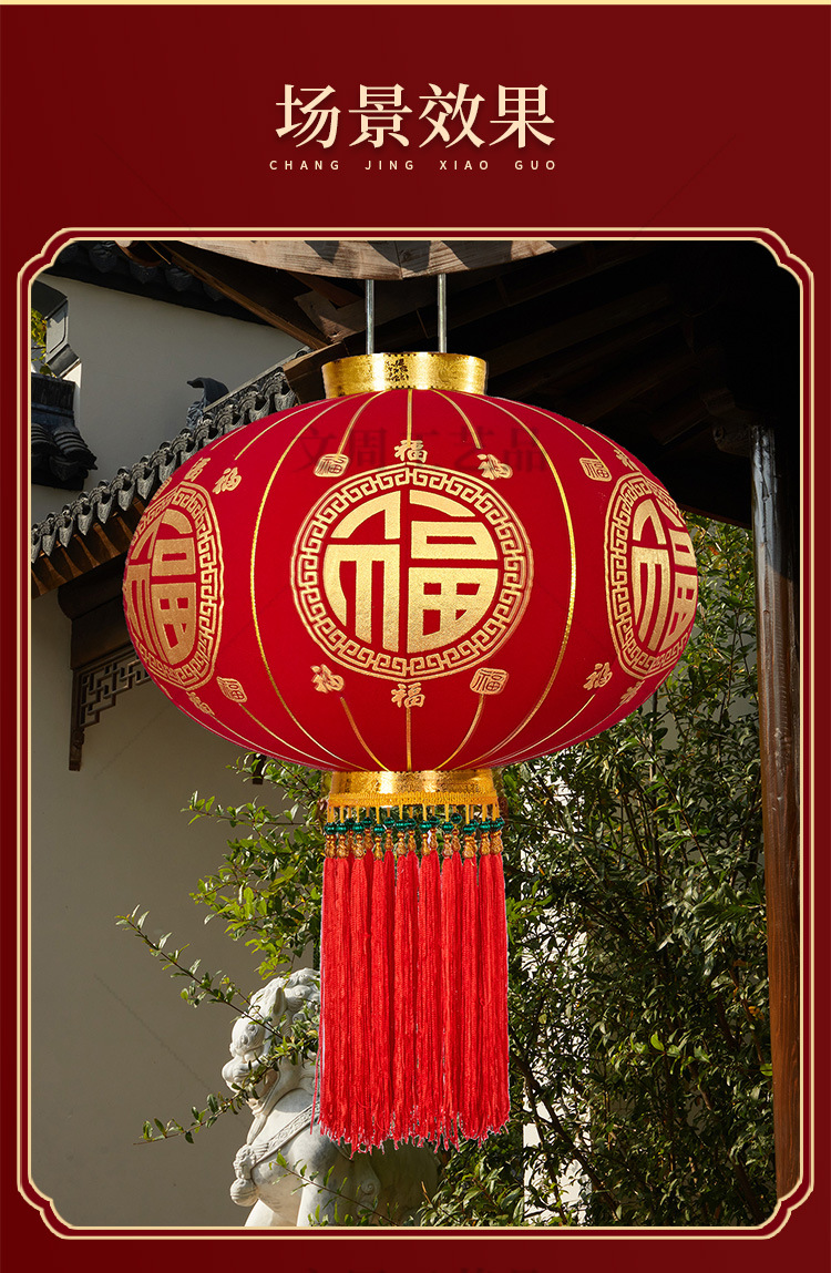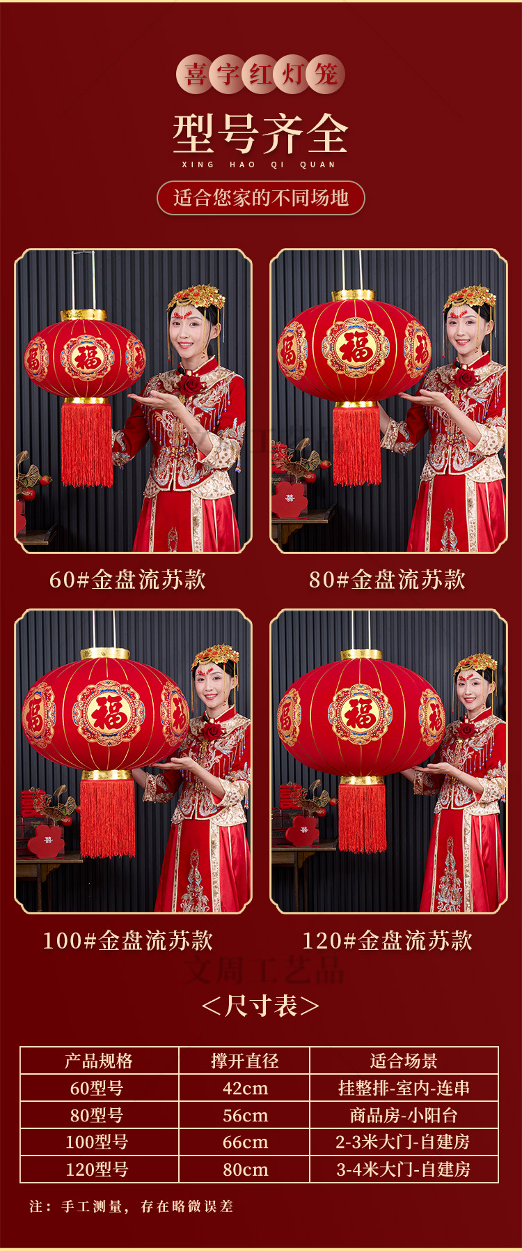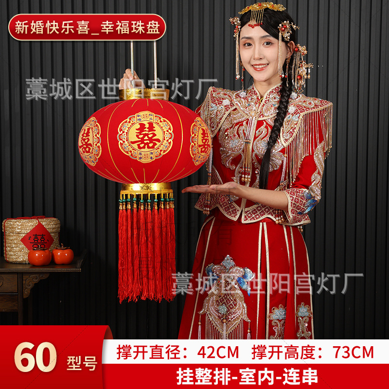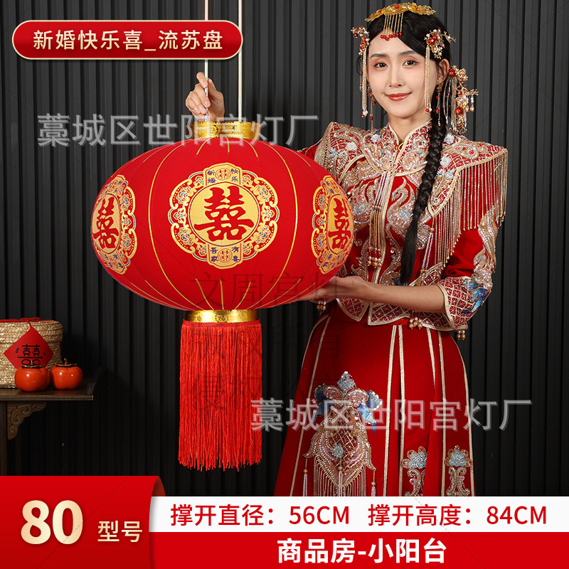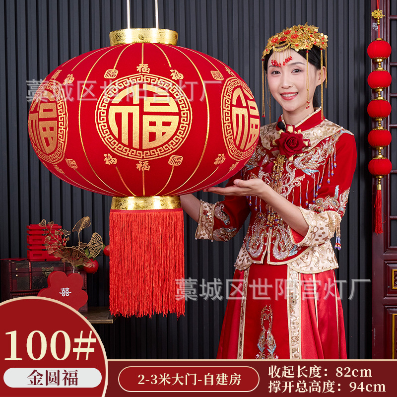 2024新款大红植绒喜字灯笼结婚春节过新年大门口阳台院子长杆灯笼
