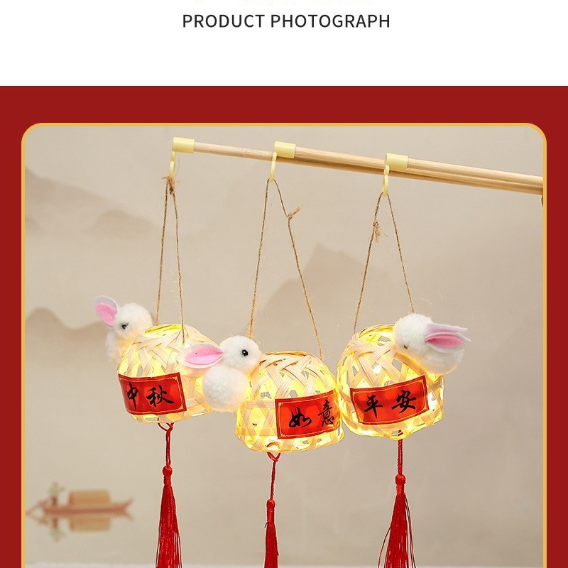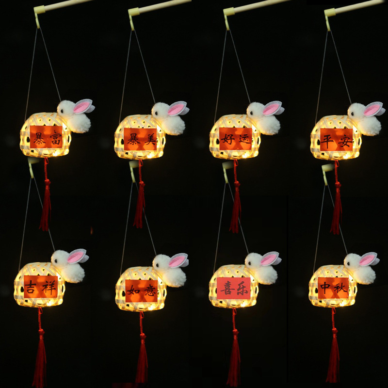 古风竹编小灯笼手工diy迷你手提兔子花灯发光玩具中秋节夜市摆摊