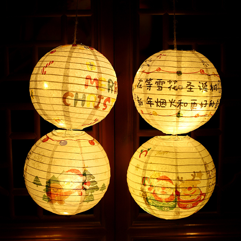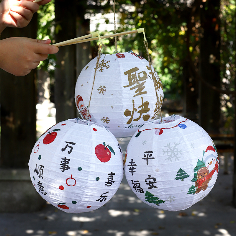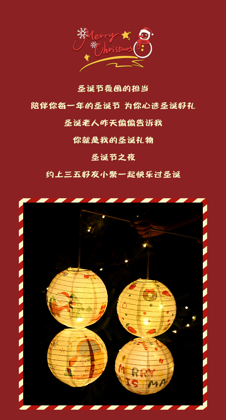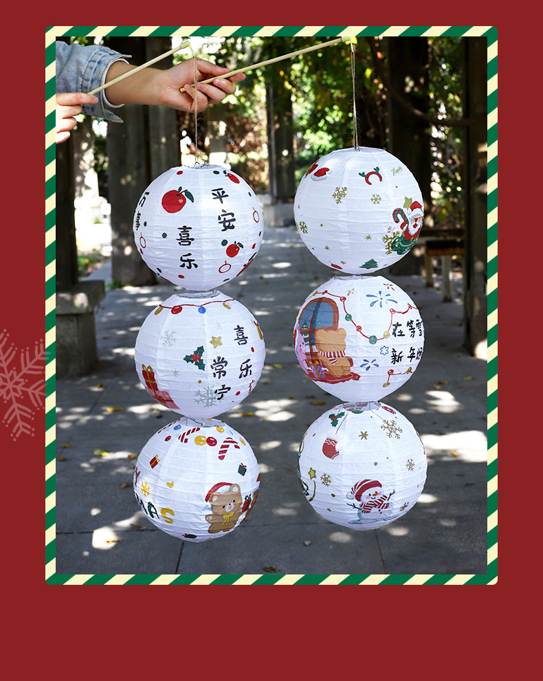 圣诞节纸灯笼商场活动节日派对装饰灯笼卡通手提灯笼拍照道具批发