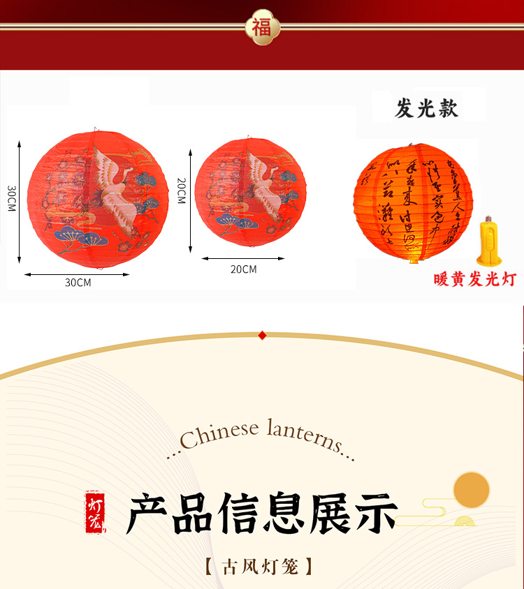 元旦春节国风装饰印花纸灯笼国风创意户外展会亲子活动景区场景布