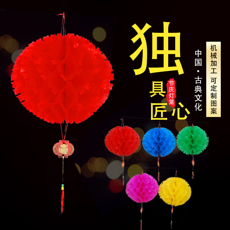 五彩刺球灯彩色塑纸折叠小灯笼元旦新年节日婚庆装饰幼儿园挂饰吊