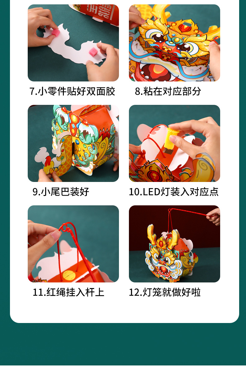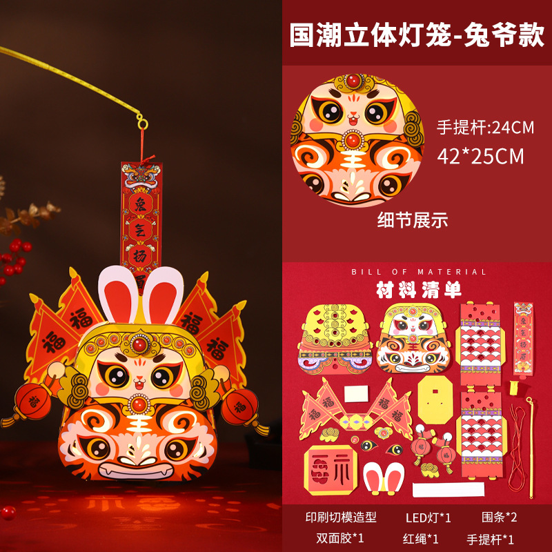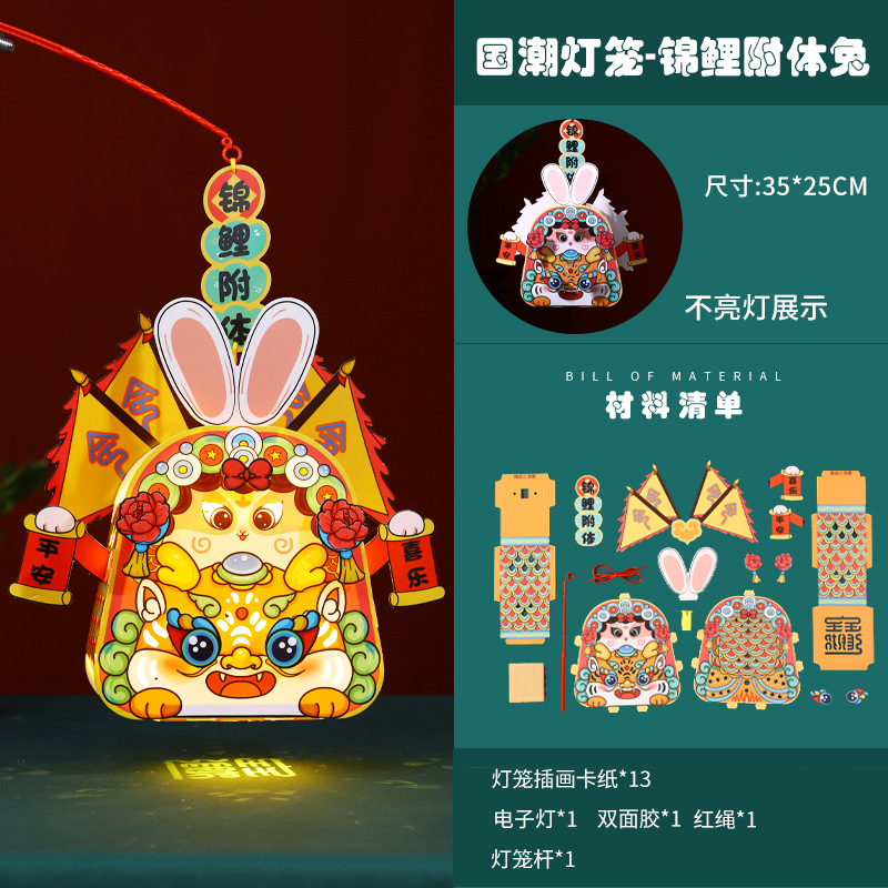 2024龙年新款国潮灯笼手工diy手提灯笼儿童制作材料包中秋手提灯
