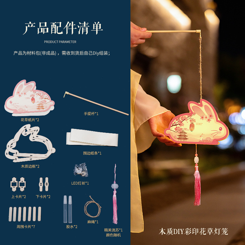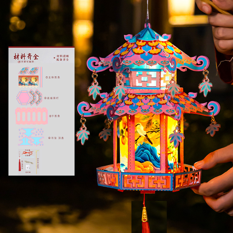中秋灯笼pvc古风宫廷花灯儿童手工diy材料包手提发光灯笼中秋礼品