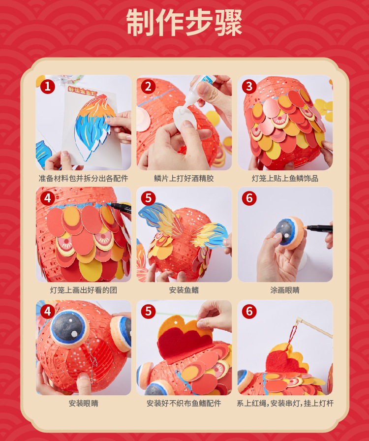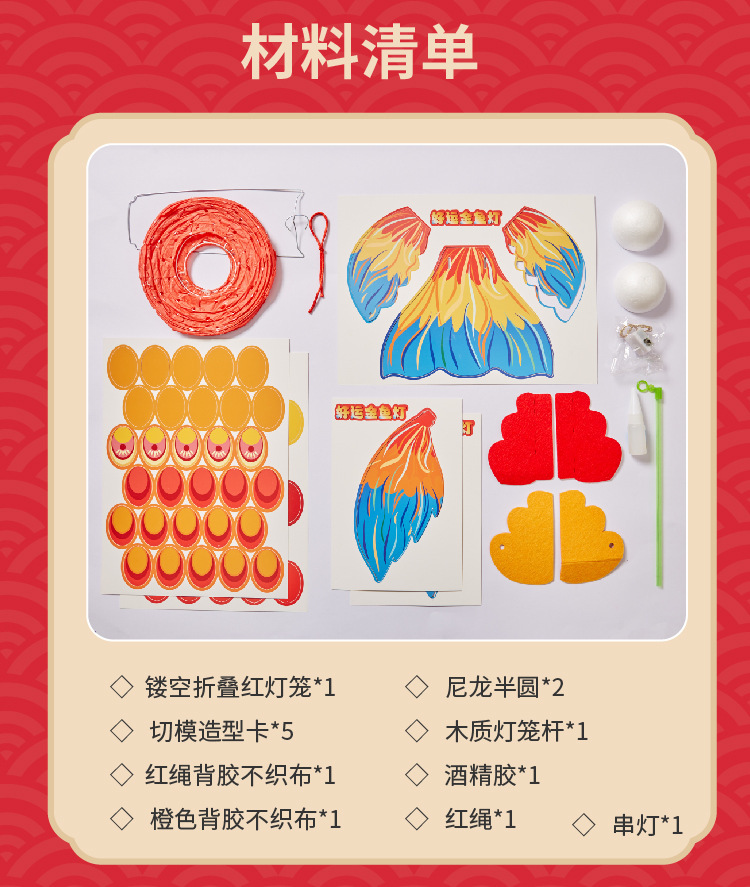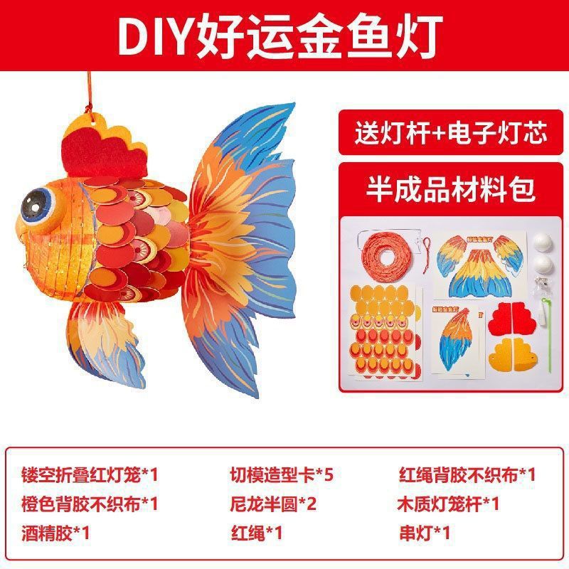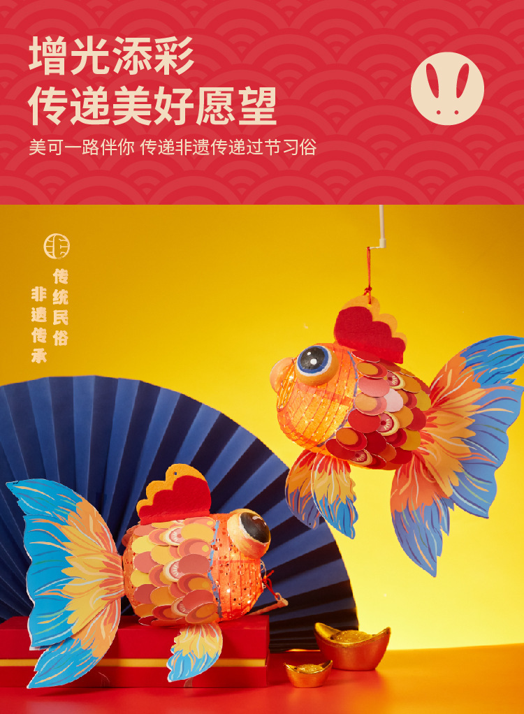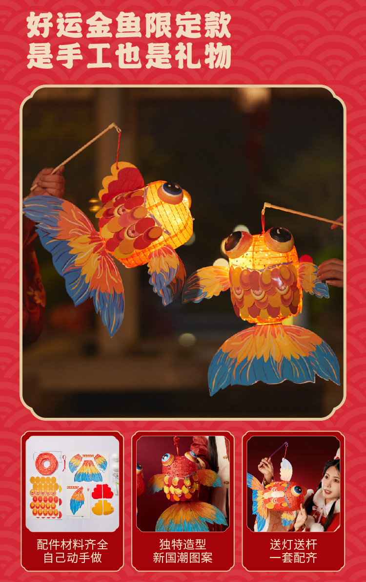 国潮新年锦鲤好运金鱼灯笼手工diy儿童制作材料包古风纸花小灯笼