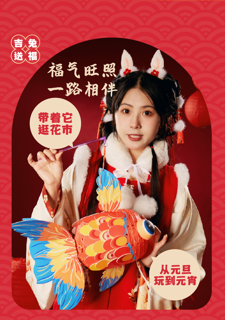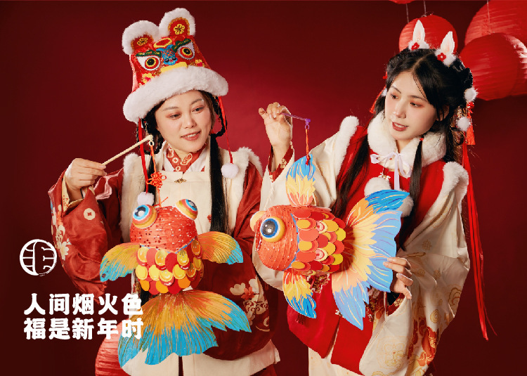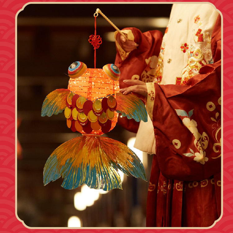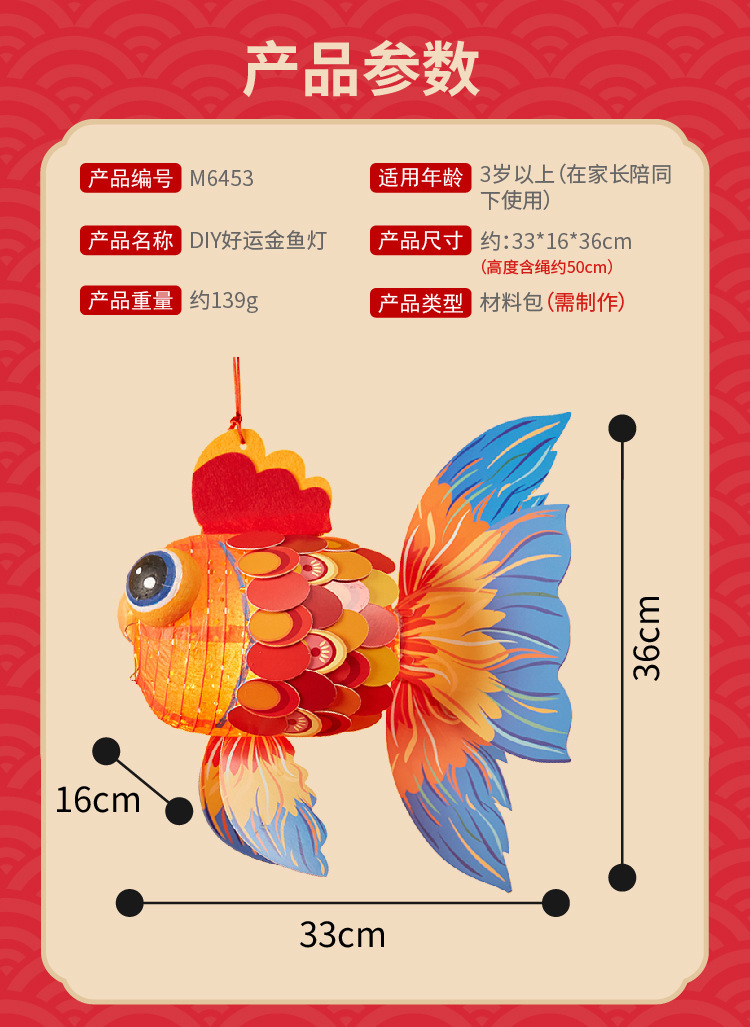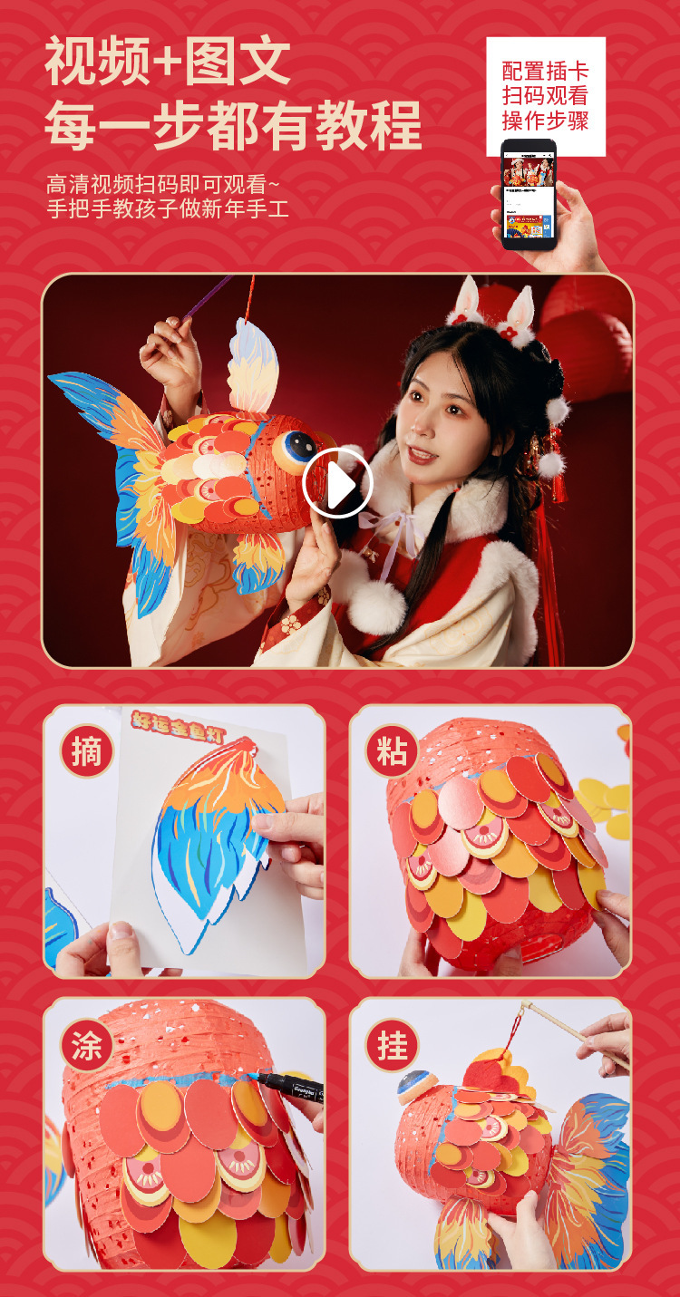 国潮新年锦鲤好运金鱼灯笼手工diy儿童制作材料包古风纸花小灯笼