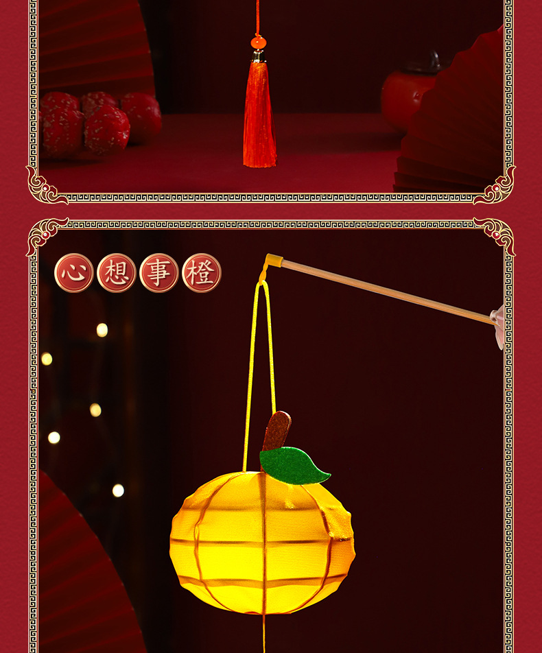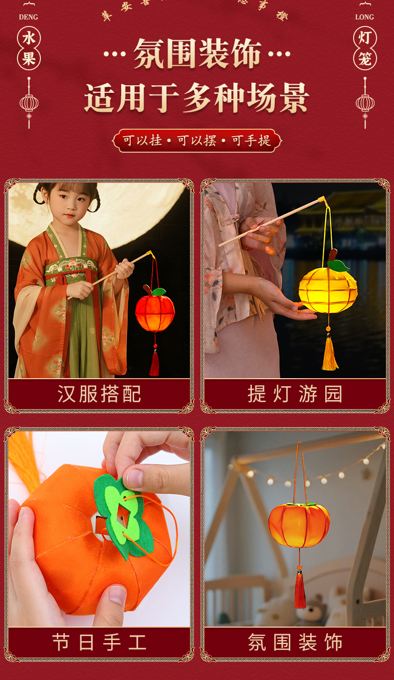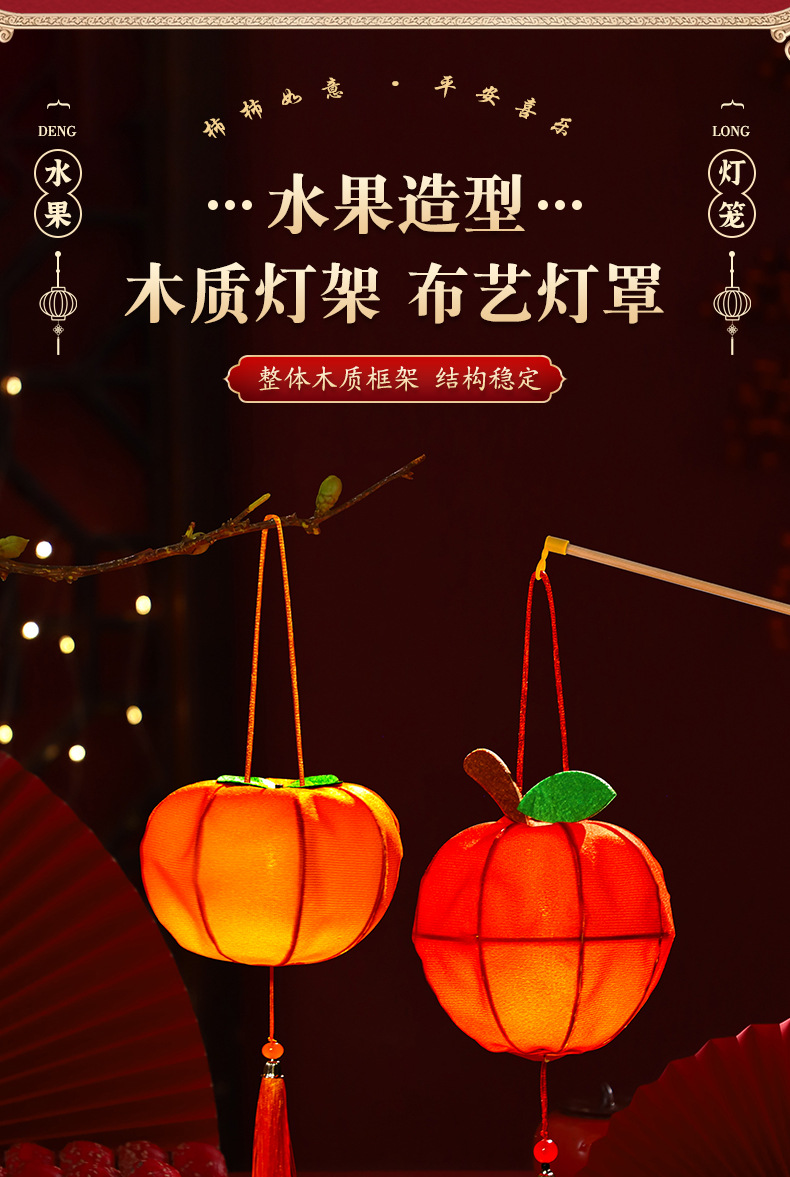新年灯笼儿童手提花灯diy材料包古风汉服拍照春节柿子水果宫灯