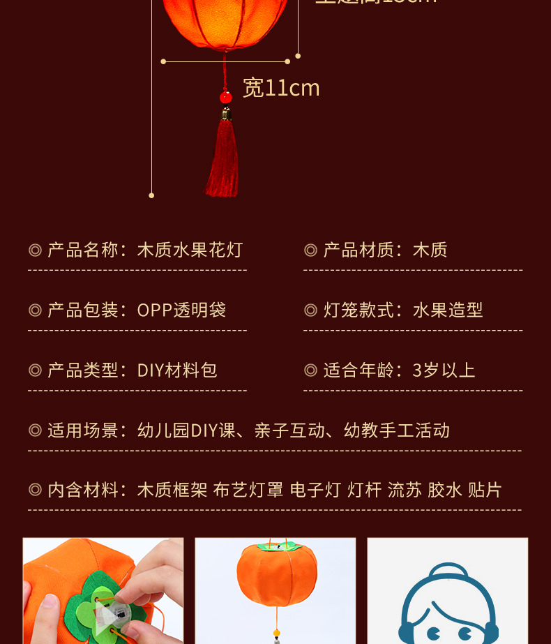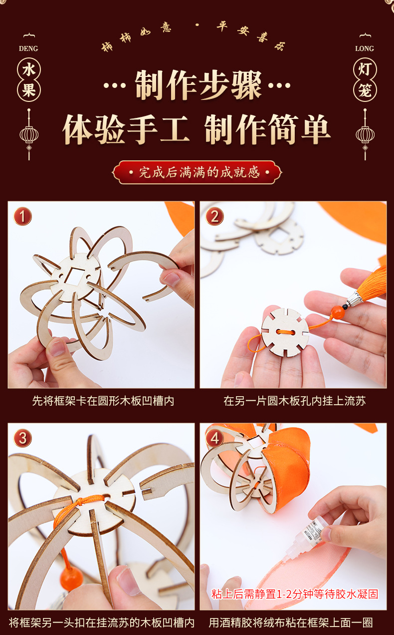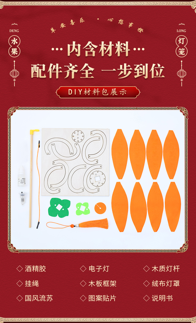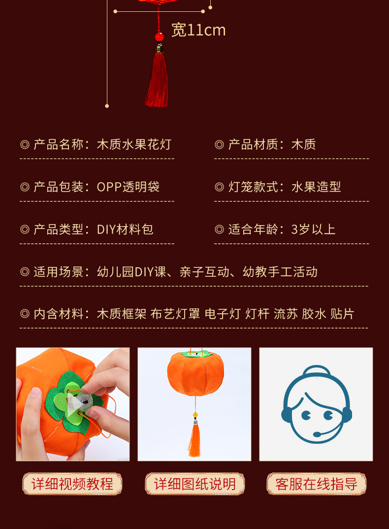 新年灯笼儿童手提花灯diy材料包古风汉服拍照春节柿子水果宫灯