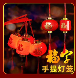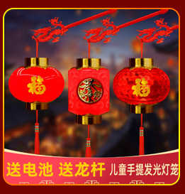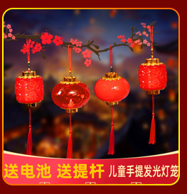 儿童手提灯笼新年元宵节福字发光水晶小灯笼复古宫灯地摊货源批发