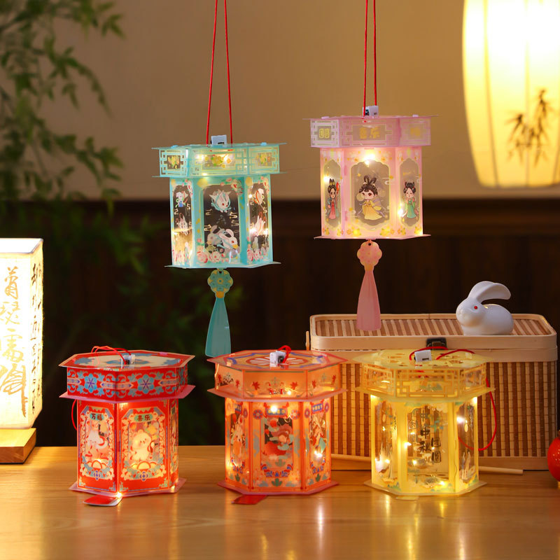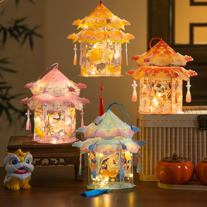 中秋节灯笼2025爆款风车灯笼儿童手提发光diy户外可手持风车摆摊