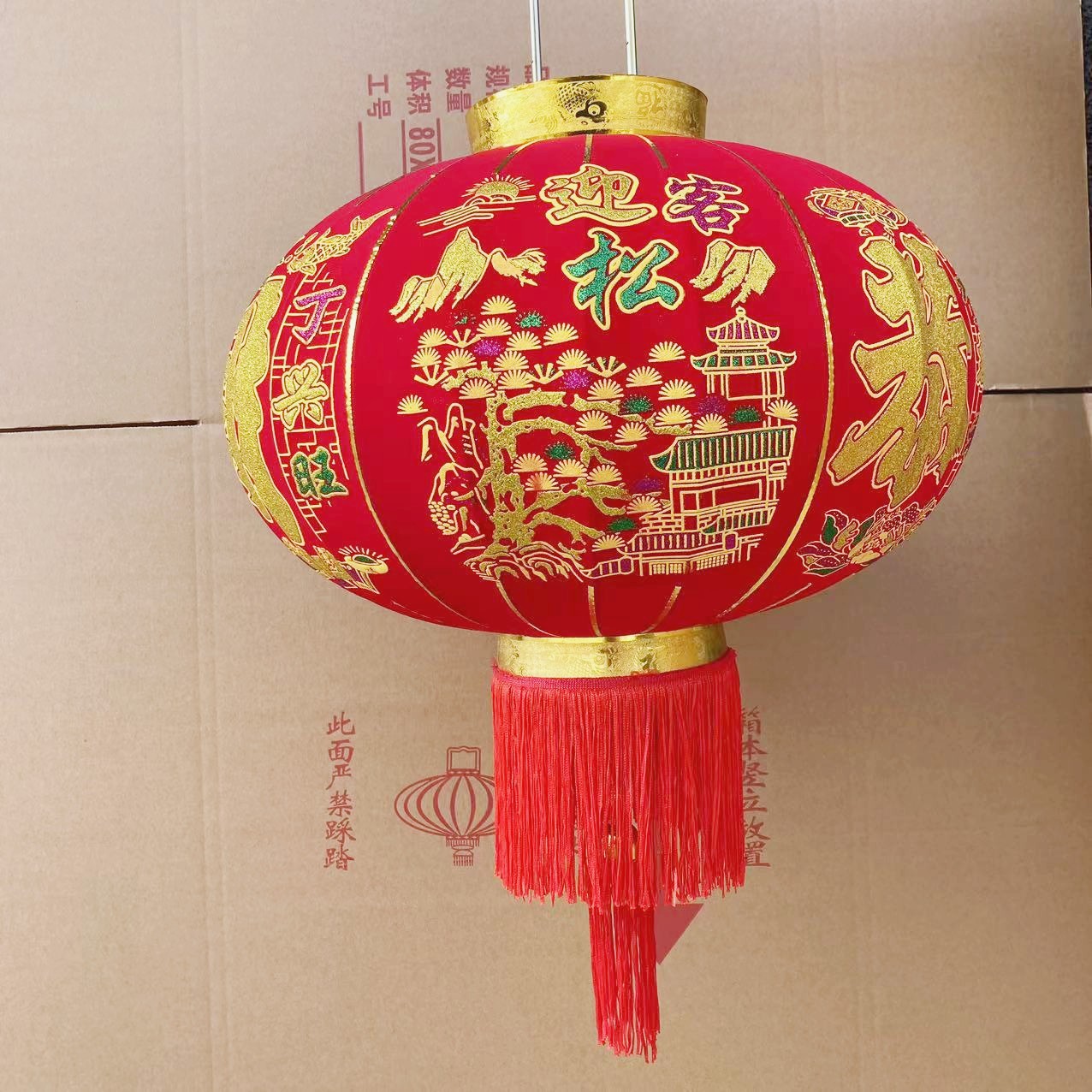 灯笼随机混搭3款植绒布长杆大门灯笼春节新款宫灯零售批发