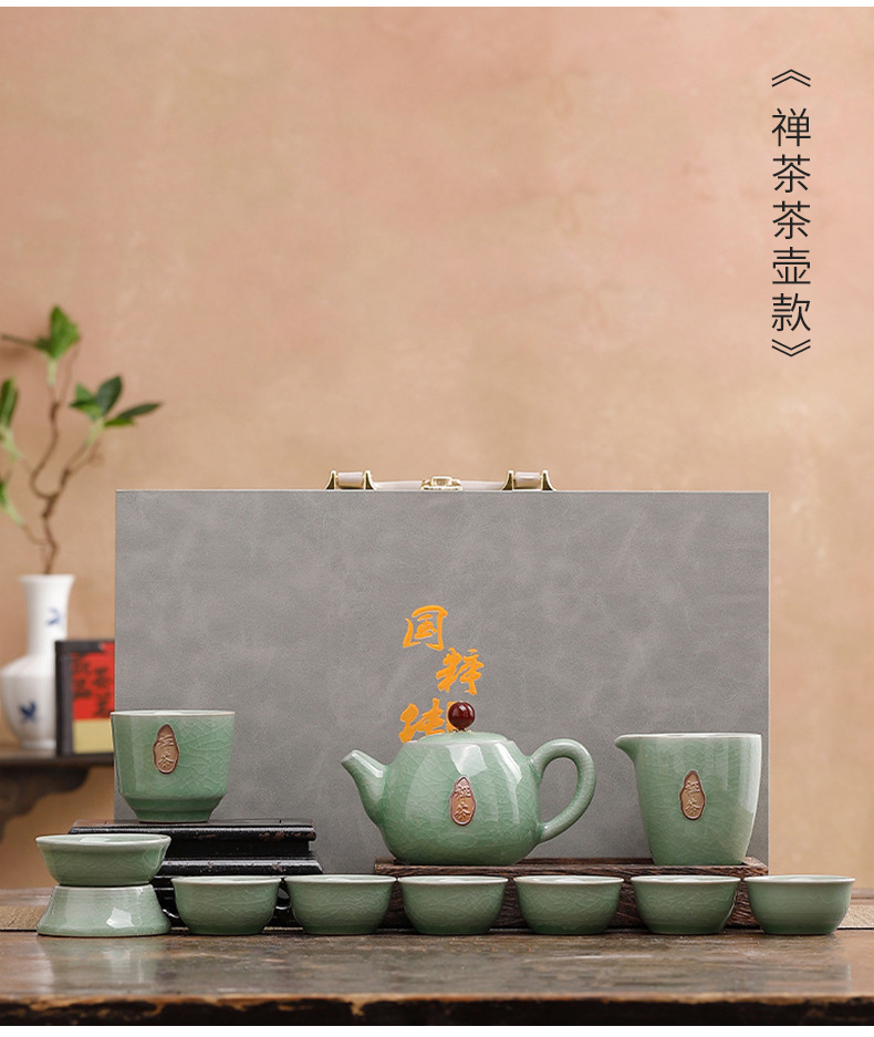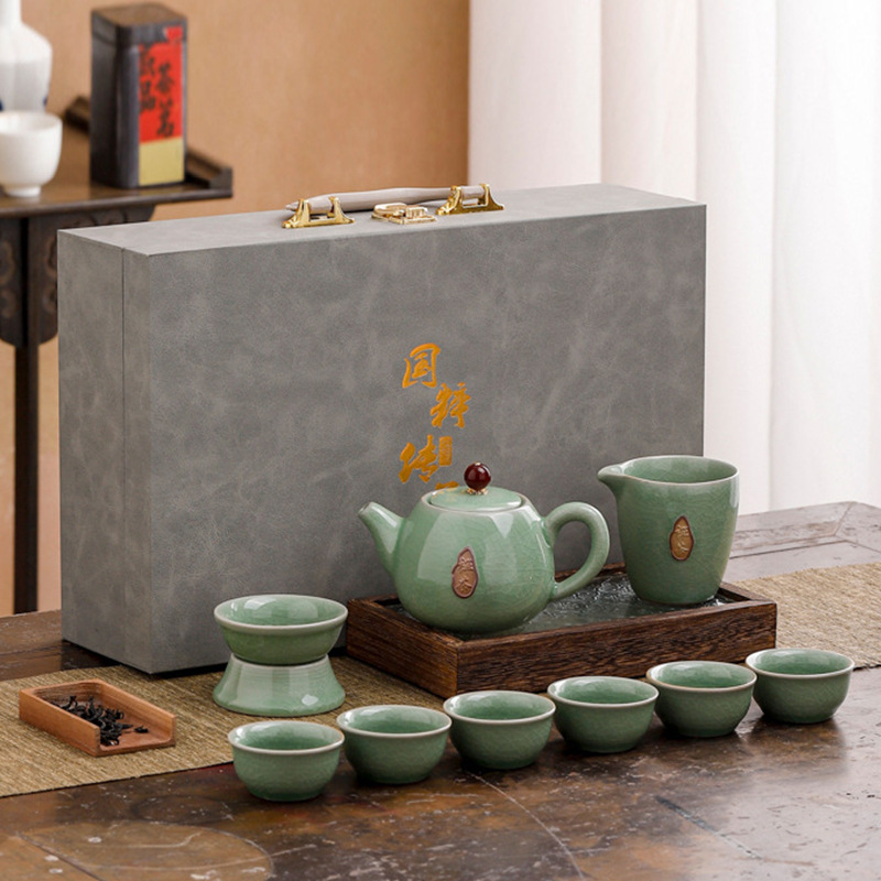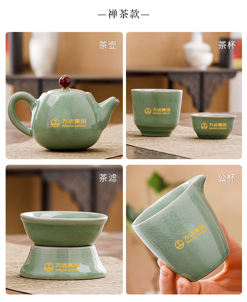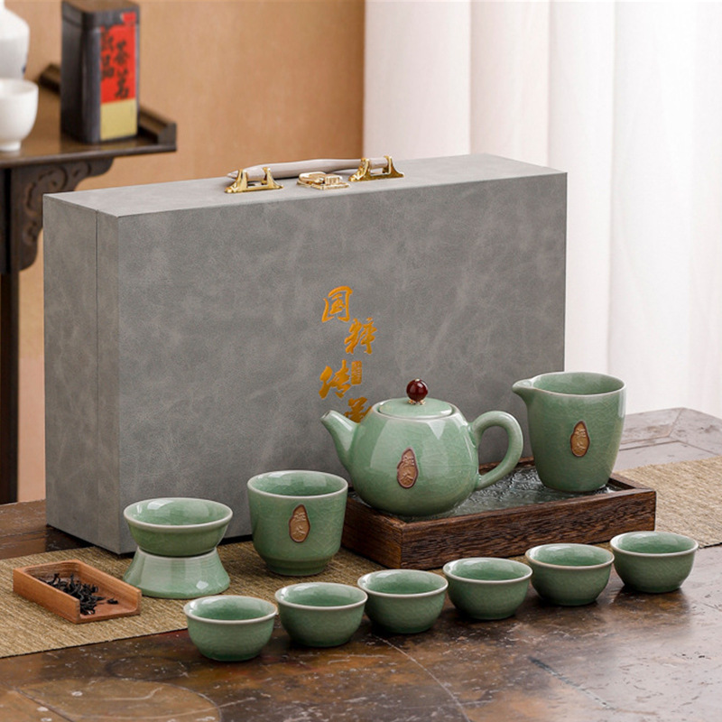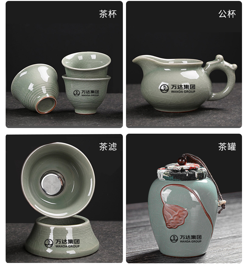 高档哥窑功夫茶具套装陶瓷礼品公司开业银行地产伴手礼定 制logo