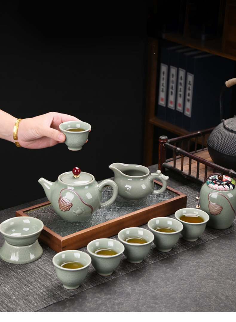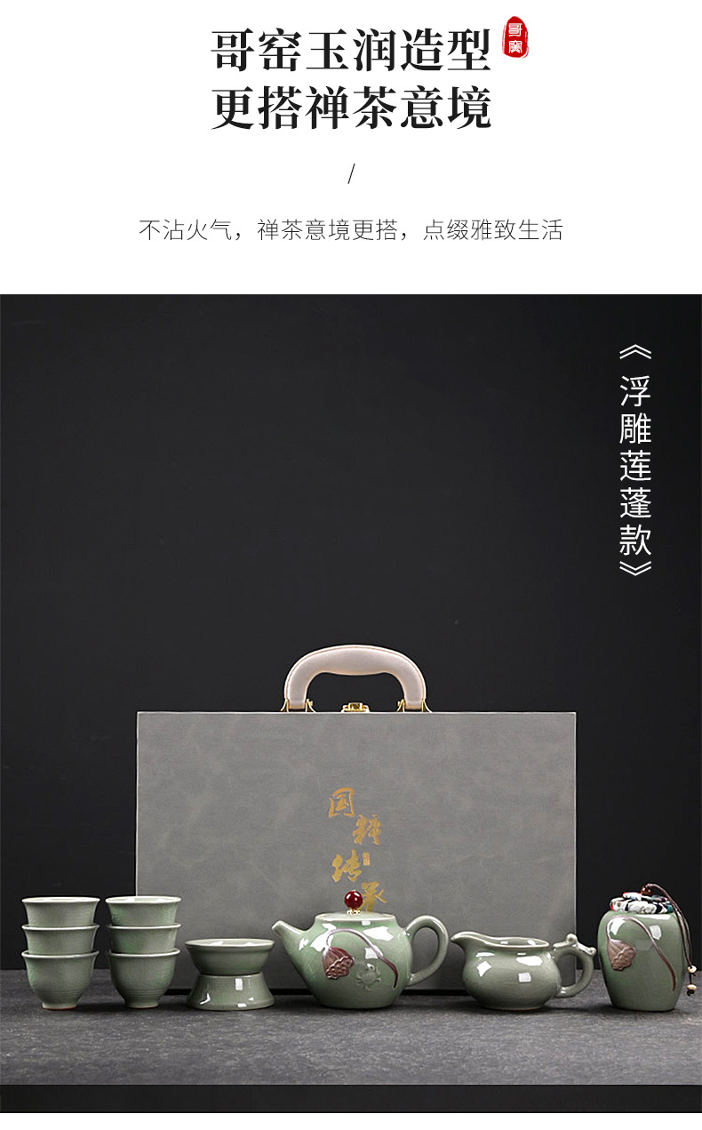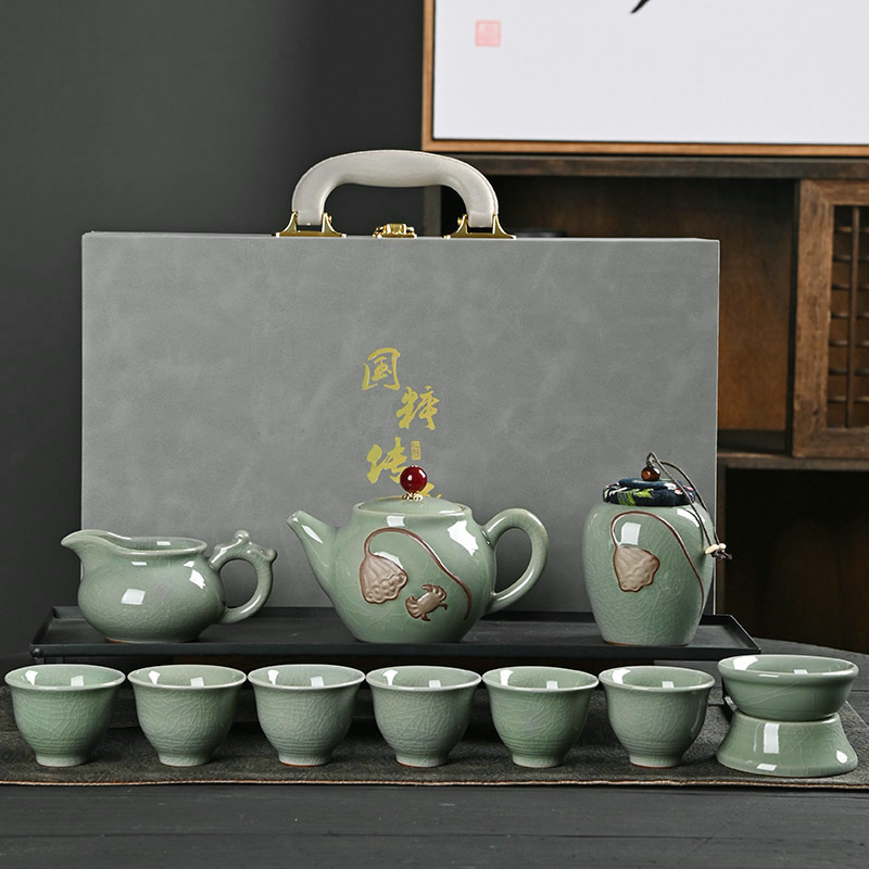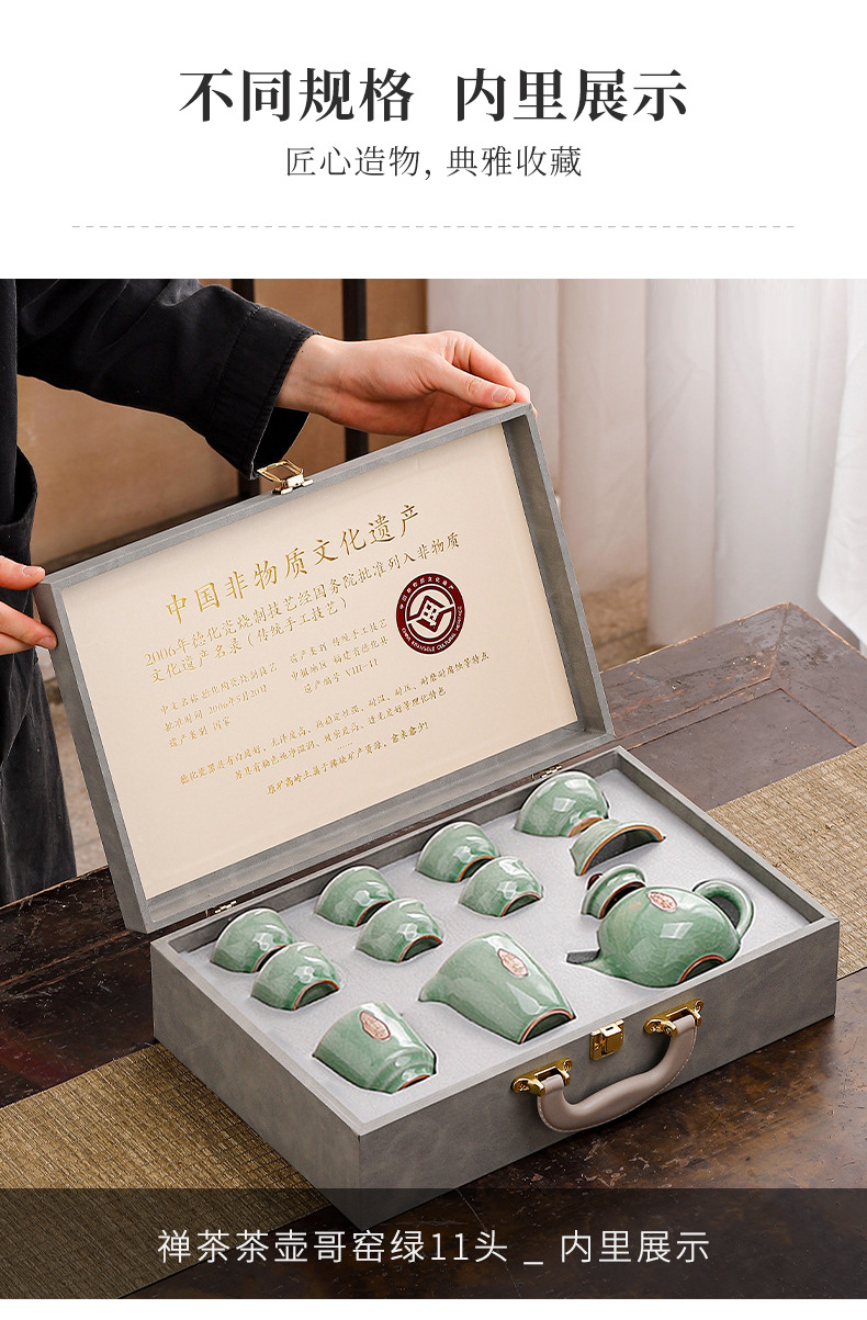 高档哥窑功夫茶具套装陶瓷礼品公司开业银行地产伴手礼定 制logo